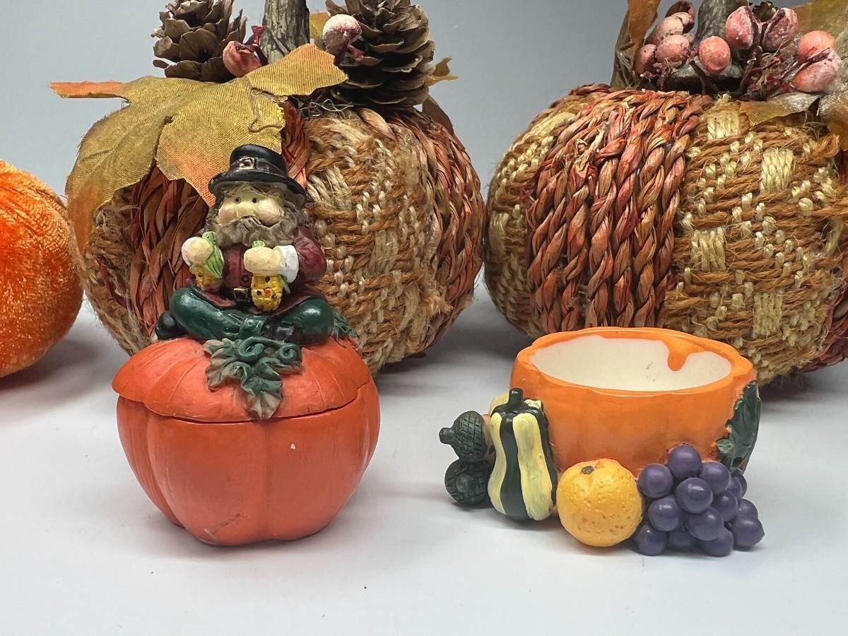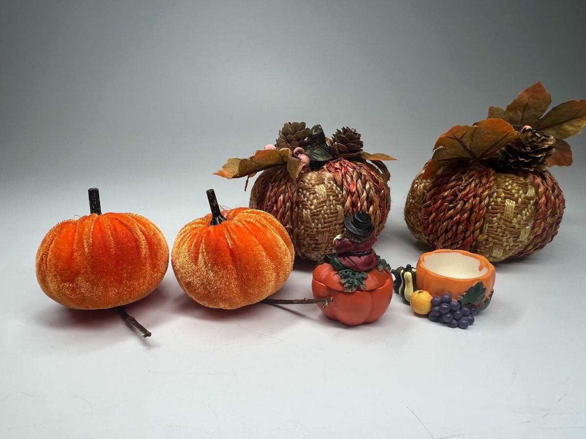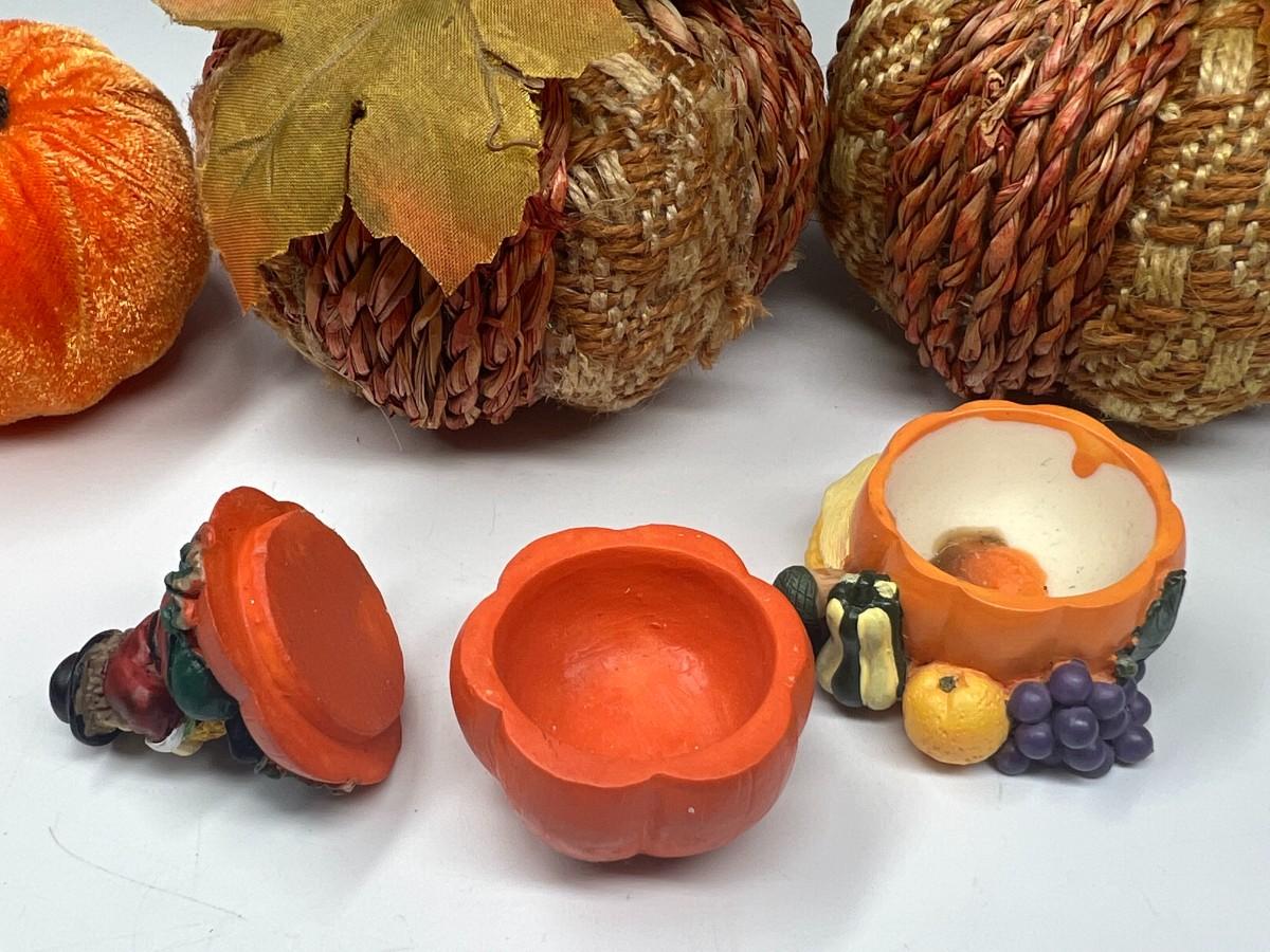 Fall Autumn Pumpkin Themed Home Decor. Good condition, except one of the small trinket boxes may be missing its lid.