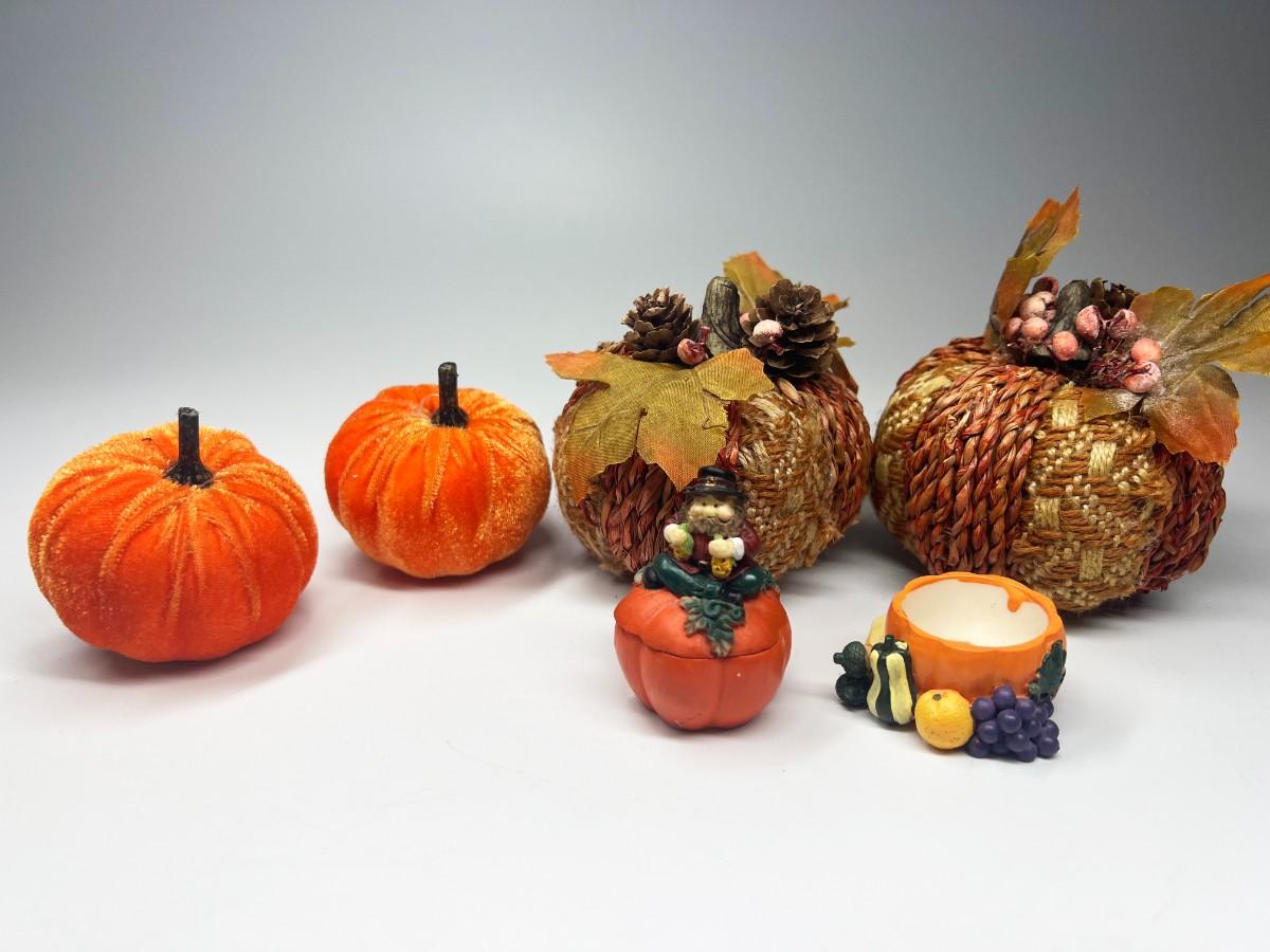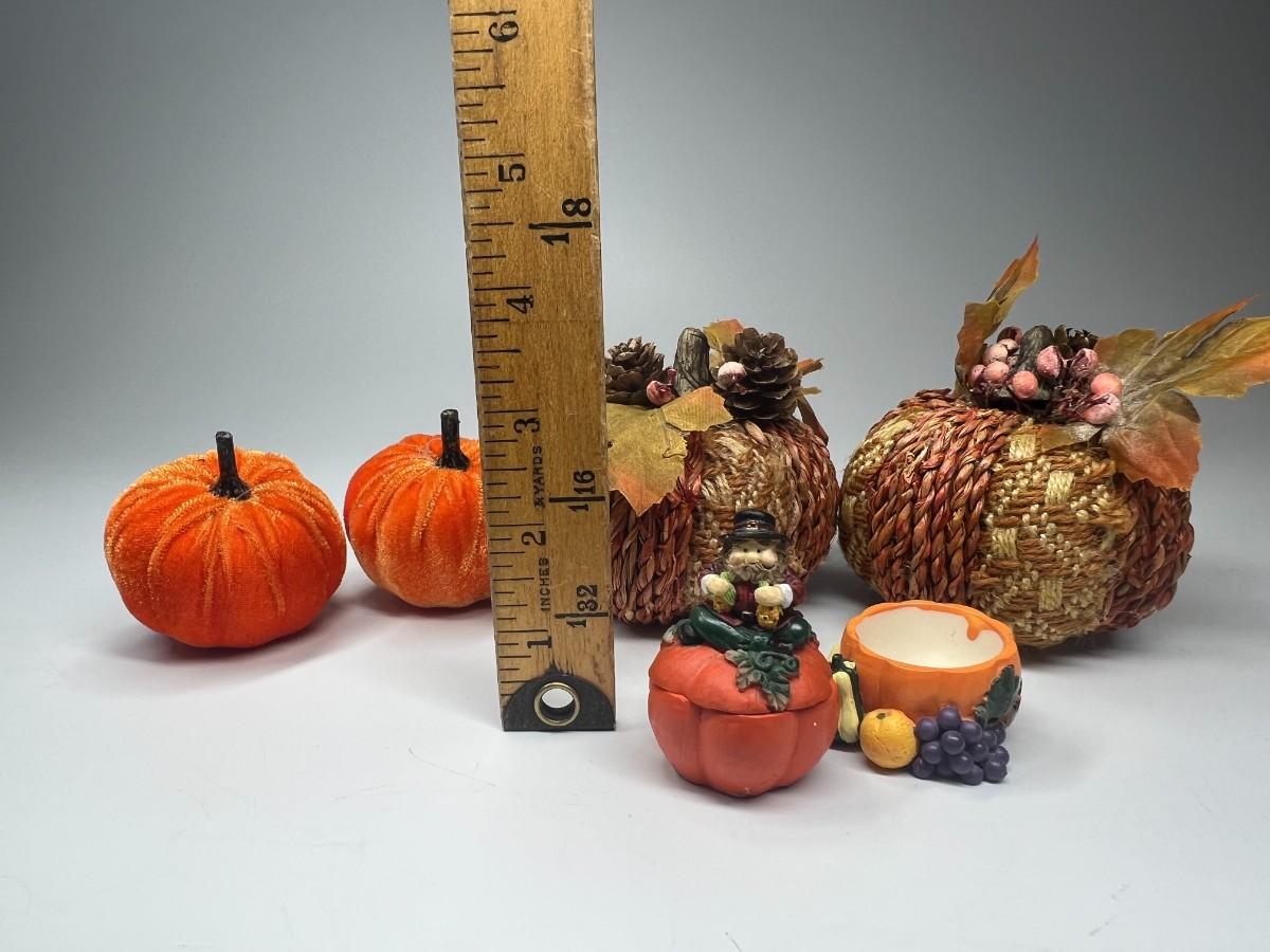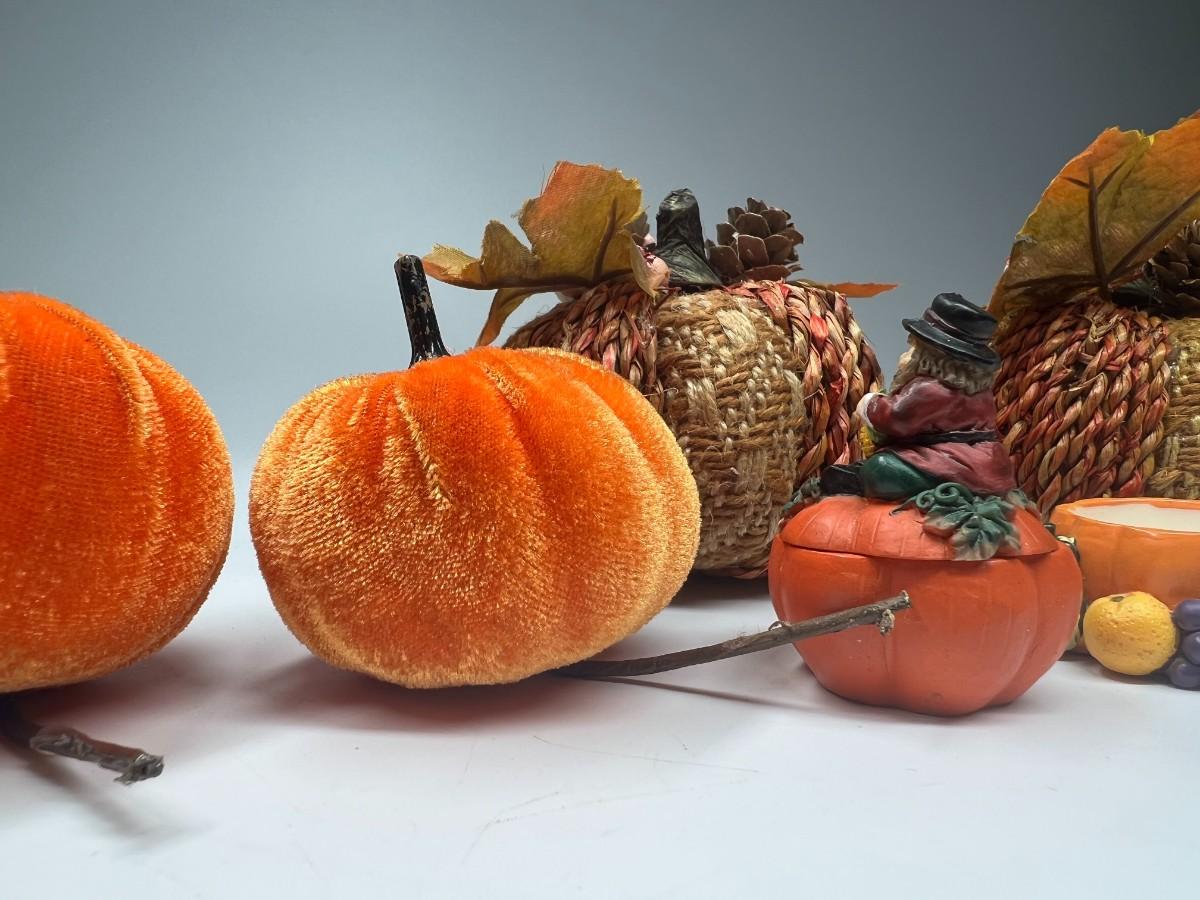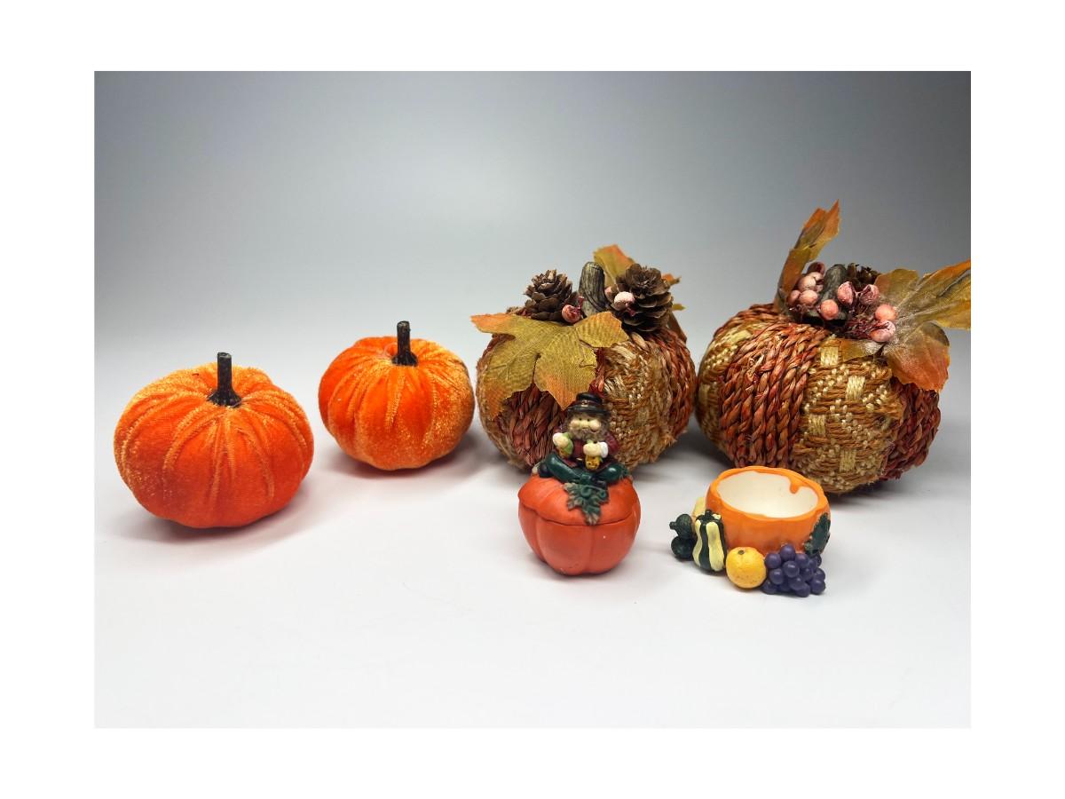 Fall Autumn Pumpkin Themed Home Decor. Good condition, except one of the small trinket boxes may be missing its lid.