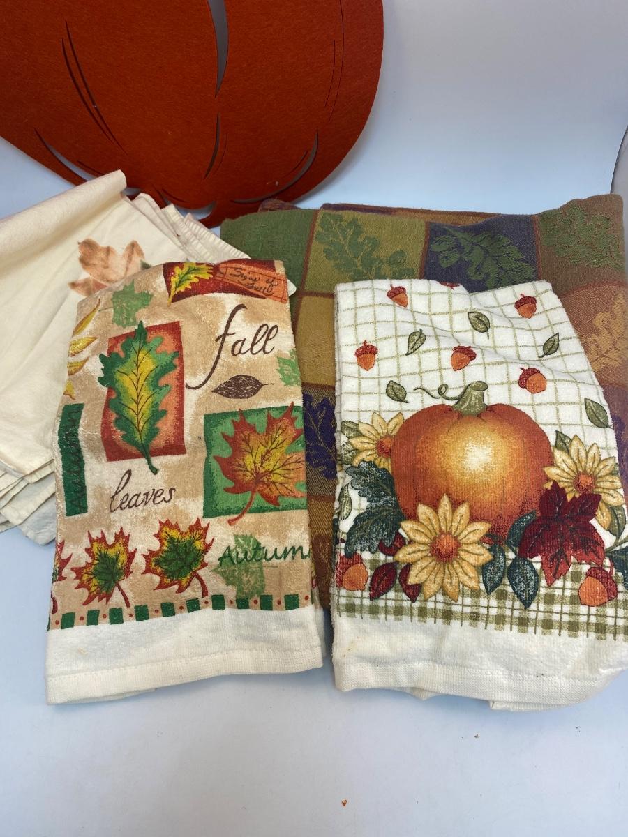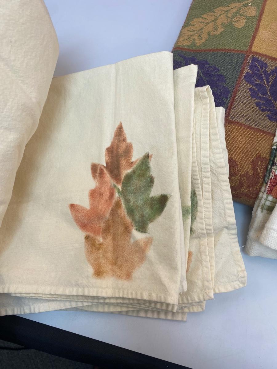 Fall Autumn Themed Table Linens Tablecloth Hand Towels Napkins