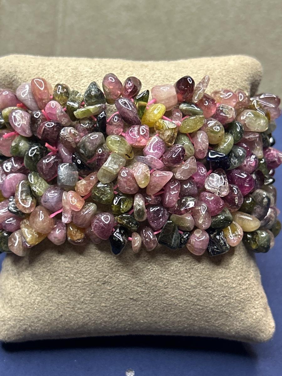 All stones: Amethyst, fluorite, quartz, MOP, rubellite, tourmaline & Elbaite. For sure the feather clasp is 925 .Camera doesn’t do these colors justice!!