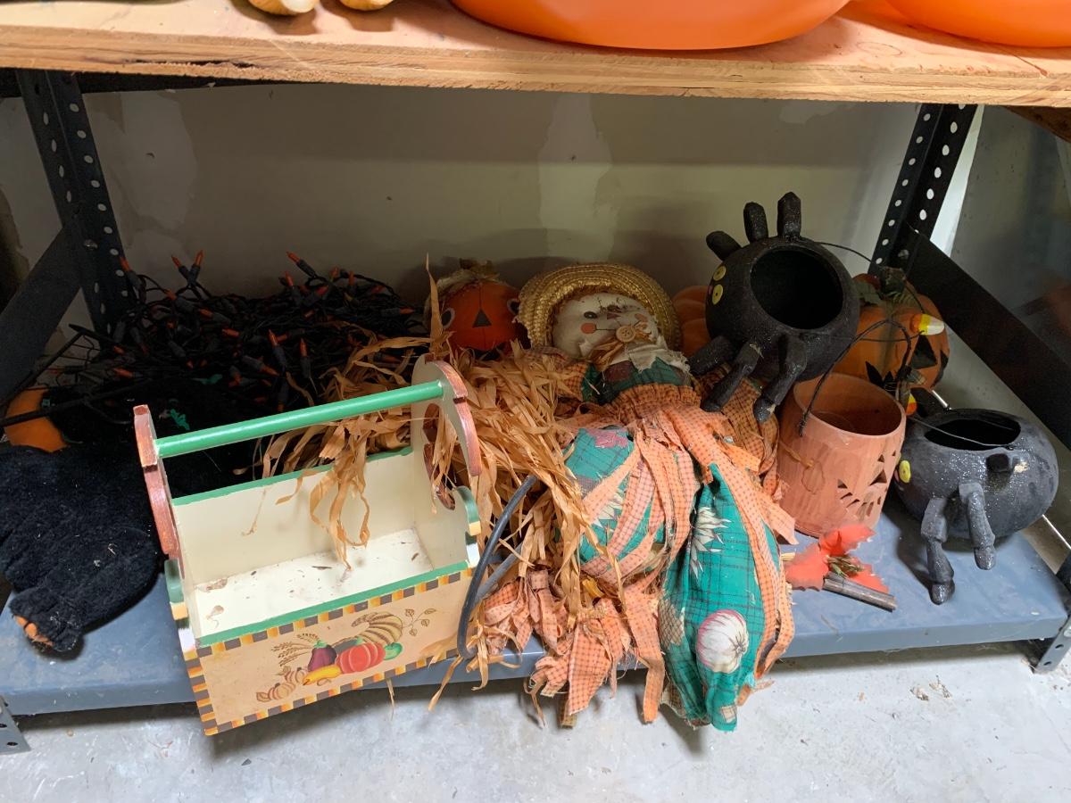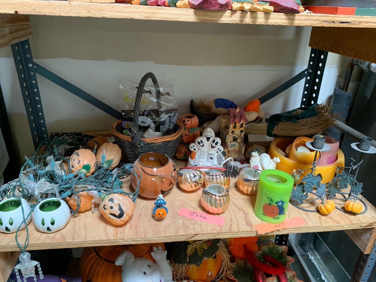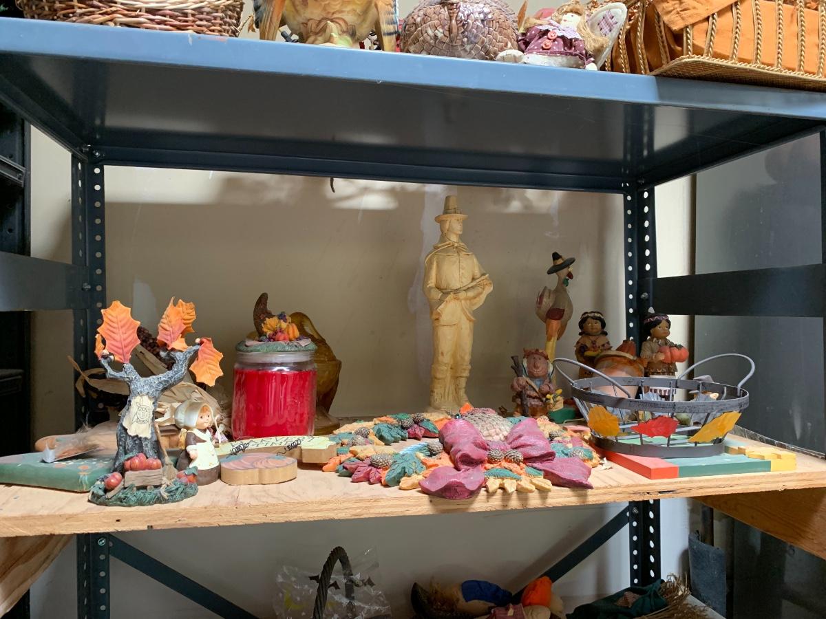 Fall Decor for seasonal holidays like halloween and thanksgiving. A lot of vintage items in here, also some new. Shelf included.