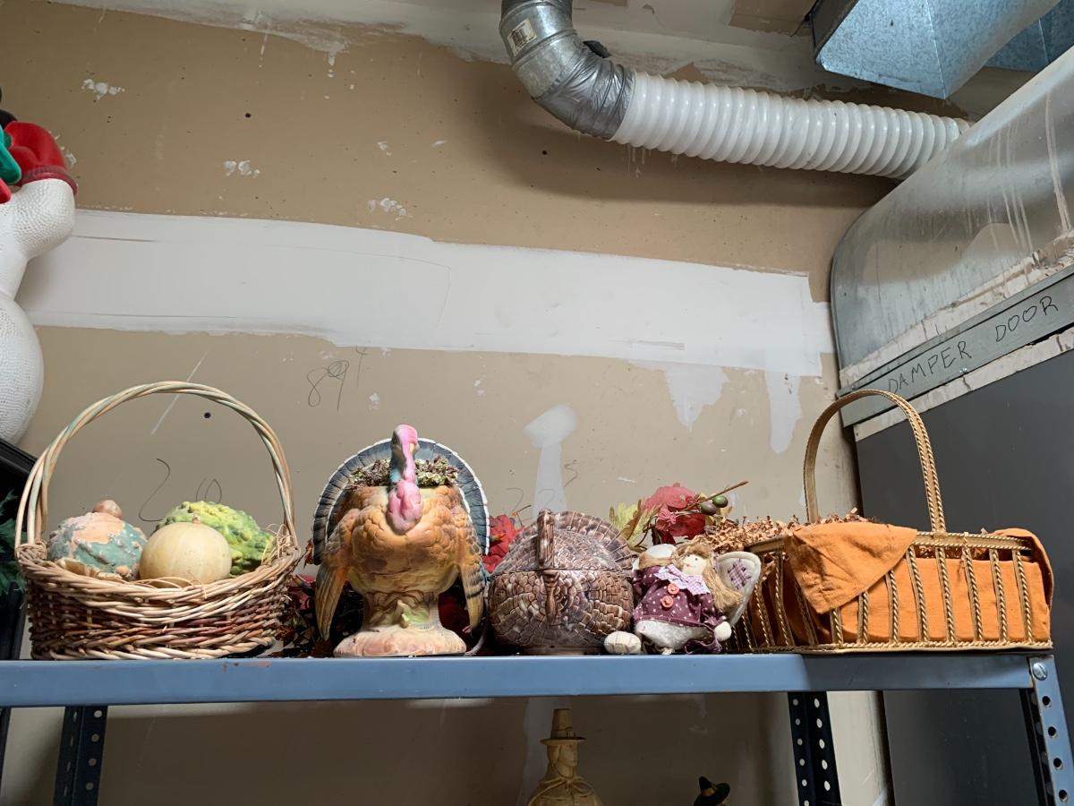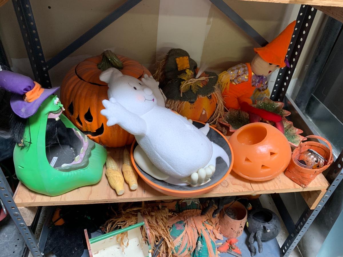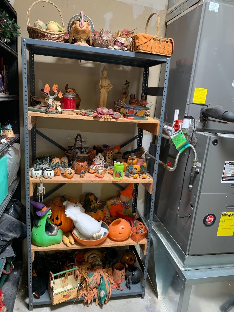 Fall Decor for seasonal holidays like halloween and thanksgiving. A lot of vintage items in here, also some new. Shelf included.