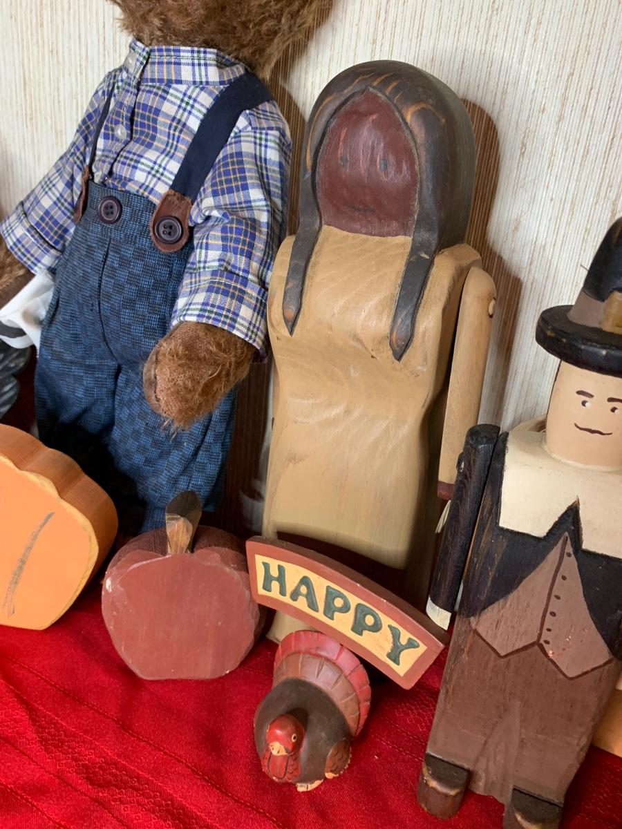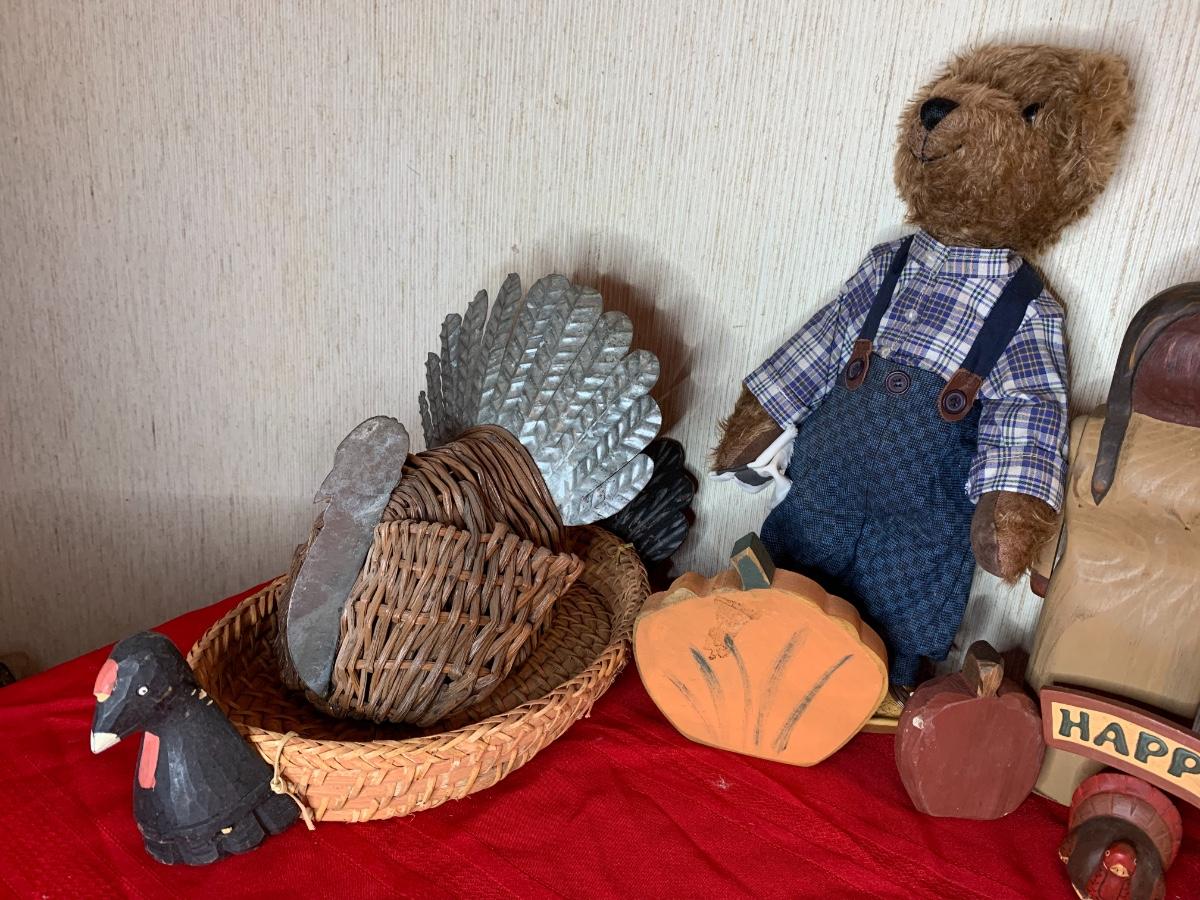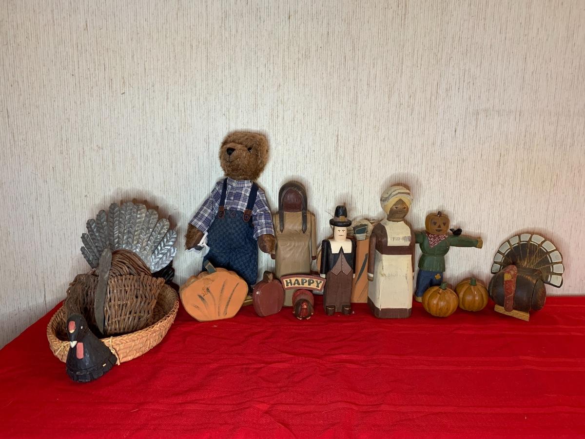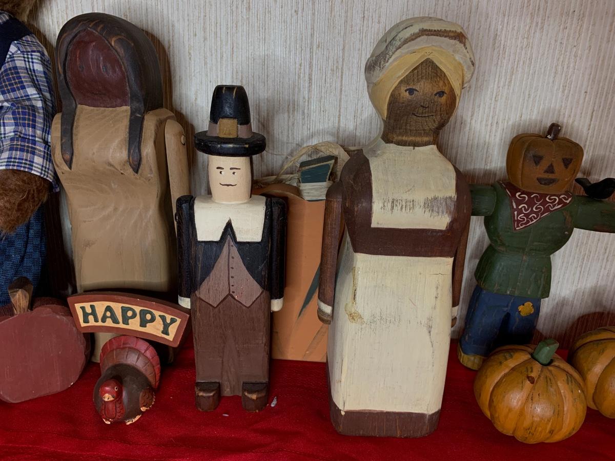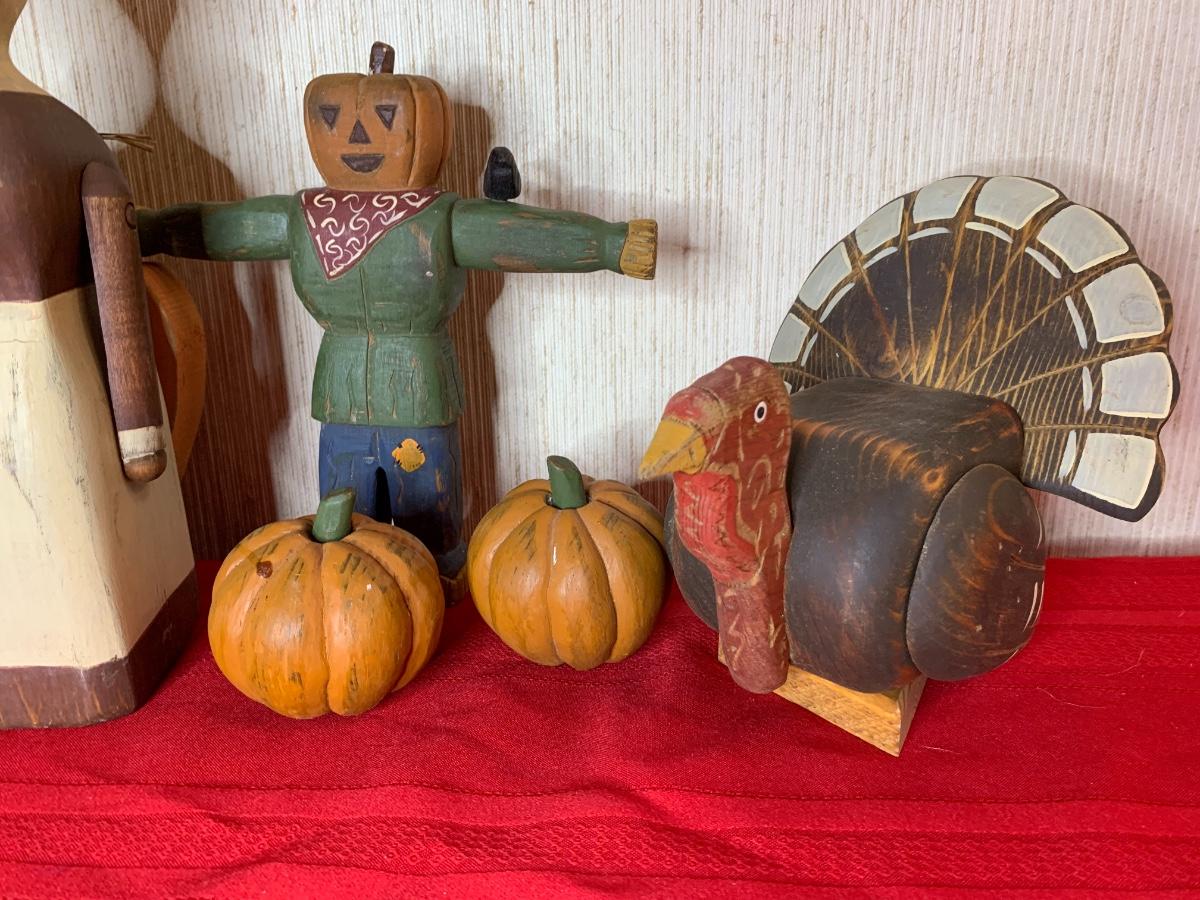 Assorted fall decor including thanksgiving turkeys and pilgrims and fall pumpkins perfect for every fall occasion
