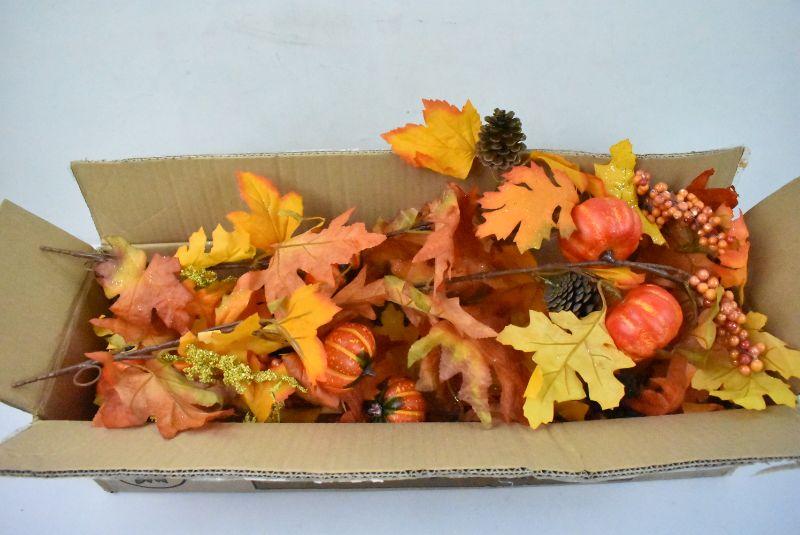 Fall Decorative Garland, Orange Pumpkin/Berry Cone, 2 Strands, 6 Feet Each - New