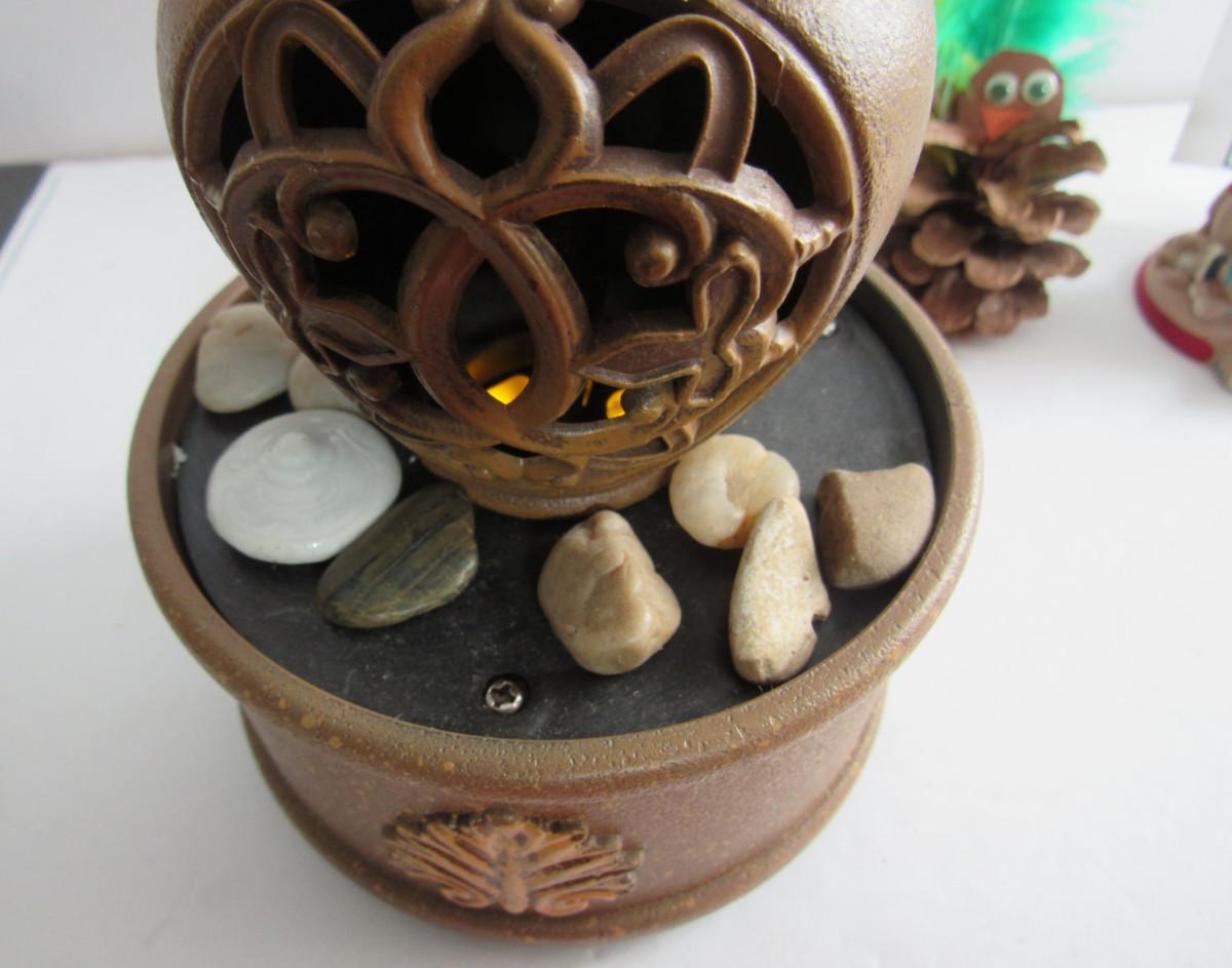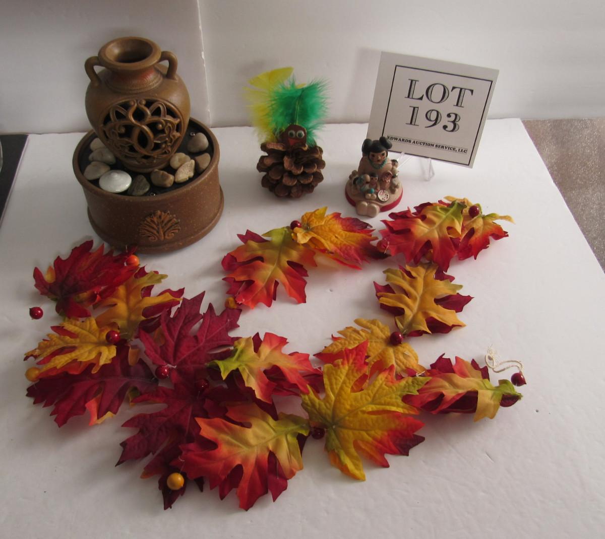 I think the plastic thing is supposed to be a water feature, the motor and light do work but I don't know what it is supposed to do. The Native American figurine has small chips. Shipping is available at cost plus $5.00 per box handing and supply fee. See our terms for details. All sales final.