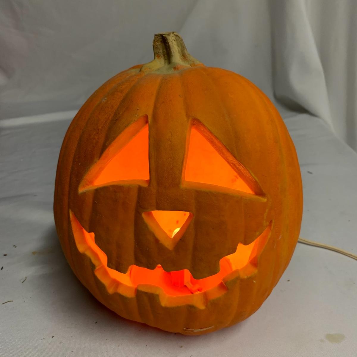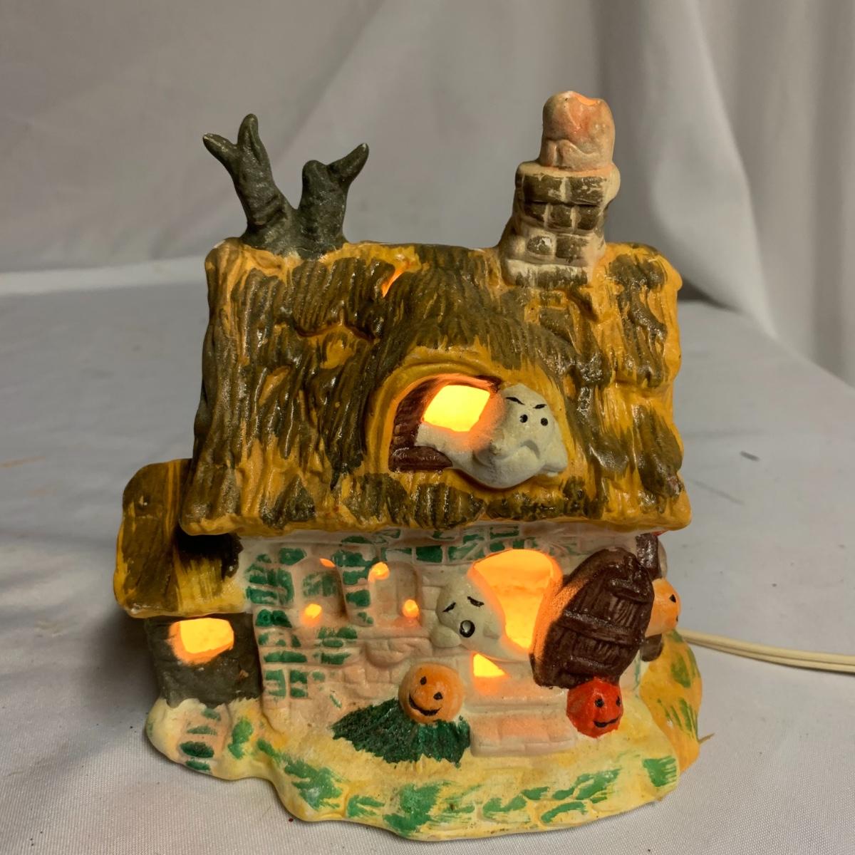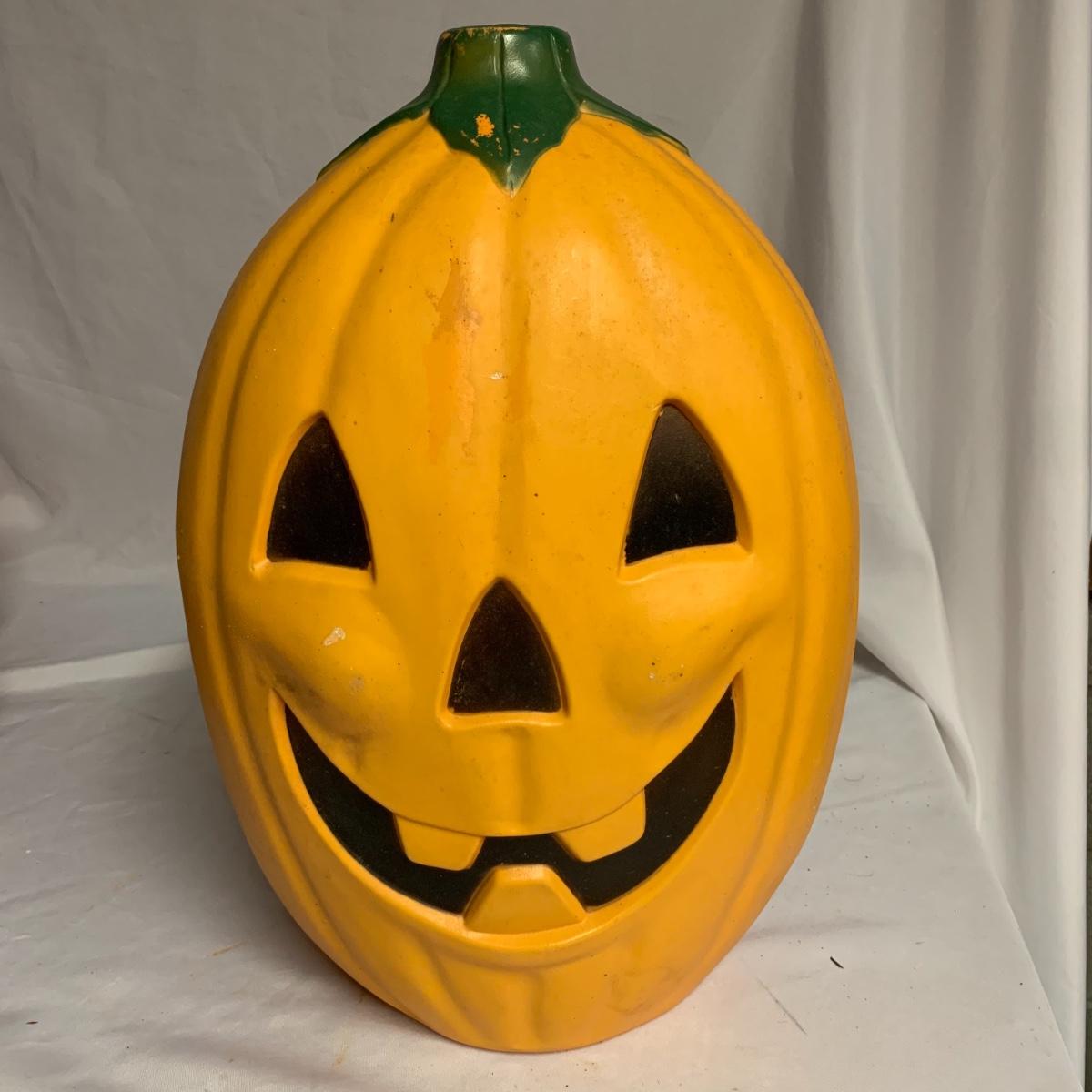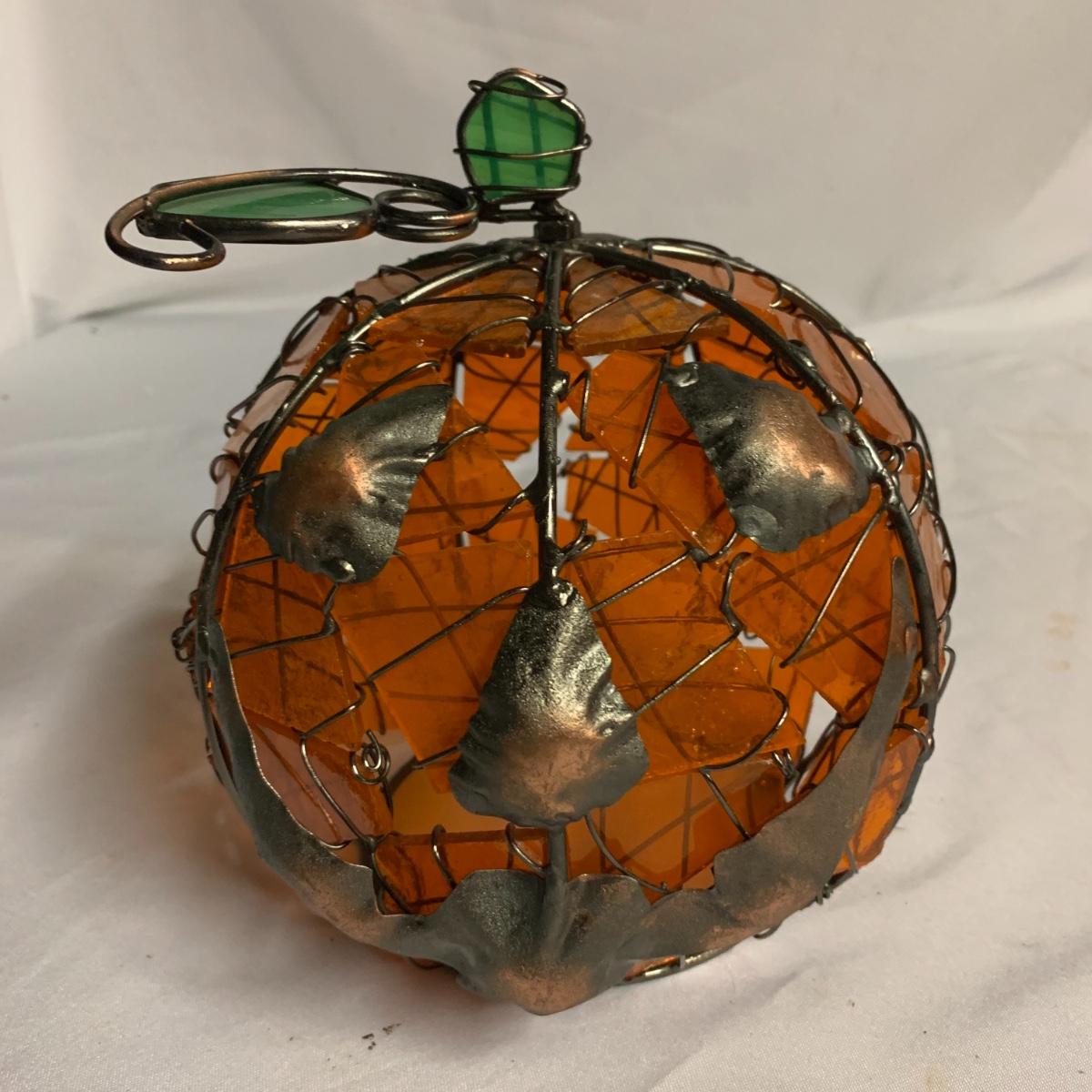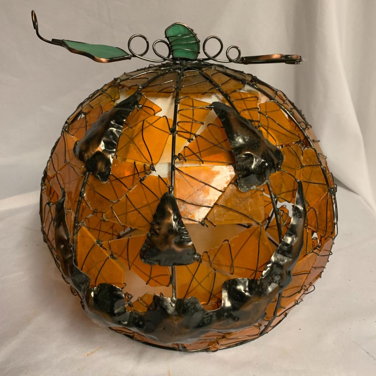 This lot includes an assortment of Halloween, thanksgiving, and fall home decor. The lot also includes a nesting set of mosaic glass pumpkins. The largest pumpkin measures about 20in tall. Local Pickup Only.