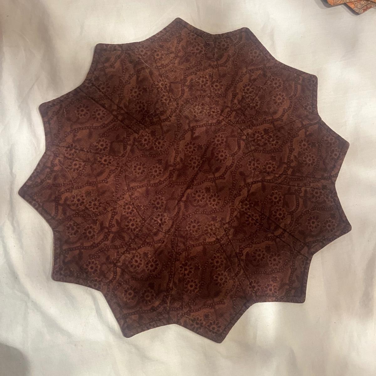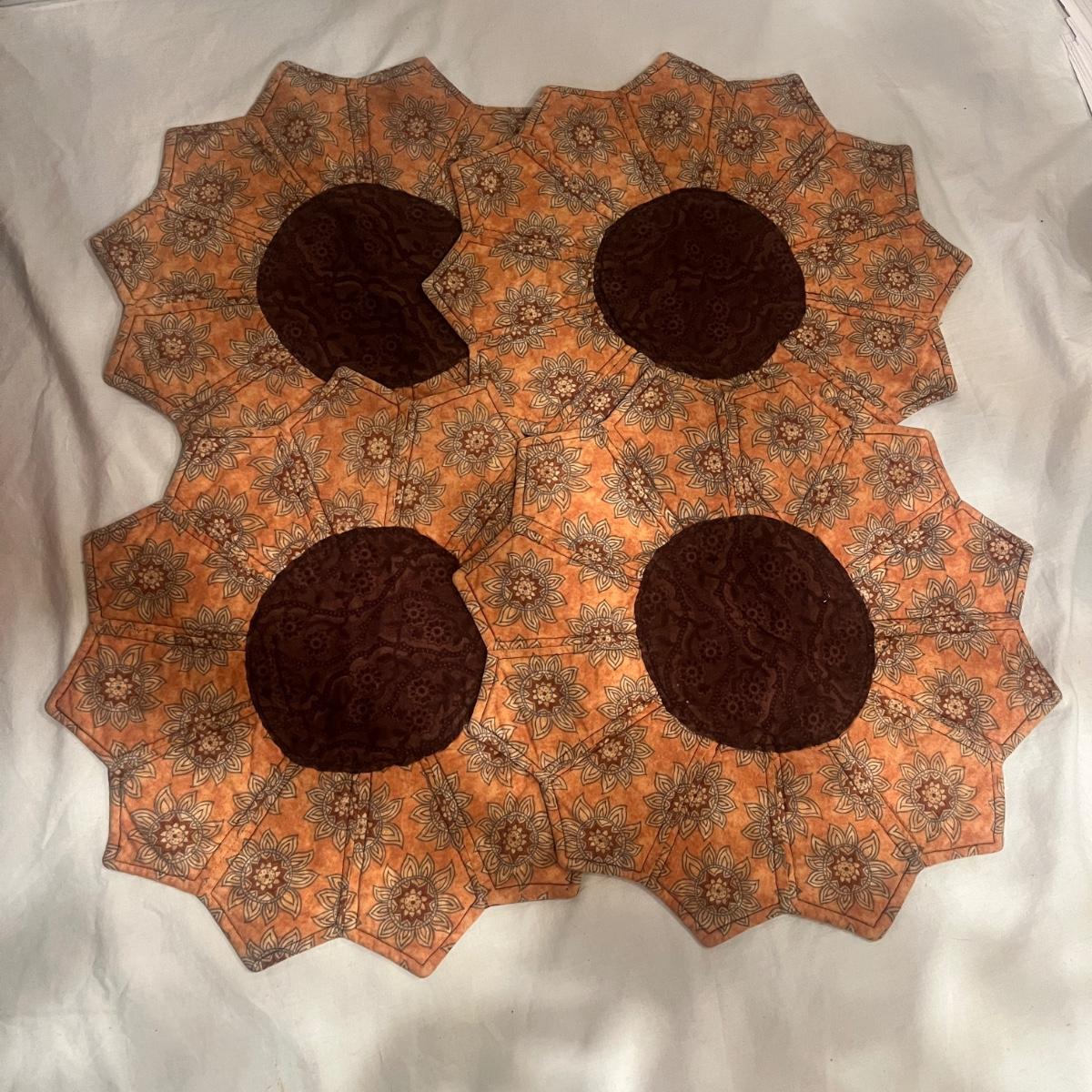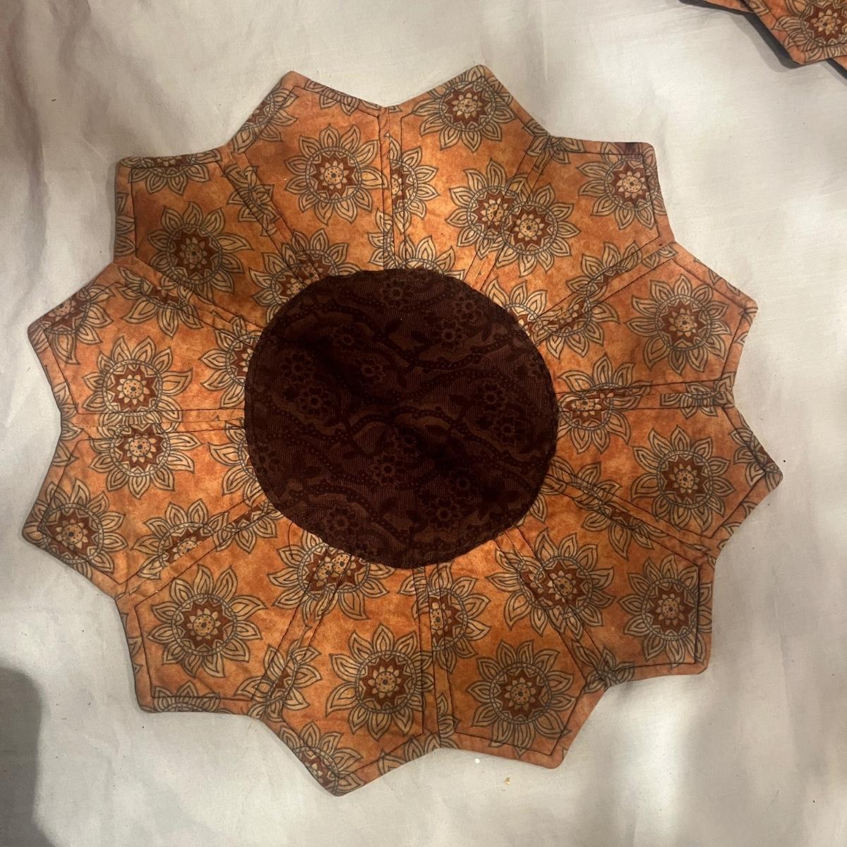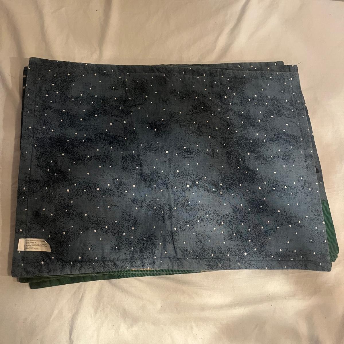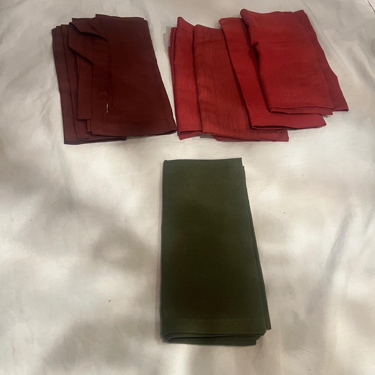 Lot contains a large selection of fall linens, placemats napkin rings, table runners, oven gloves and tablecloths. Largest tablecloth measures 50” x 58”.