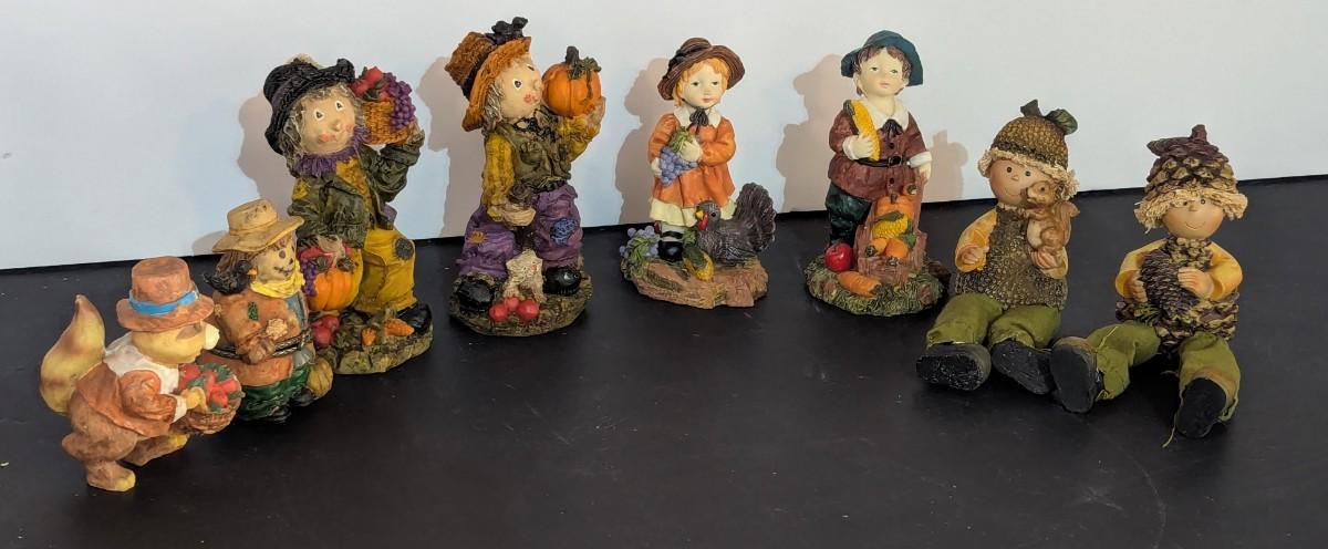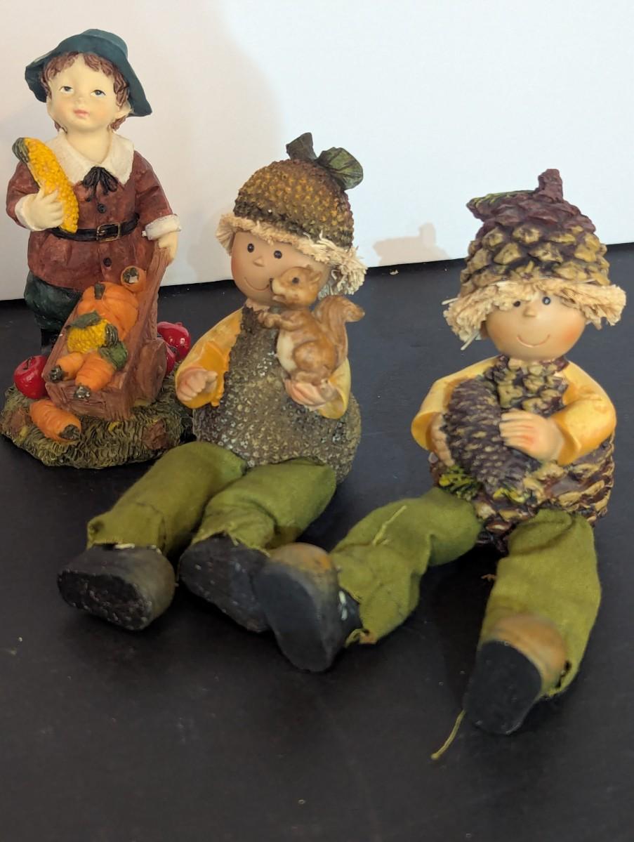 Fall Scarecrows Acorn Kids Pilgrim Boy & Girl Figurines