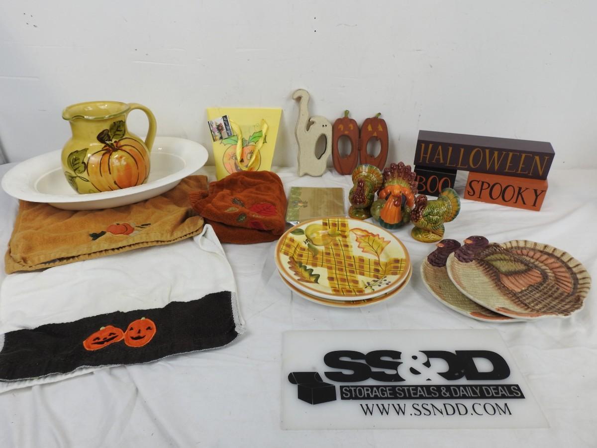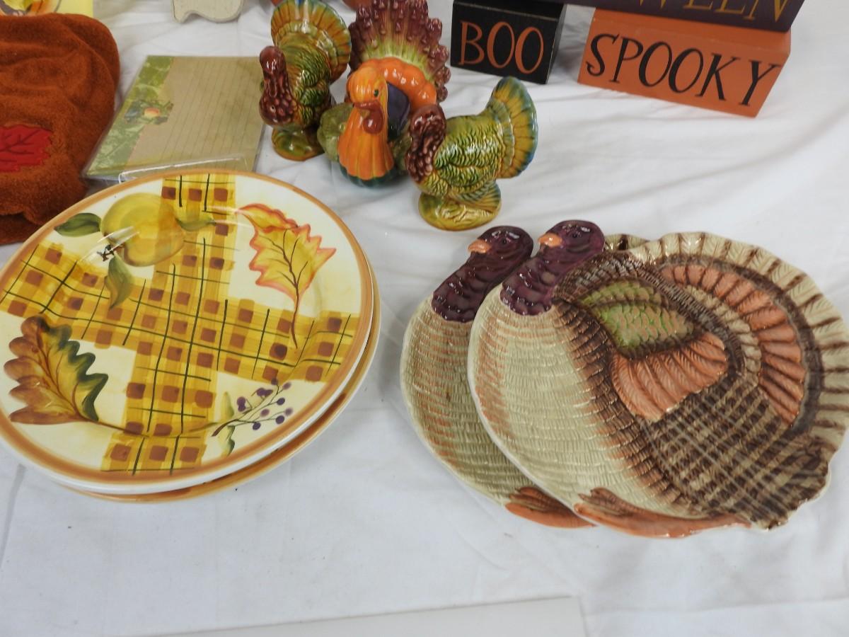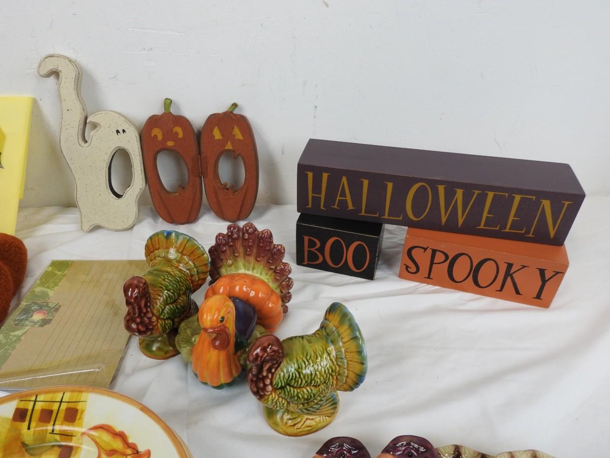 Fall Theme Decor Lot: Halloween Signs and Thanksgiving Salt and Pepper Shakers