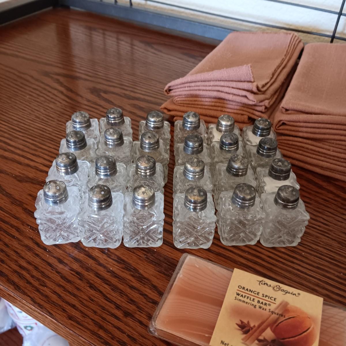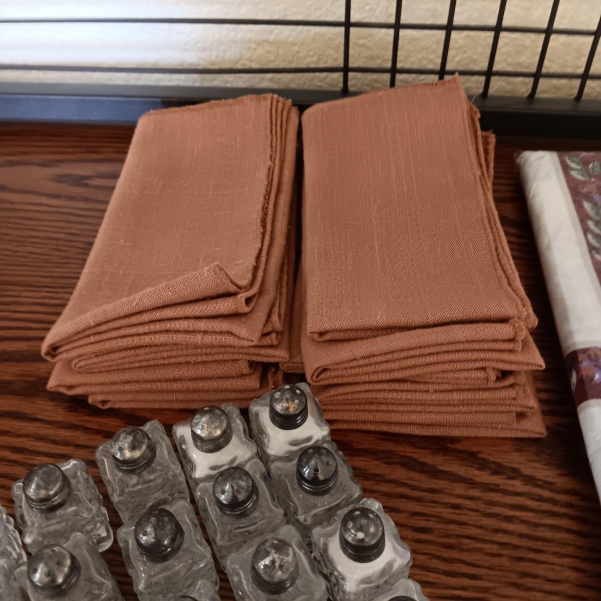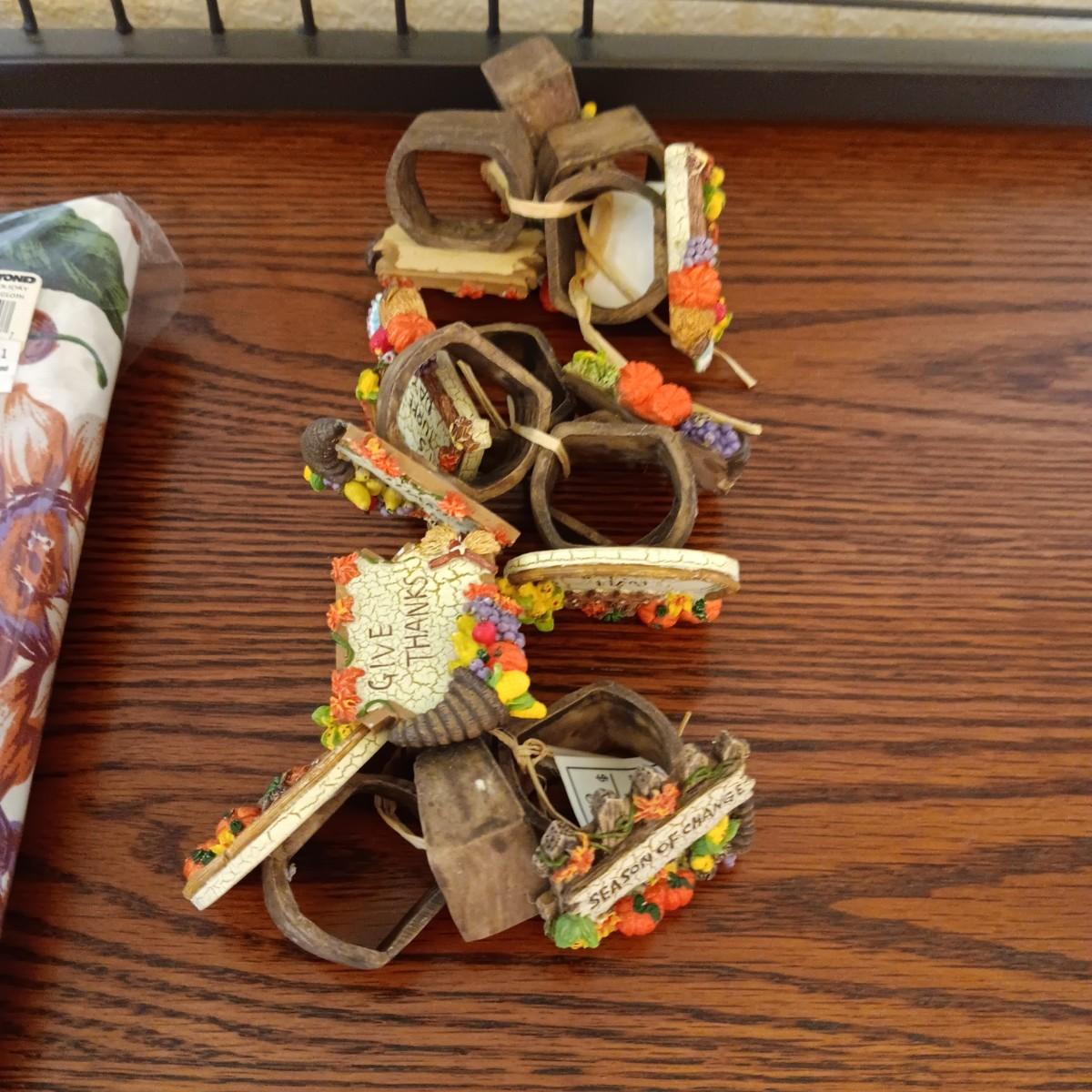 FALL THEMED LINEN TABLECLOTH & NAPKINS PLUS SHAKERS AND NAPKIN RINGS FOR 12