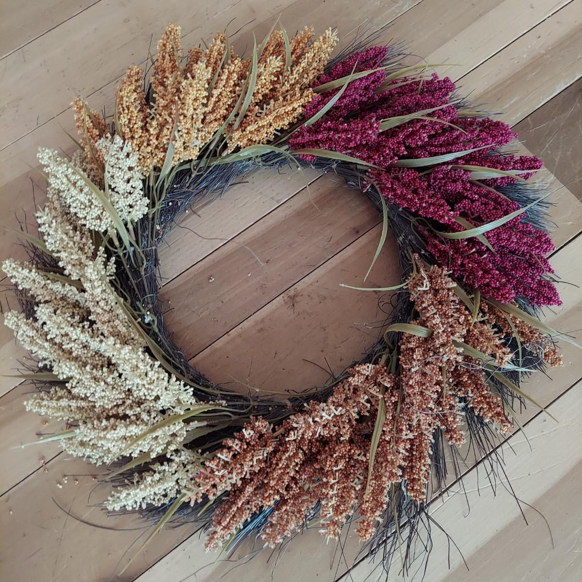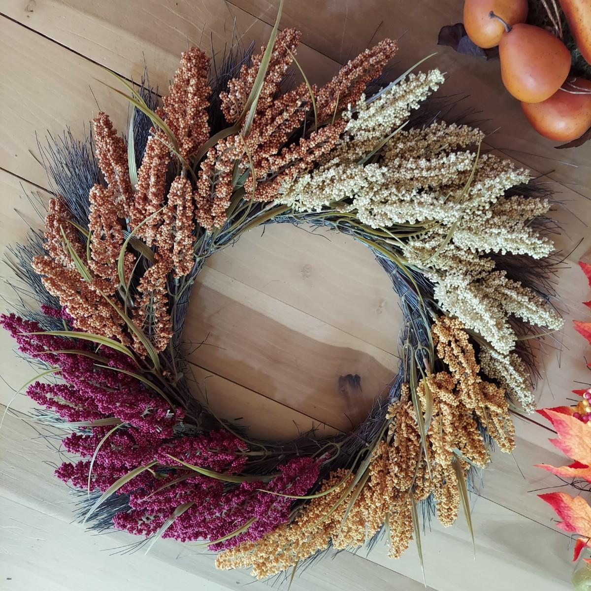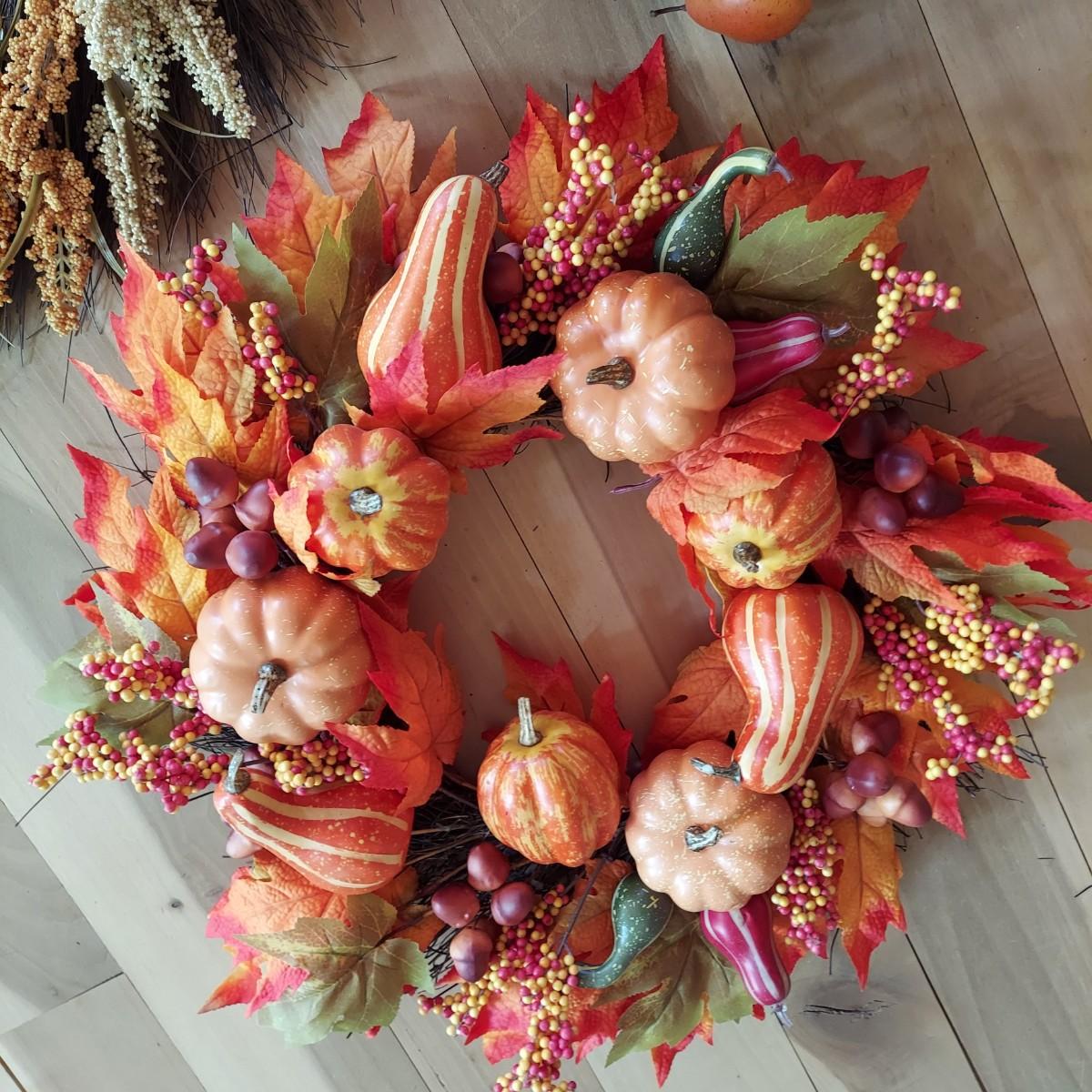 There are 6 wreaths and a handful of dried decorative bits. There are two matching wreaths of each style. There are made from faux materials. They are approximately 15-22" diameter. Shipping available. Shipping certain items can be costly. We suggest contacting our preferred local shipping provider, Postage Express, with dimensions and getting an estimate before bidding: (828) 670-5501 or postageexpress@yahoo.com.