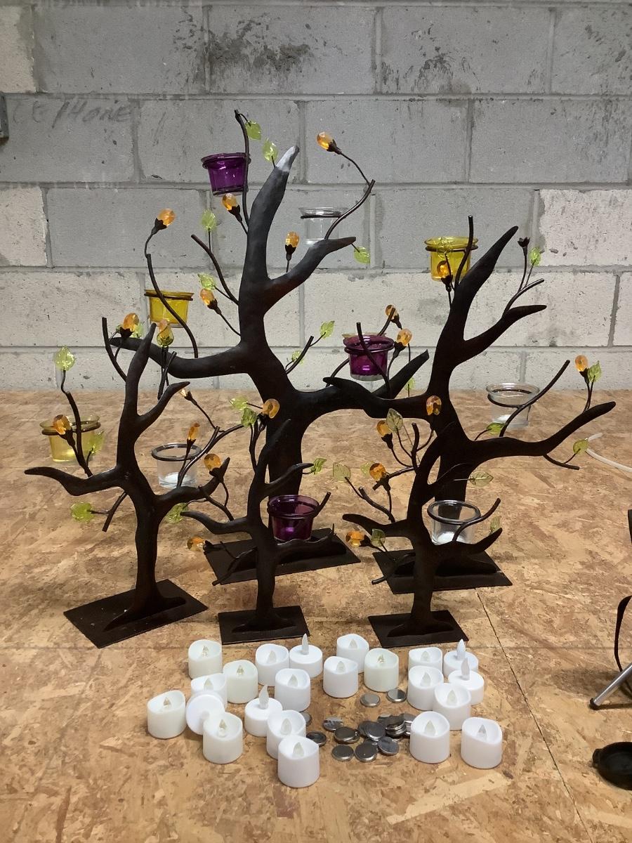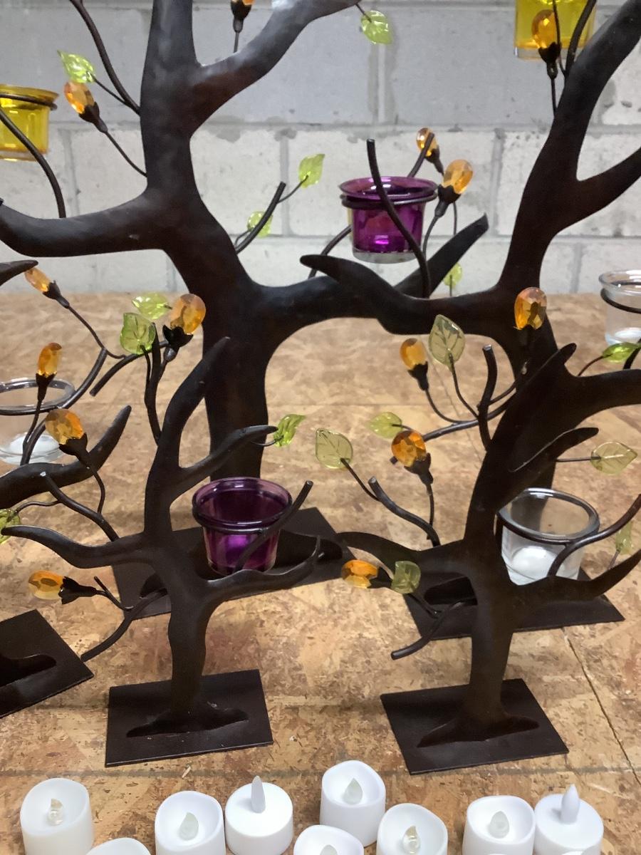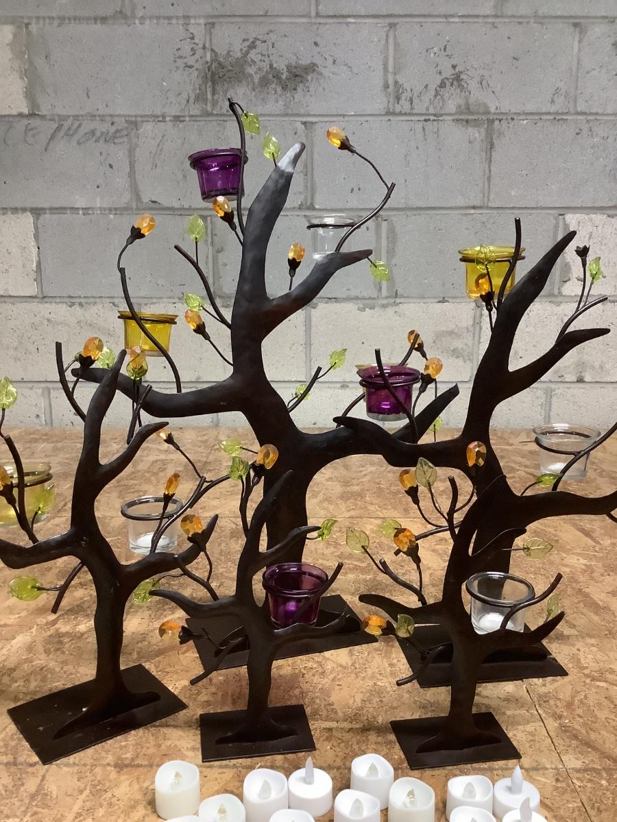 Fall/Halloween Decor 5 metal trees with glass holders for candles/battery operated candles included