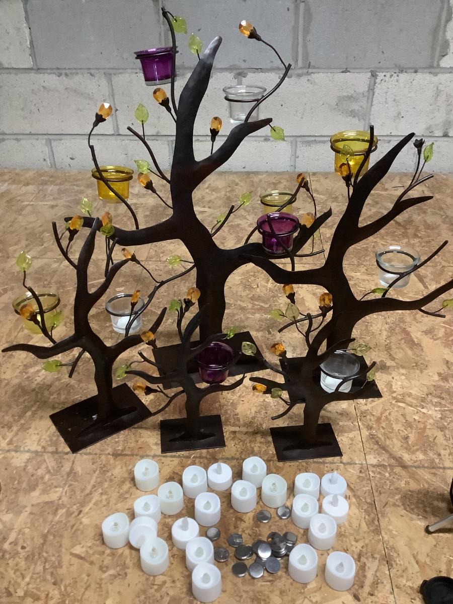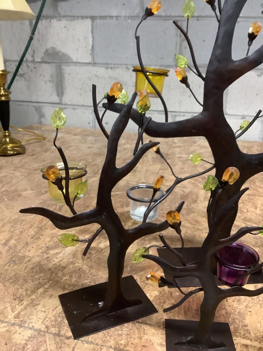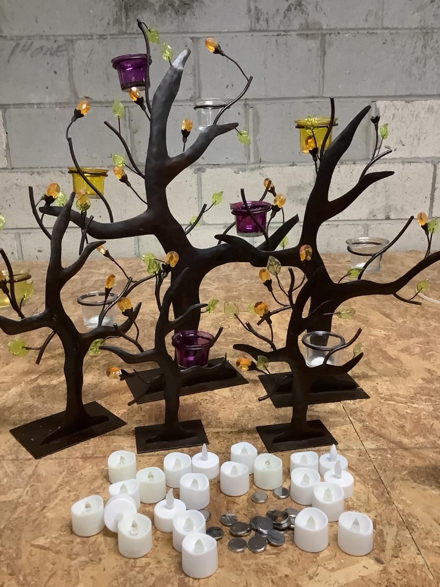 Fall/Halloween Decor 5 metal trees with glass holders for candles/battery operated candles included
