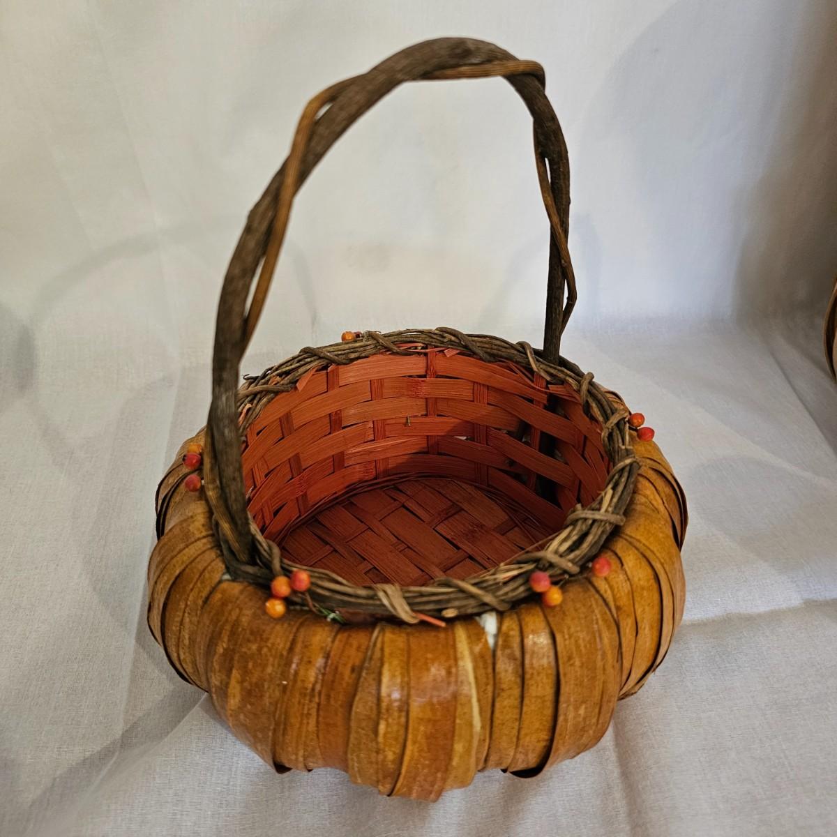 Fun, whimsical decorations for fall and Halloween. Pumpkin, plastic cauldron, lights and more. Large basket with apples measures 12.5"D x 11.5"H. See photos for details. Local pickup only.