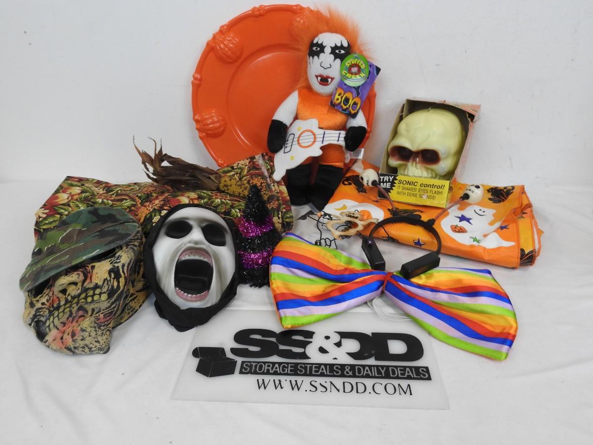 Fall/Halloween Lot: Tablecloths, Masks, Costume Accessories, Stuffed Toy