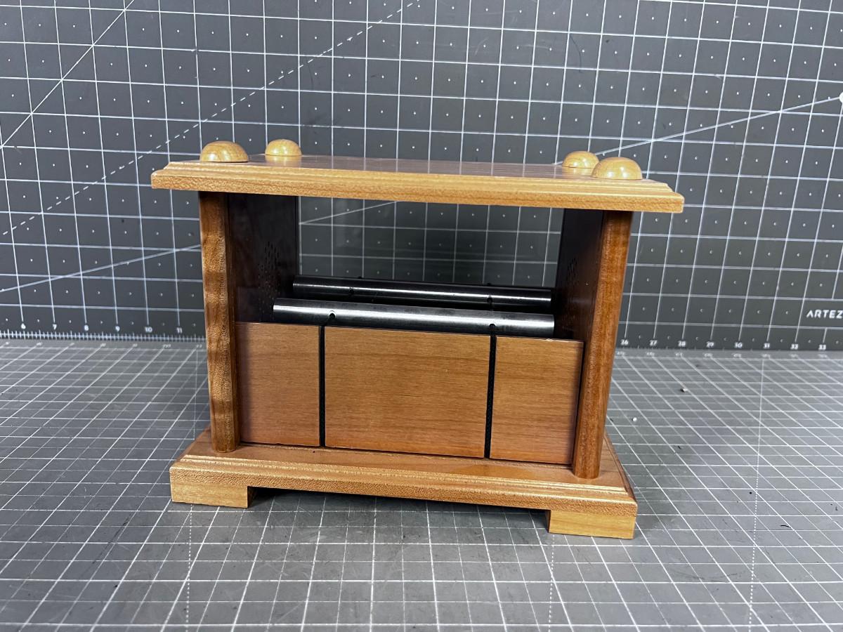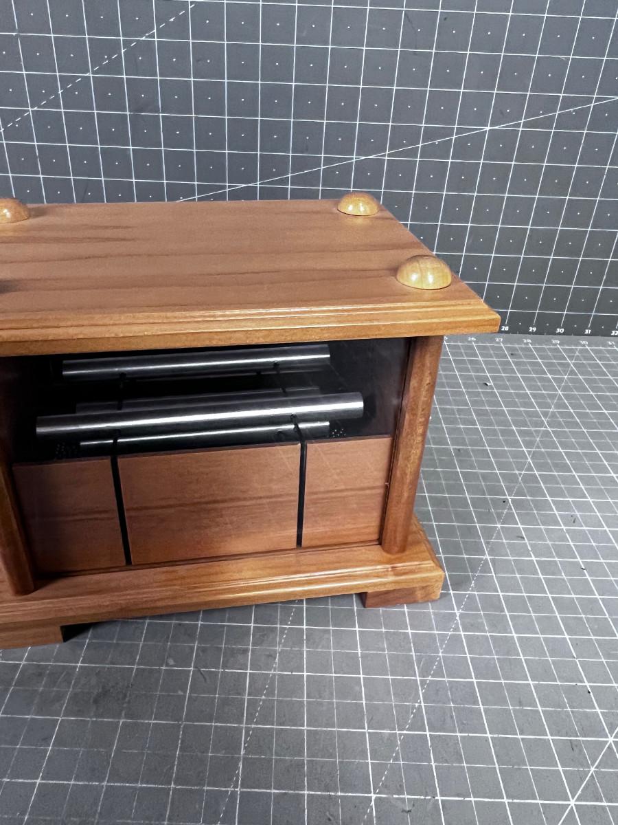 5 X 7 X 6 box Measurements. Has Small Steel Balls inside. Doesn't seem to work proper but that could just be us. It does appear complete.
