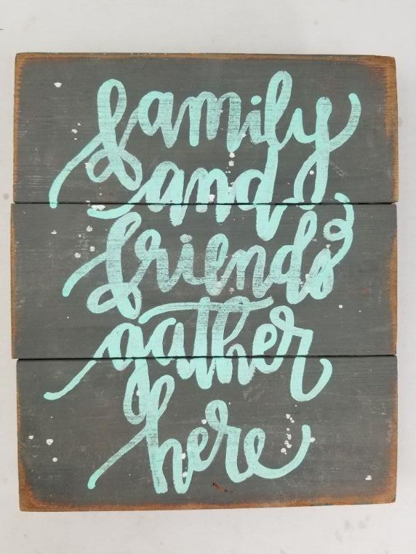 Family and Friends Gather Here Rustic Wooden Wall Sign 10.25" x 8.5"
