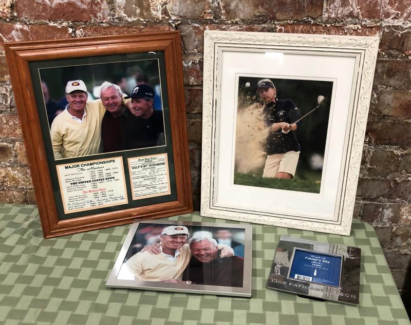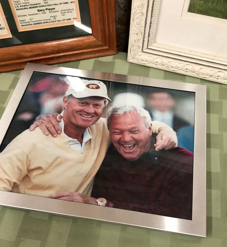 Arnold and Jack among the great players here in framed photographs..Great lot for a golfers office or den......