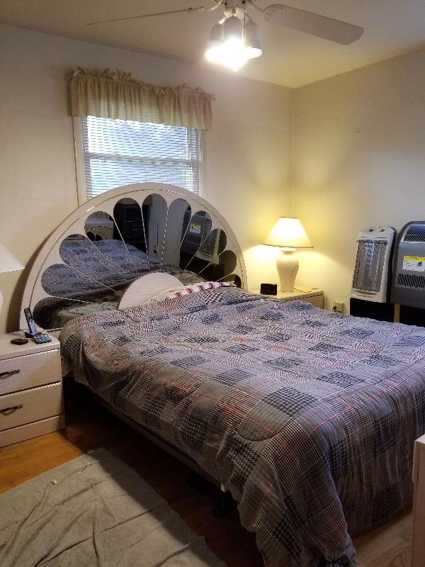 Mirrored "Fan" style King or Queen (adjustable headboard) with queen mattress and bedding
