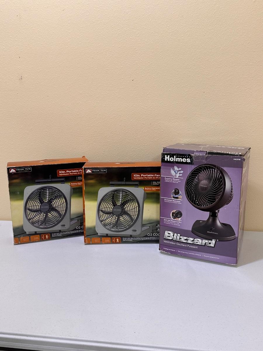 Holmes Fan has been opened and gently used ~ Ozark Trail Fans~ one is brand new, never used, while the other fan appears to have been opened, but not used