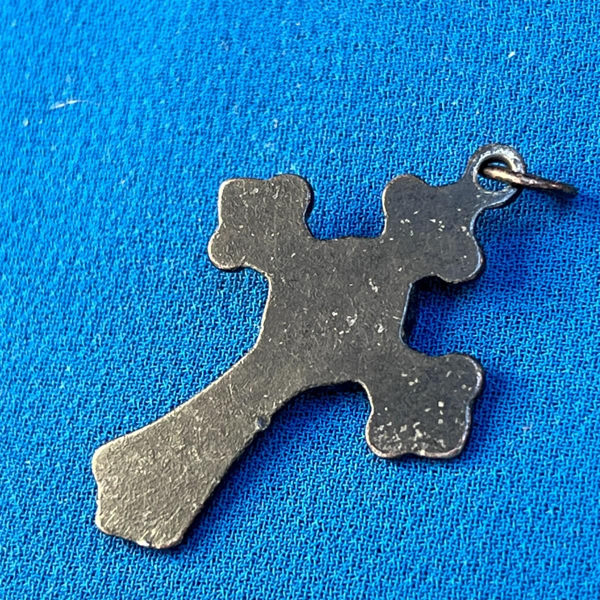 FANCY DARK METAL CROSS w/ RED STONE CENTER PENDANT