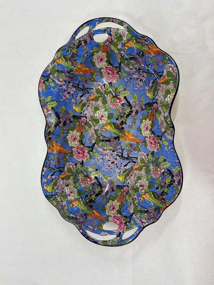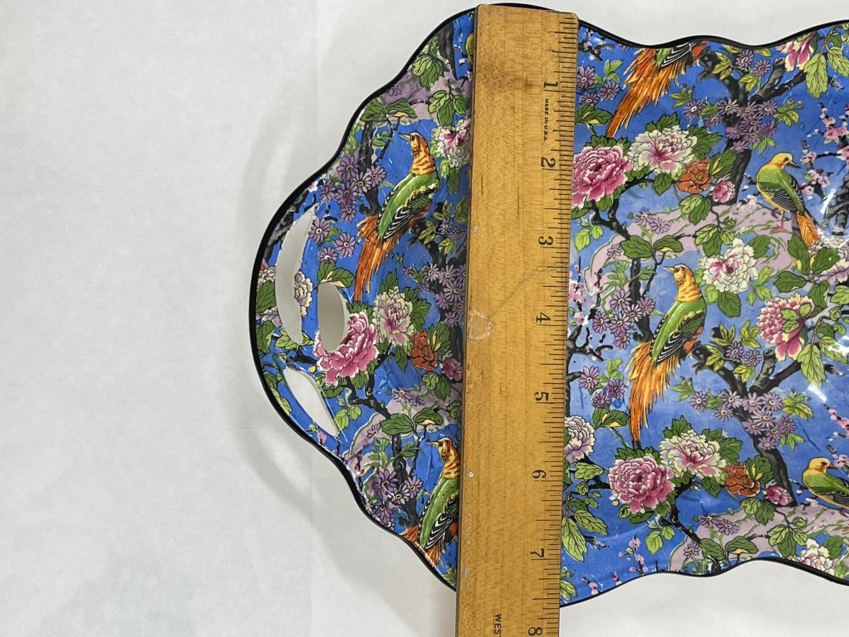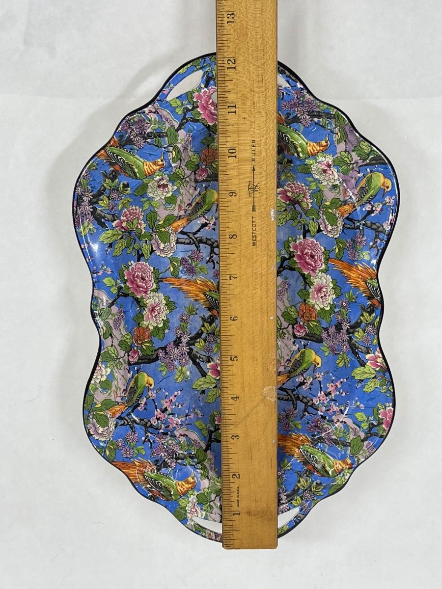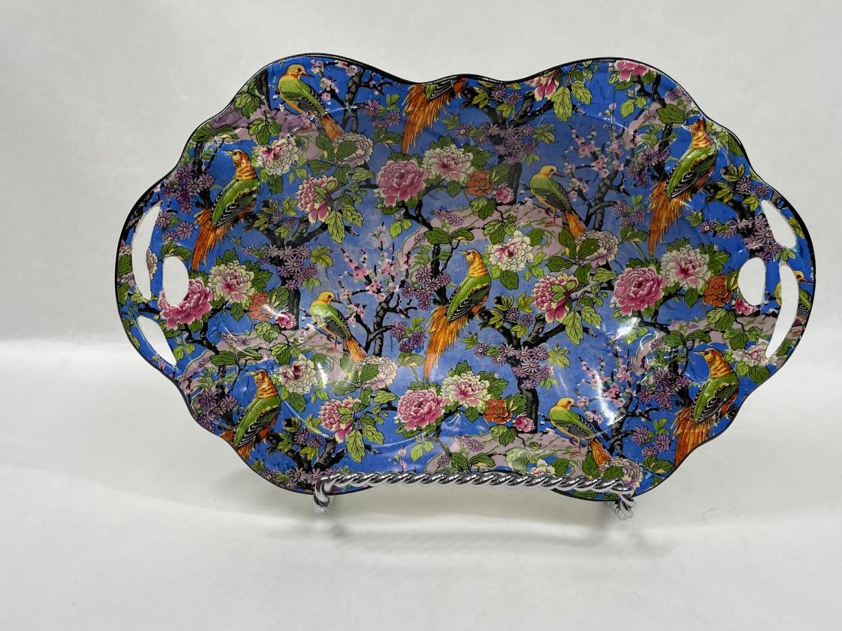 Handled Serving Platter Crown Ducal Ware Blue Parrot Chinz Pattern