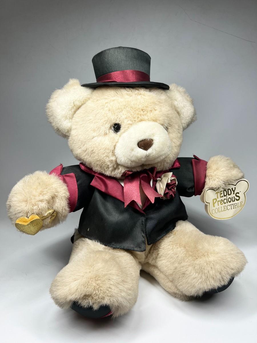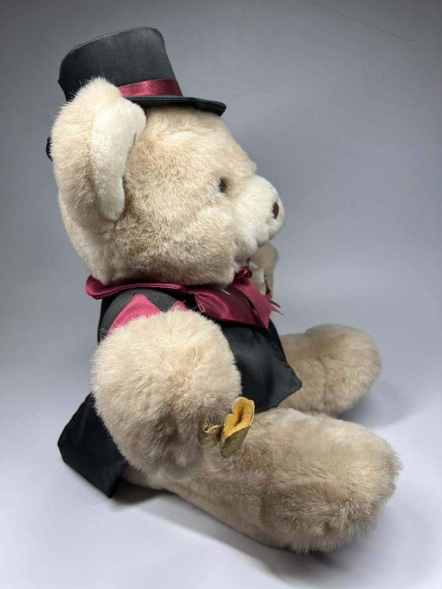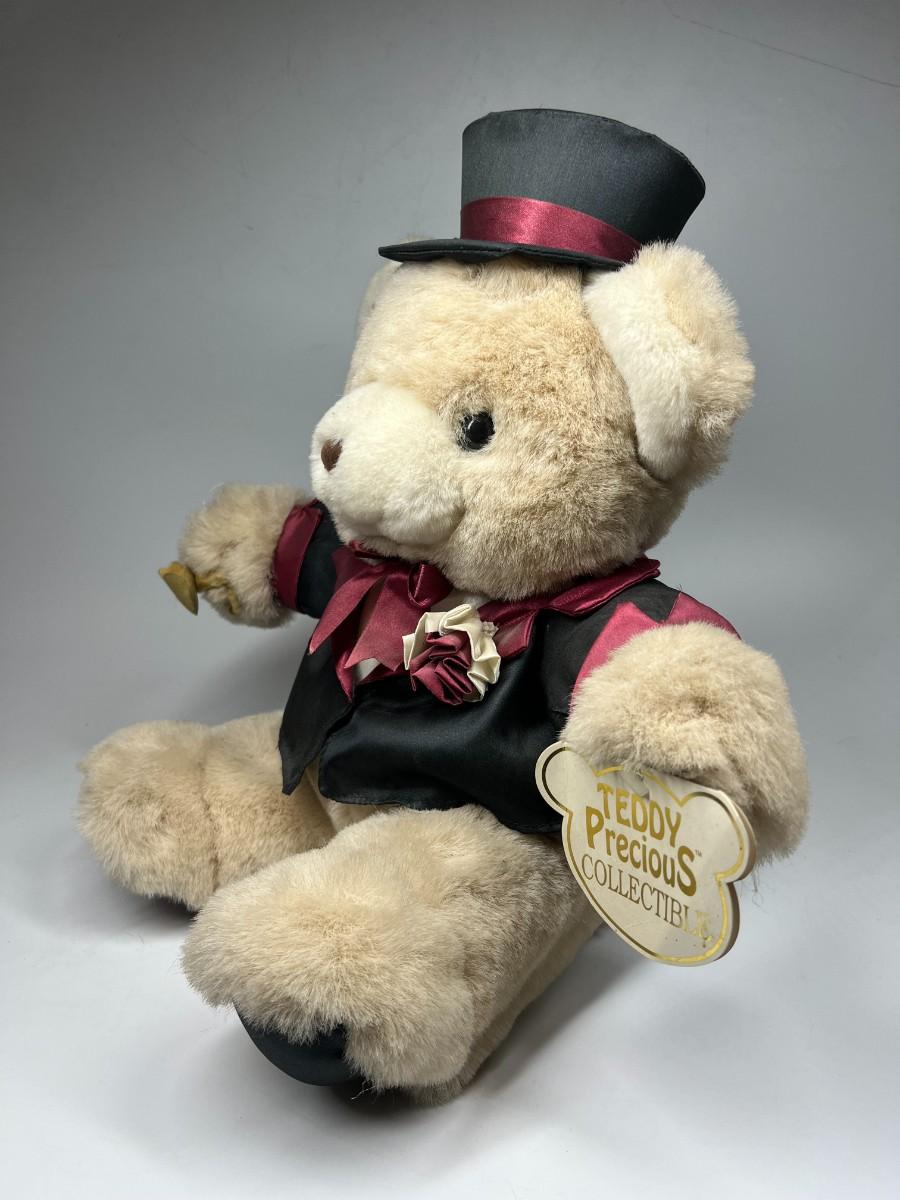 Fancy Dressed Plush Teddy Bear Stuffed Animal. Has original hang tags but is dusty and may have fade from age and display.
