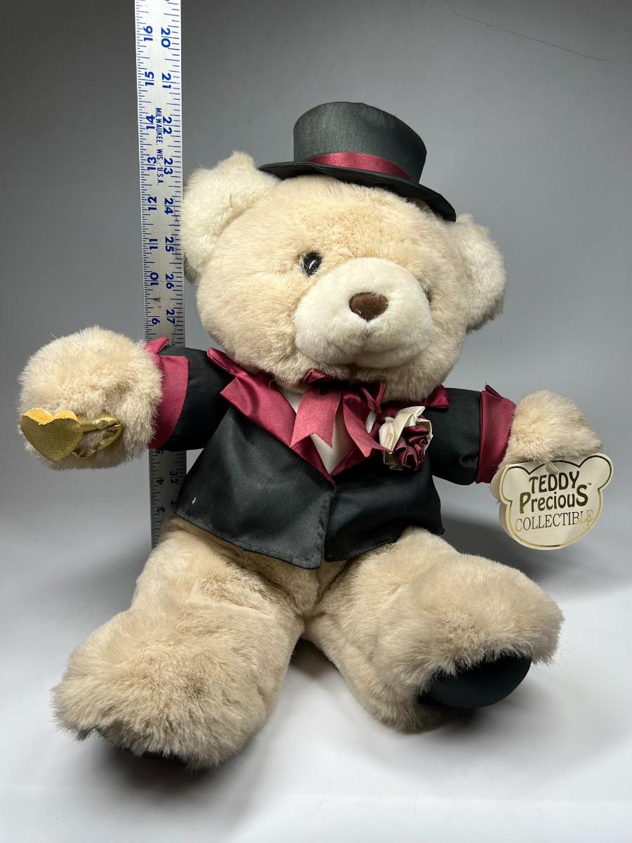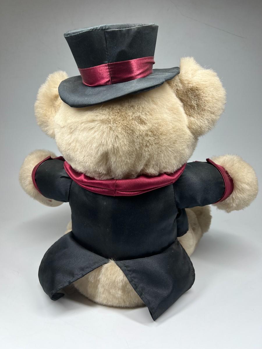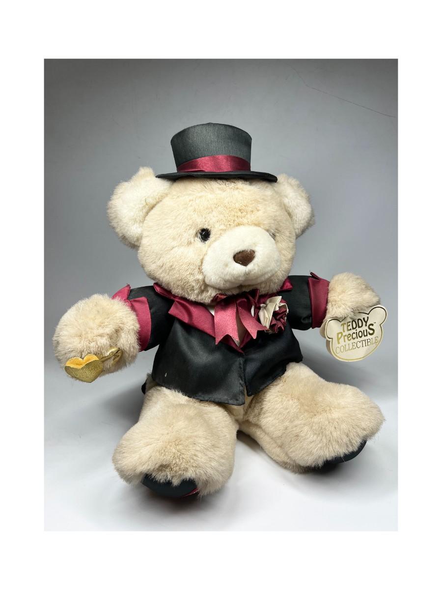Fancy Dressed Plush Teddy Bear Stuffed Animal. Has original hang tags but is dusty and may have fade from age and display.