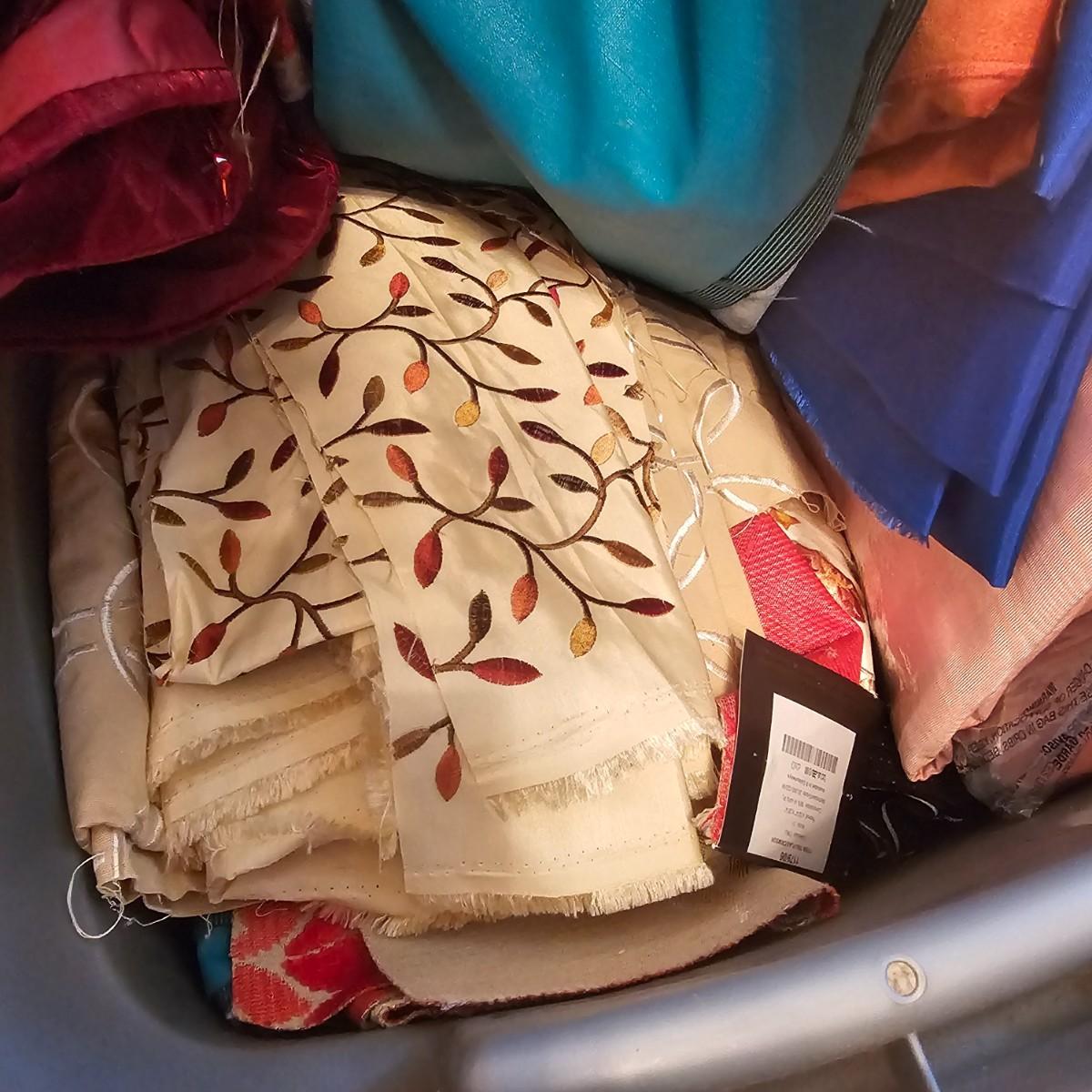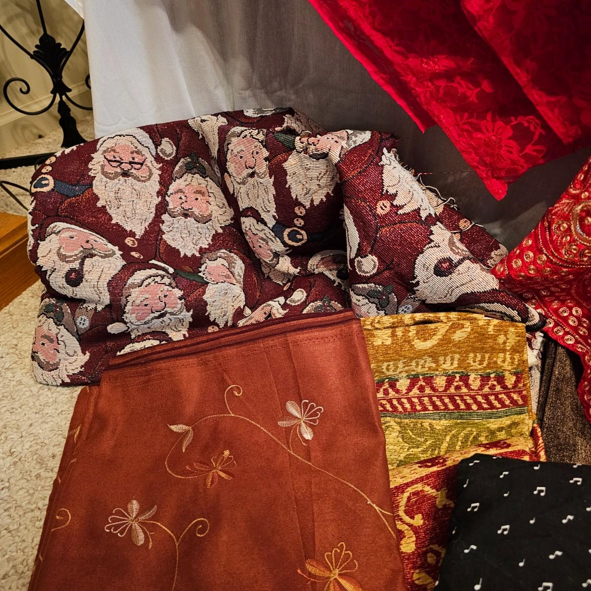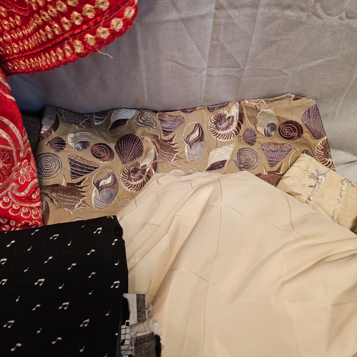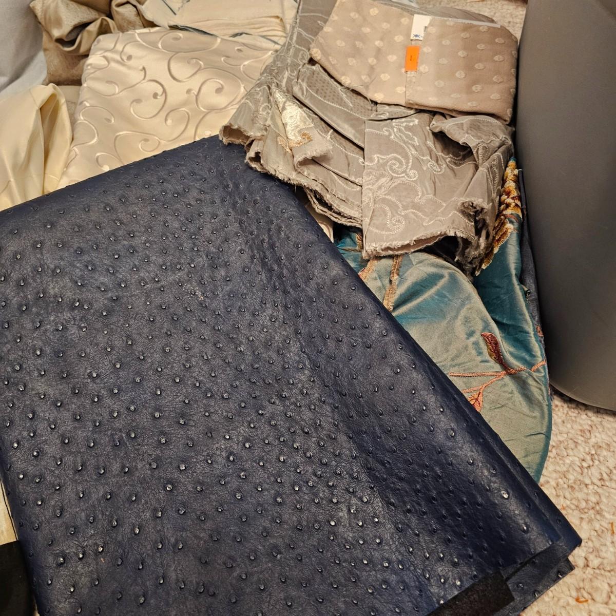A splendid assortment of higher quality fabric and upholstery items. Fun patterns, classic designs and a mixture of cotton, polyester, faux leather and velveteen. These are the ones we only buy if we have a very special project, and here is an entire lot of them. Sizes and lengths indeterminate but good quantities of each. See photos for details. Local pickup only.