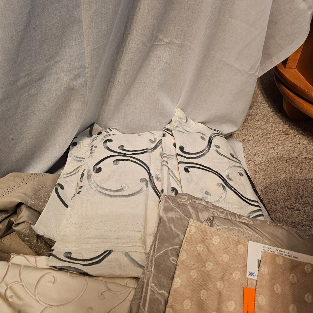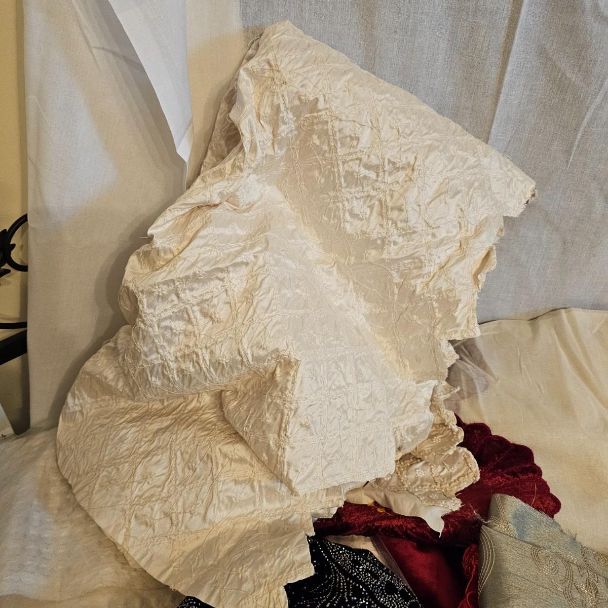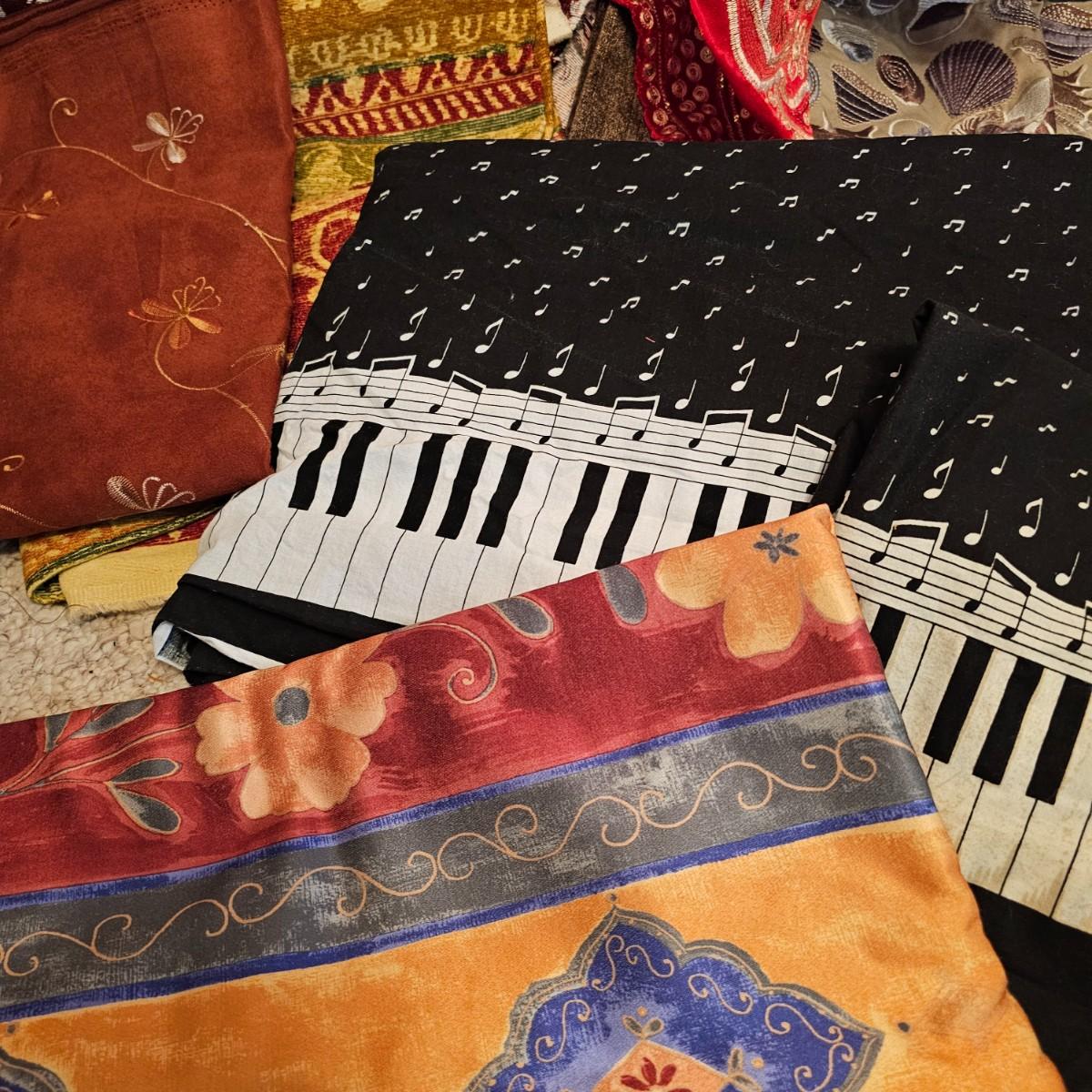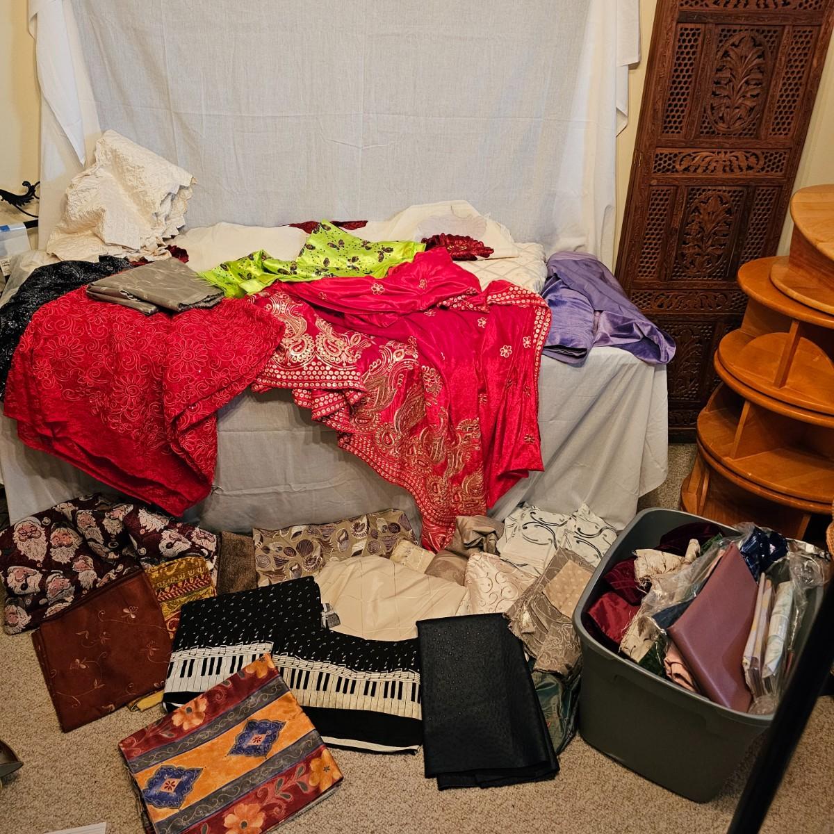 A splendid assortment of higher quality fabric and upholstery items. Fun patterns, classic designs and a mixture of cotton, polyester, faux leather and velveteen. These are the ones we only buy if we have a very special project, and here is an entire lot of them. Sizes and lengths indeterminate but good quantities of each. See photos for details. Local pickup only.