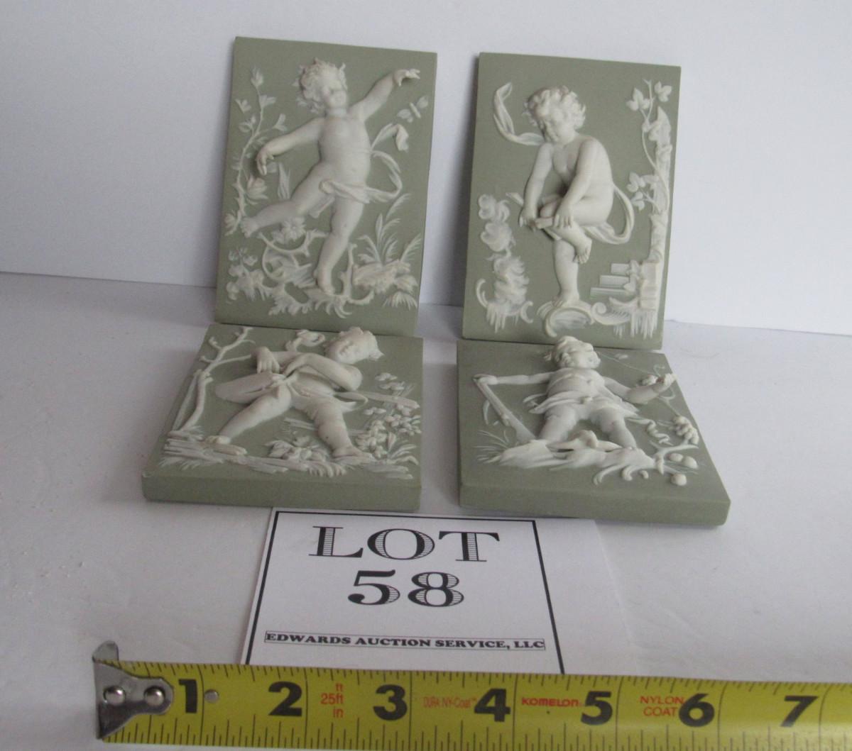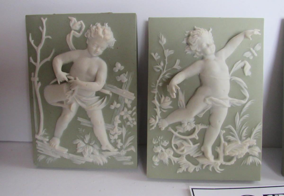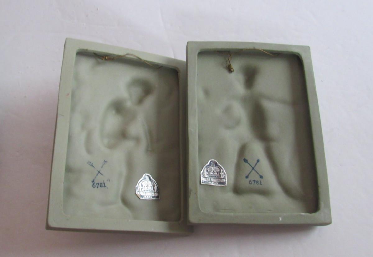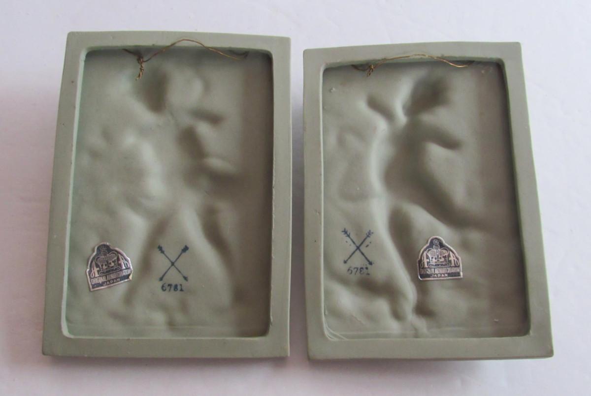 Fancy Jasperware Bisque Figural Wall Plaques, Read Description