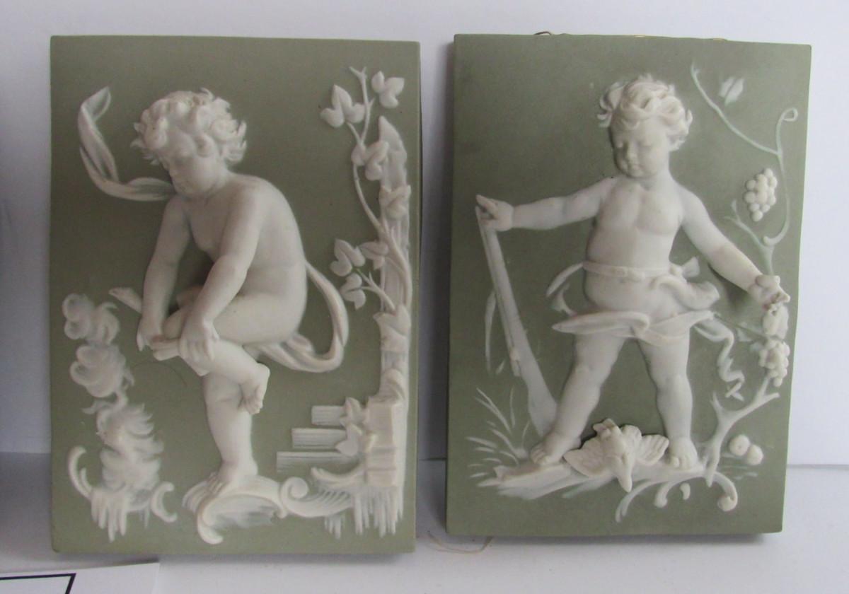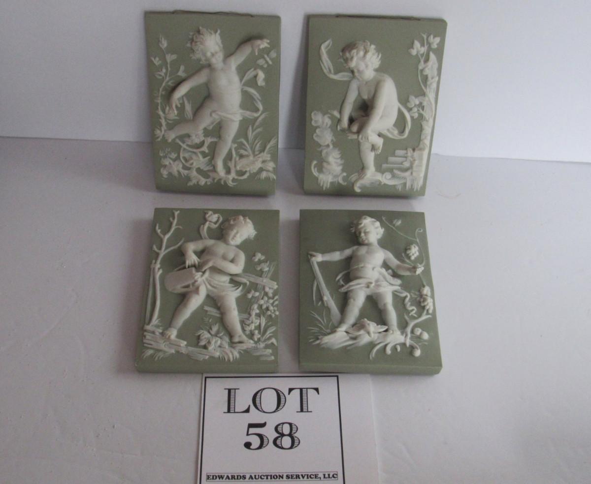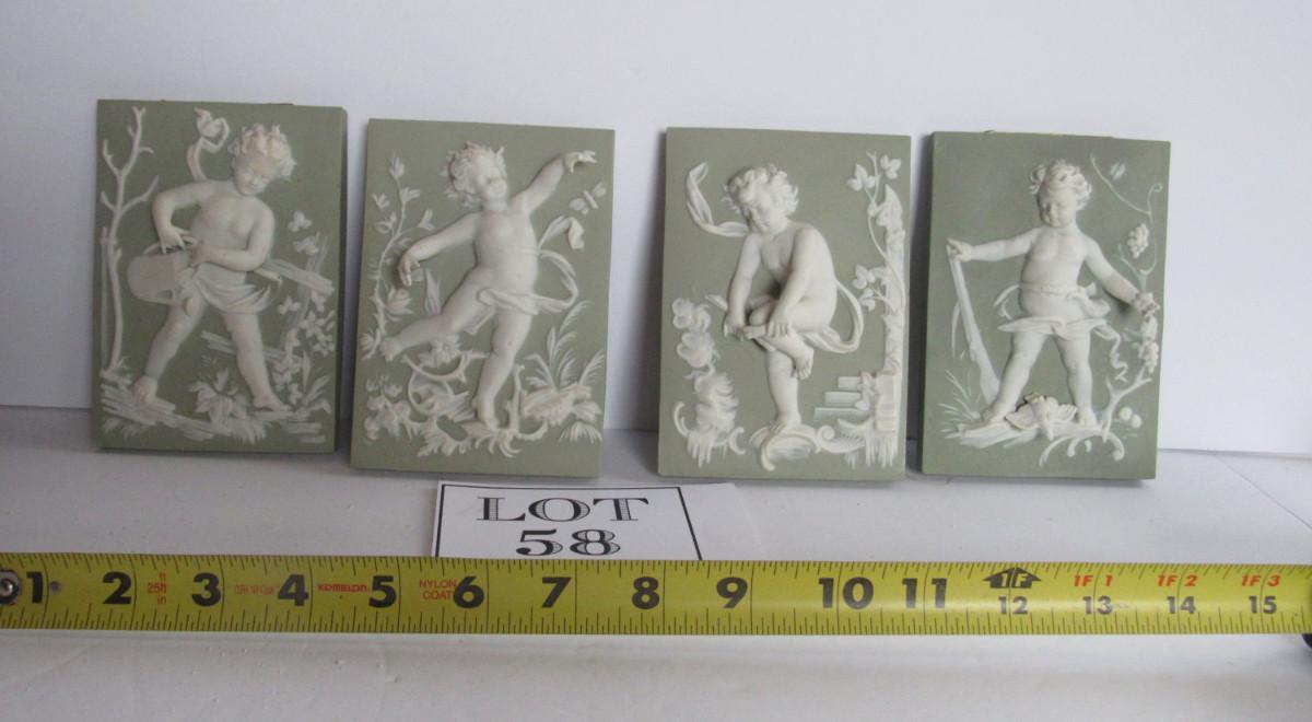 Fancy Jasperware Bisque Figural Wall Plaques, Read Description