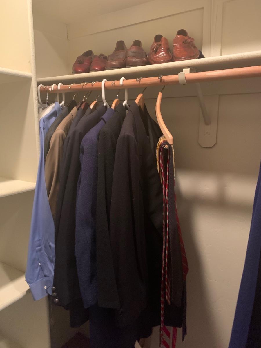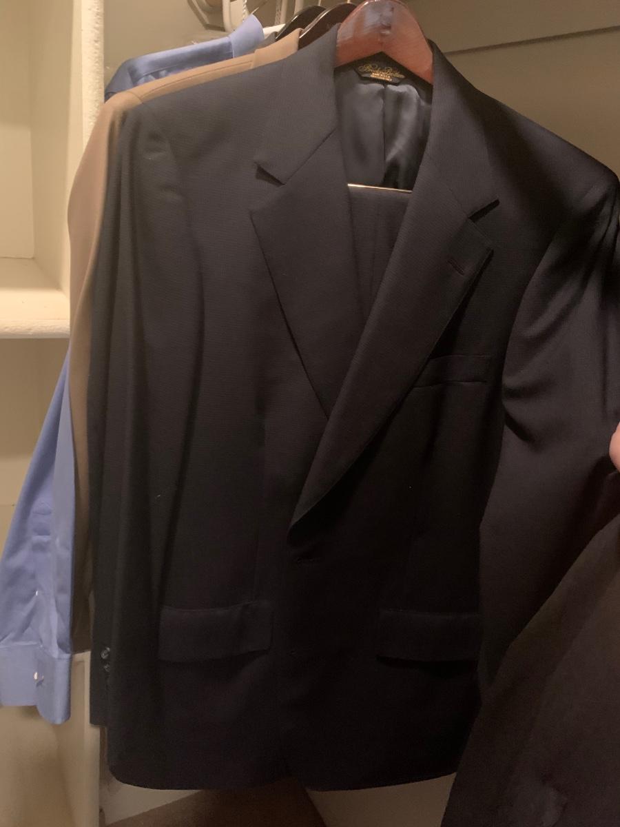 Lot includes a selection of men’s suits, shirts, ties , coats, and leather dress shoes. In great condition. Names like Stanford Williams/ Crescent, 81st and Park, Gibson, Eddie Bauer, Brooks Brothers and more. Shoes read 9D for size. Suits/coats Medium/Large.