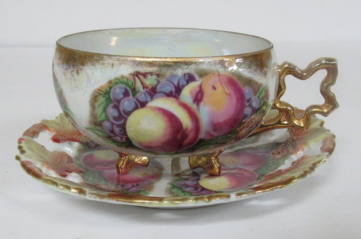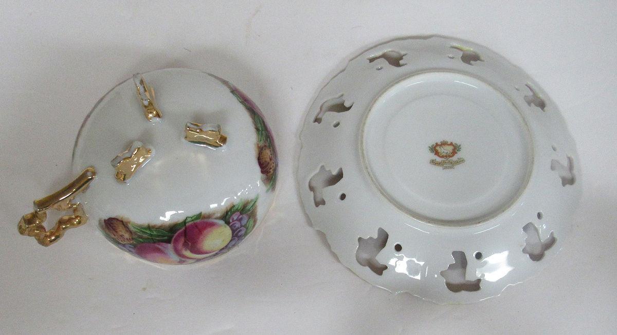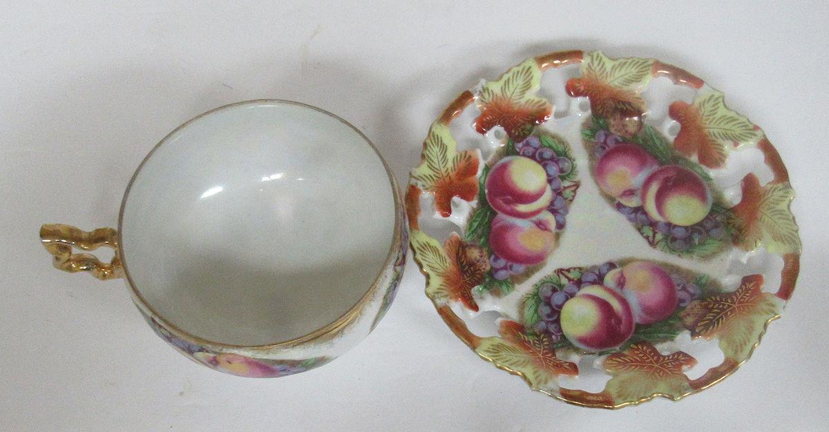 Fancy Pretty Fruit Theme Cup and Saucer Set Pierced Saucer, Royal Sealey Japan