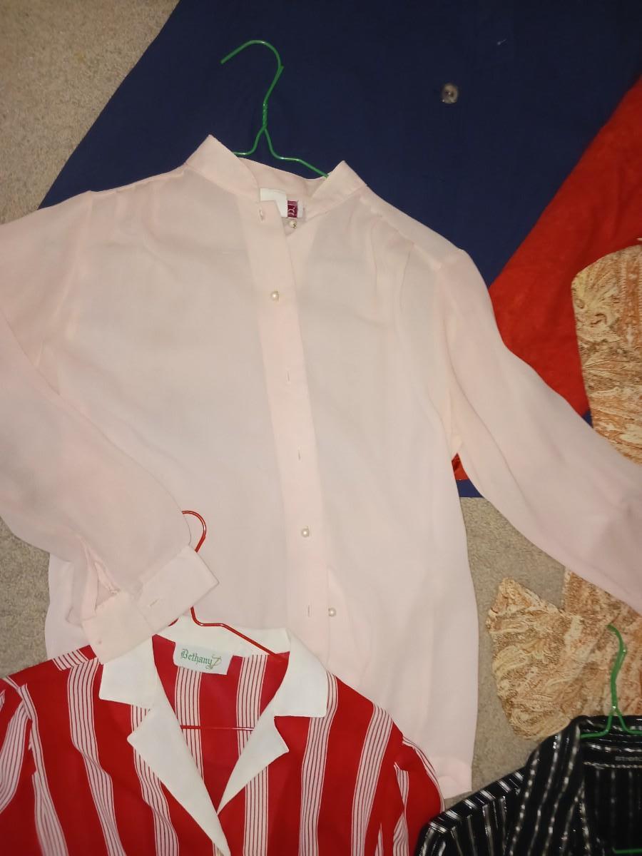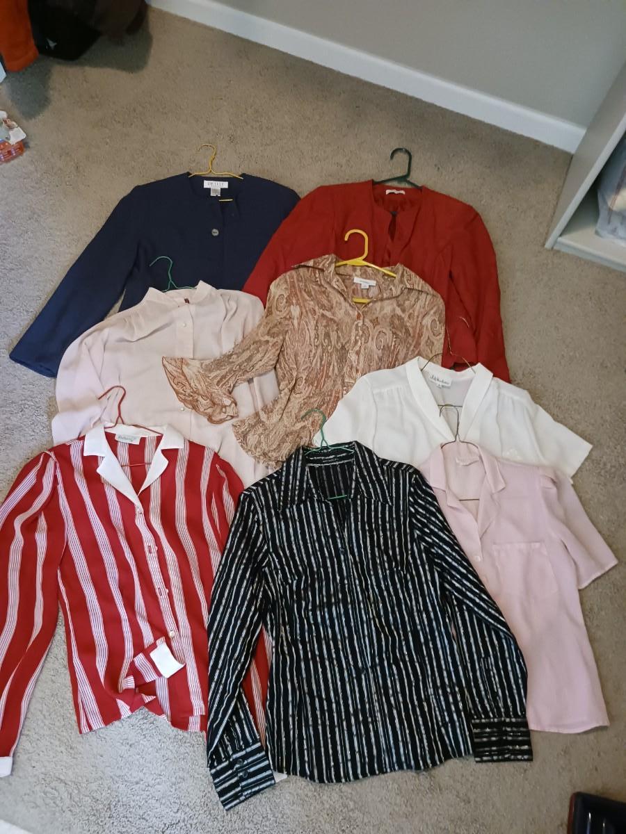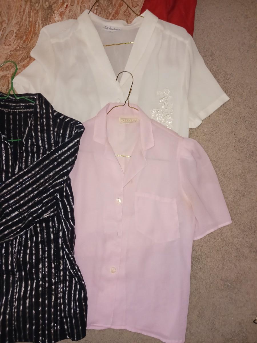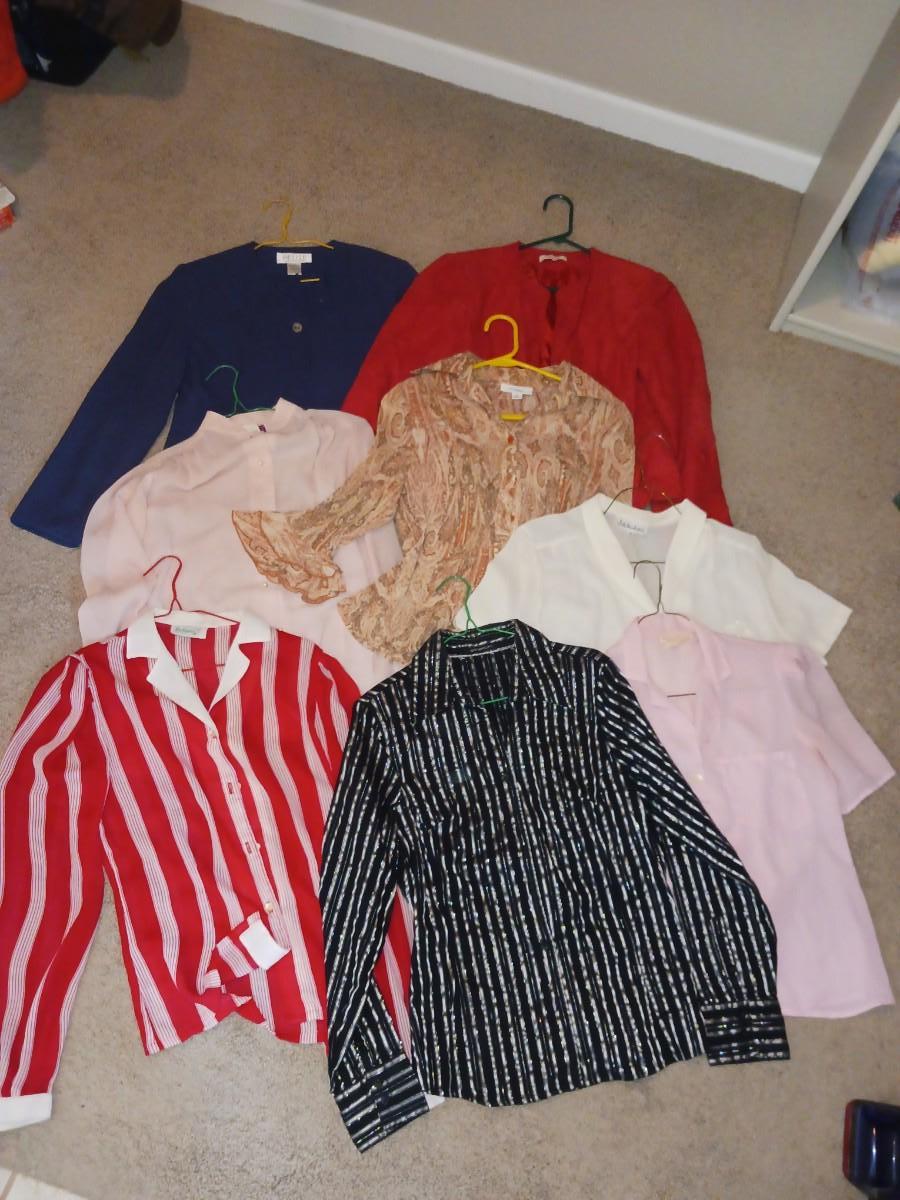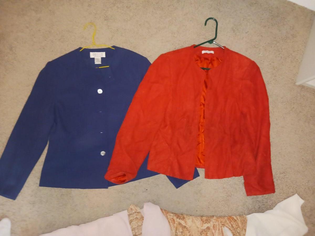 SIZE S/M LONG SLEEVES AND SHORT SLEEVE SHIRTS WITH EMBROIDERY ON BREAST POCKET, TWO DRESS COATS