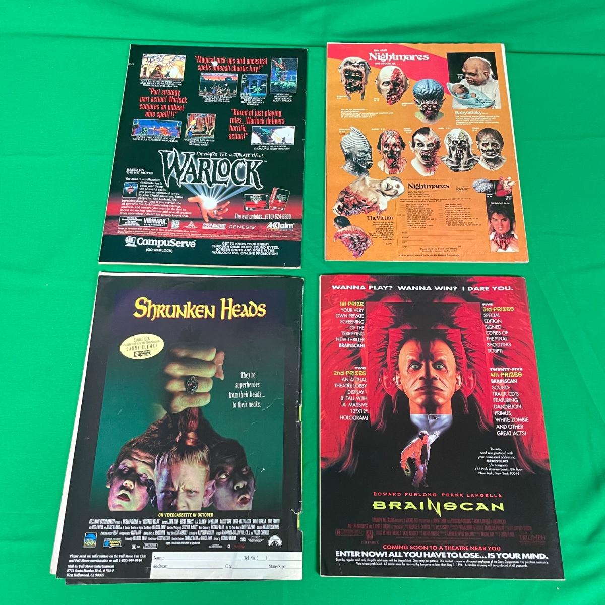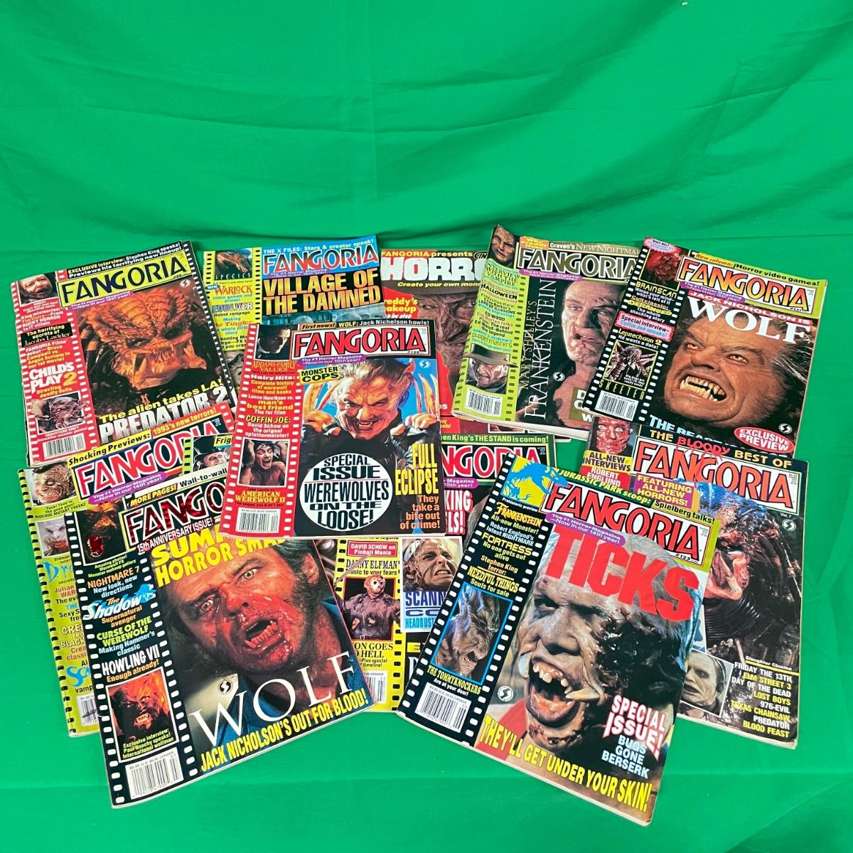 Eleven issues of Fangoria stretching from volume 7 in 1988 to volume 143 in 1995 including the 15th Anniversary issue. Lot also includes volume 1 of Horror FX from 1989 and volume 1 Fangoria Horror Video from 1988. See images. Items are sold as-is. No returns or refunds. Please bid accordingly.
