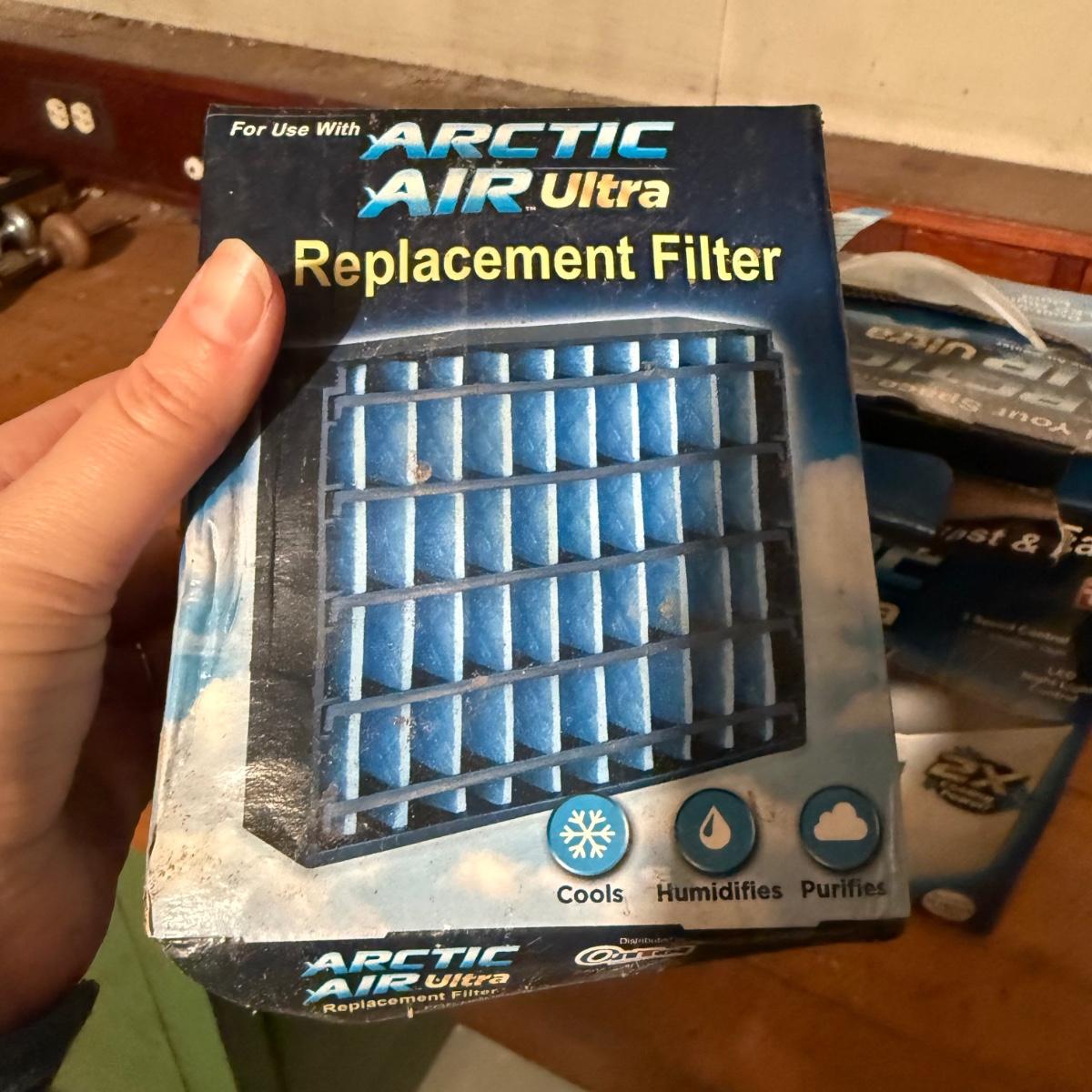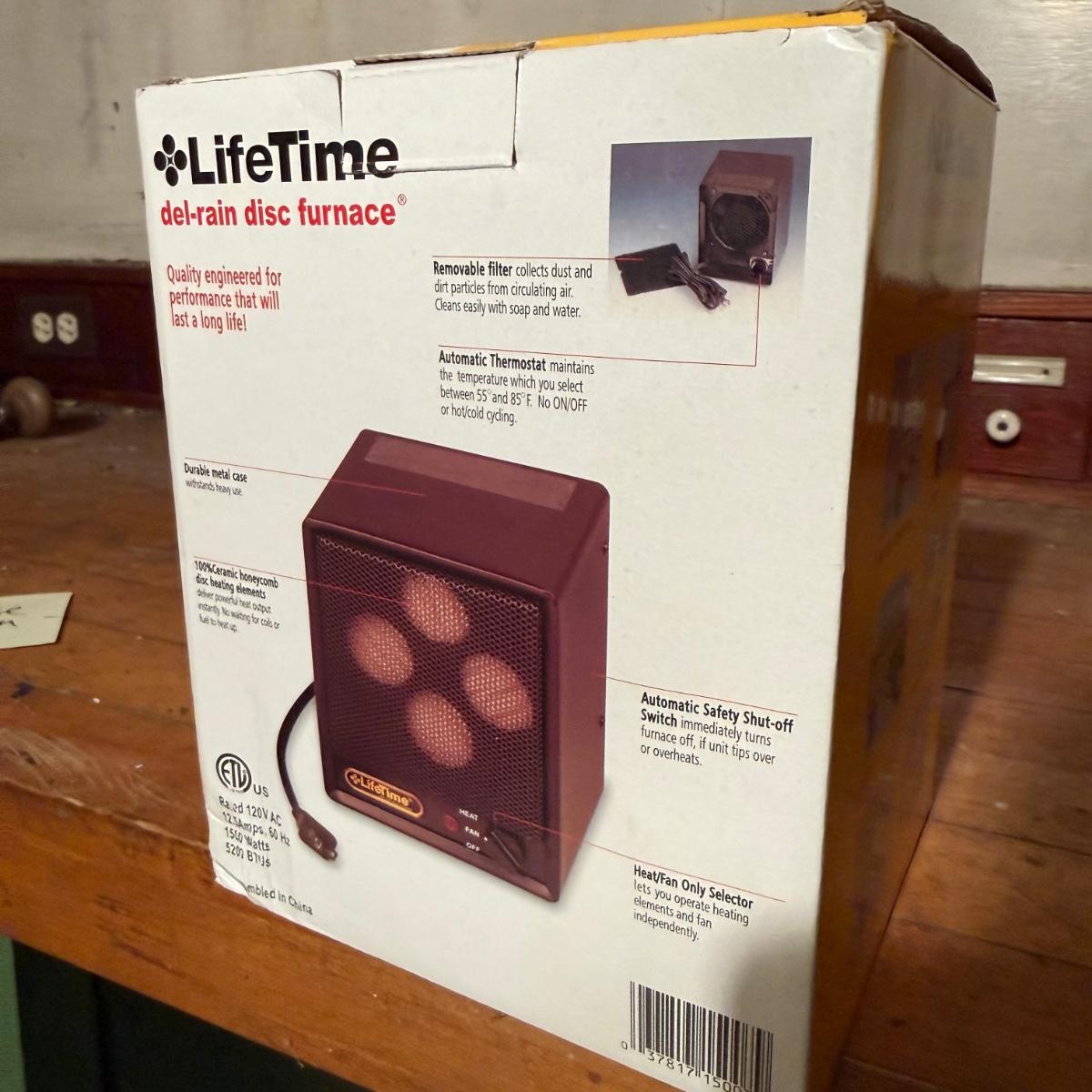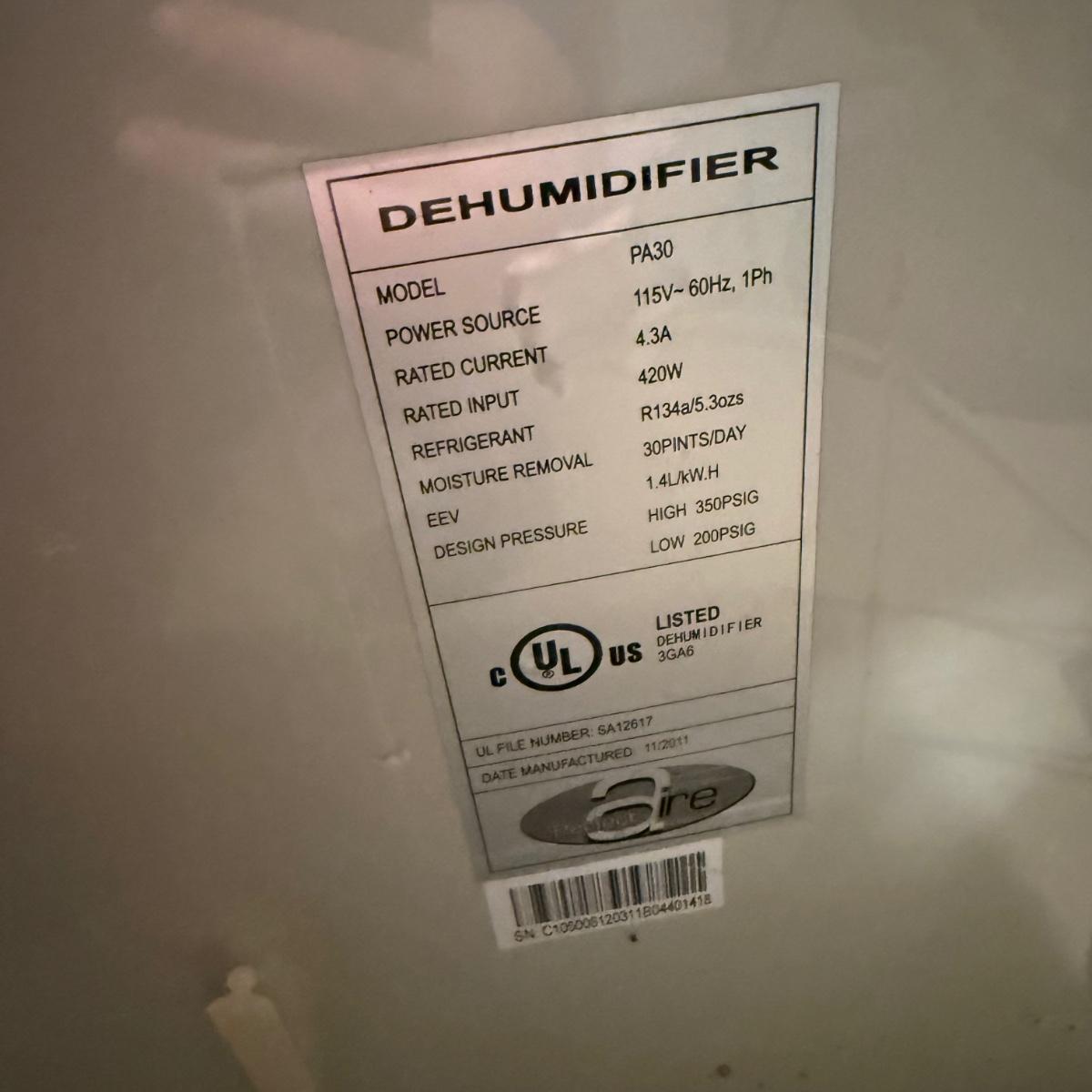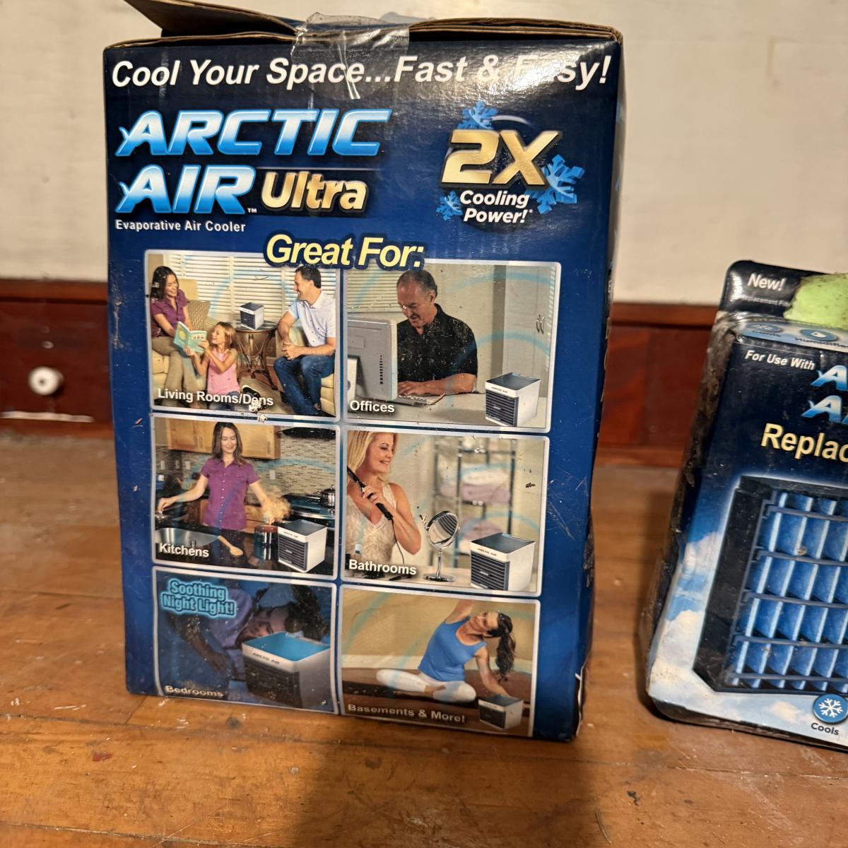 This lot contains eight items. We have two Aire dehumidifiers, a small Eva-dry dehumidifier, a small space heater and a small fan (both of which are NIB) and two floor fans. The black and decker floor fan measures 17”D at the base x 45.5”H. All items powered on when tested.