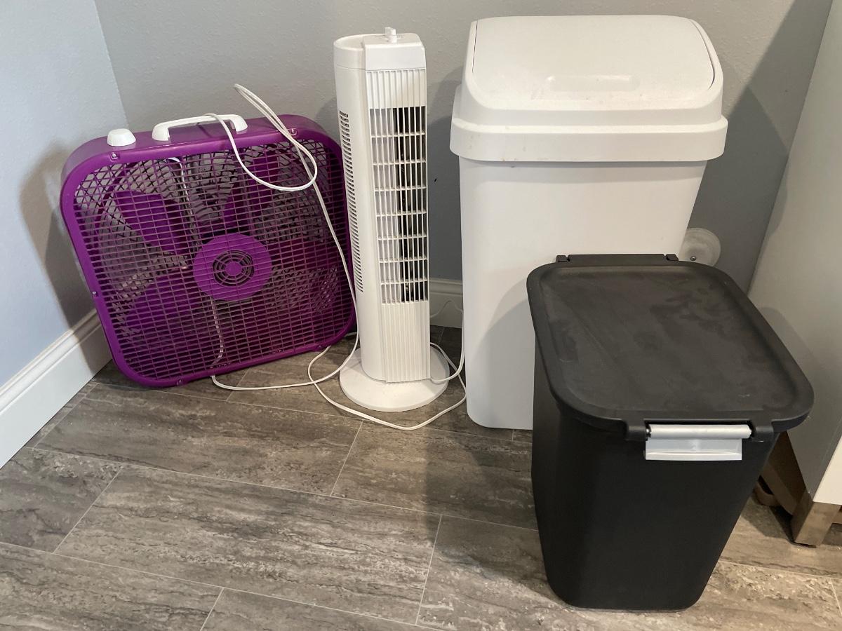 Fans and garbage cans