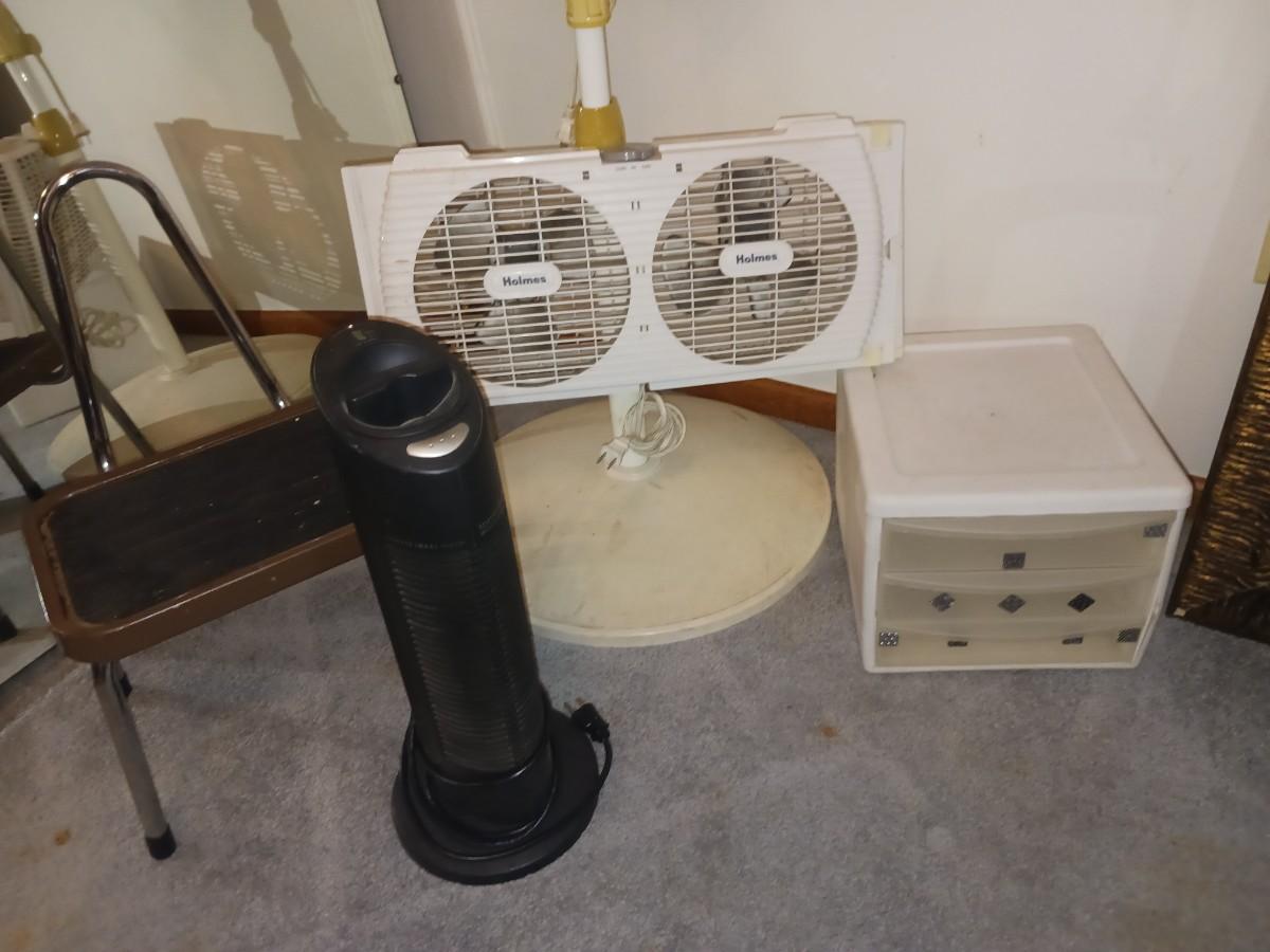 FANS, STEP STOOL, 3 DRAWER ORGANIZER, & MORE