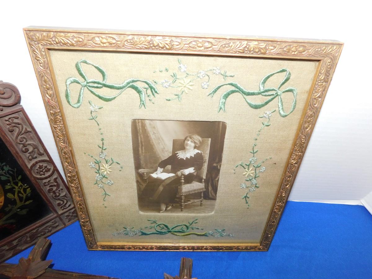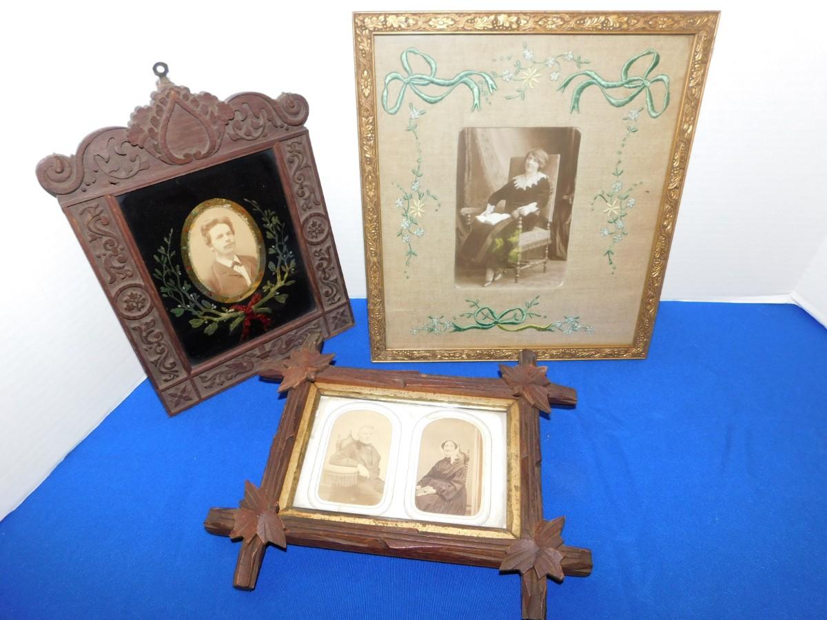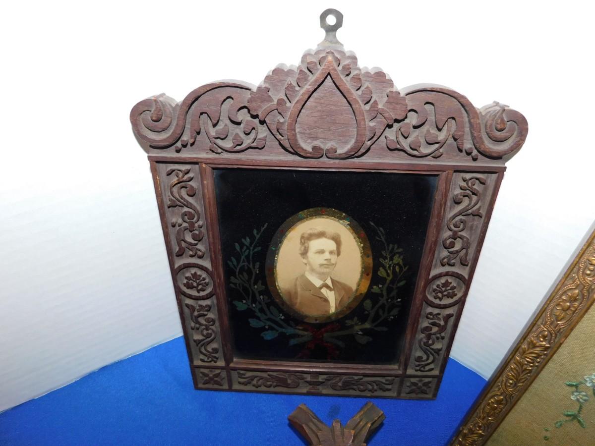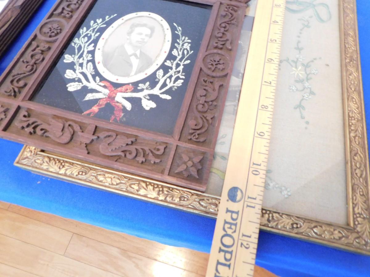 FANTASTIC Antique Picture Frames Lot Hand Stitched Glass Plate +