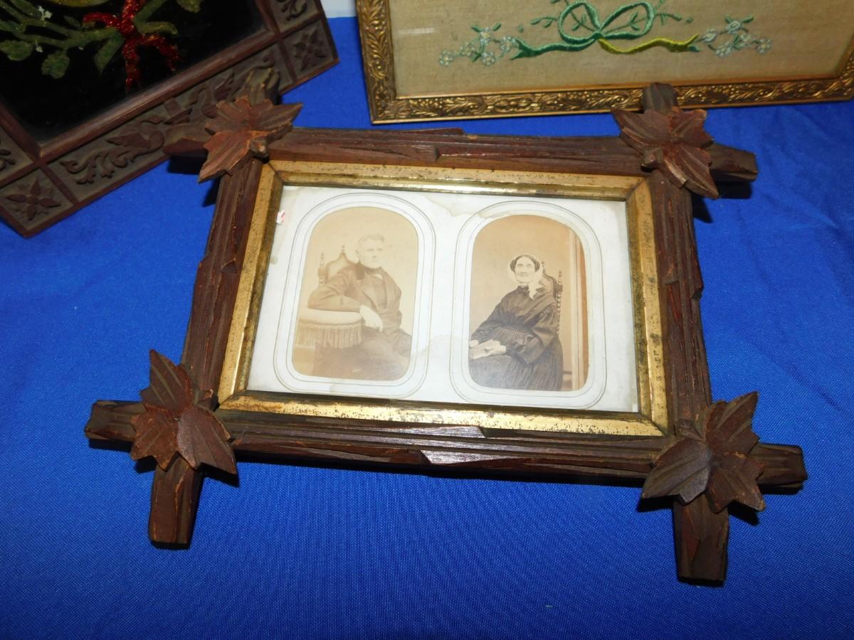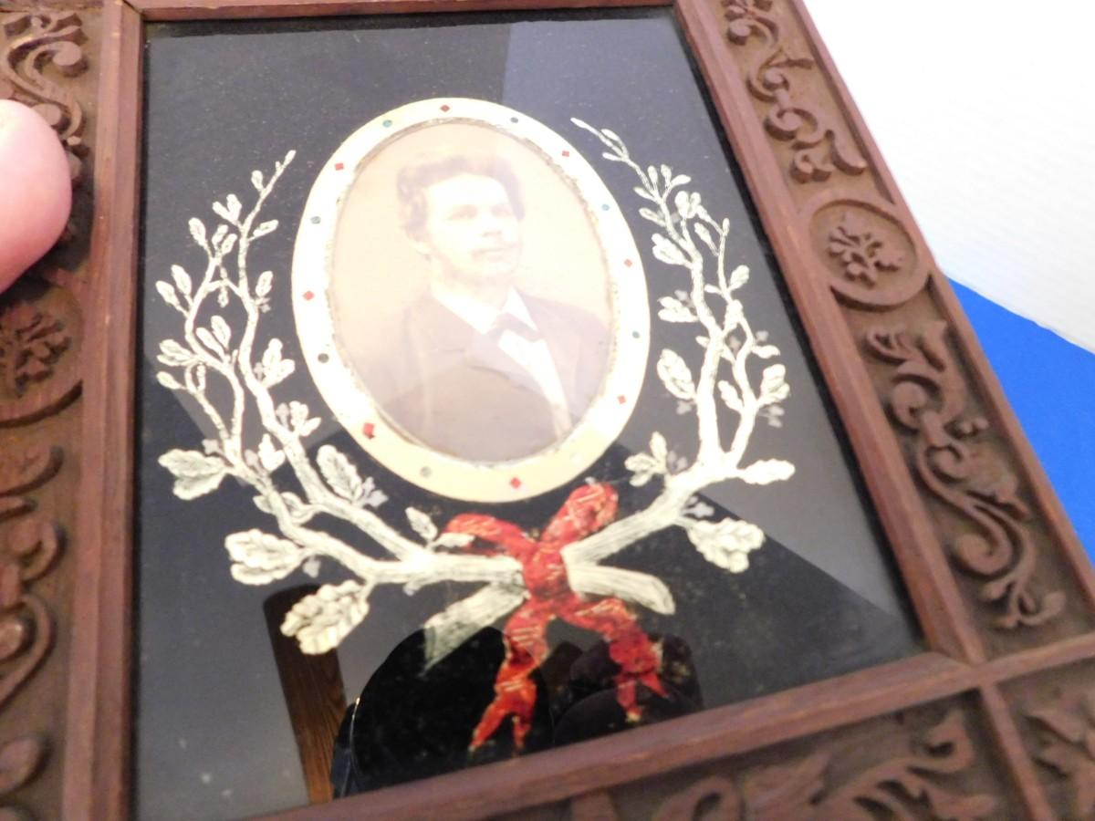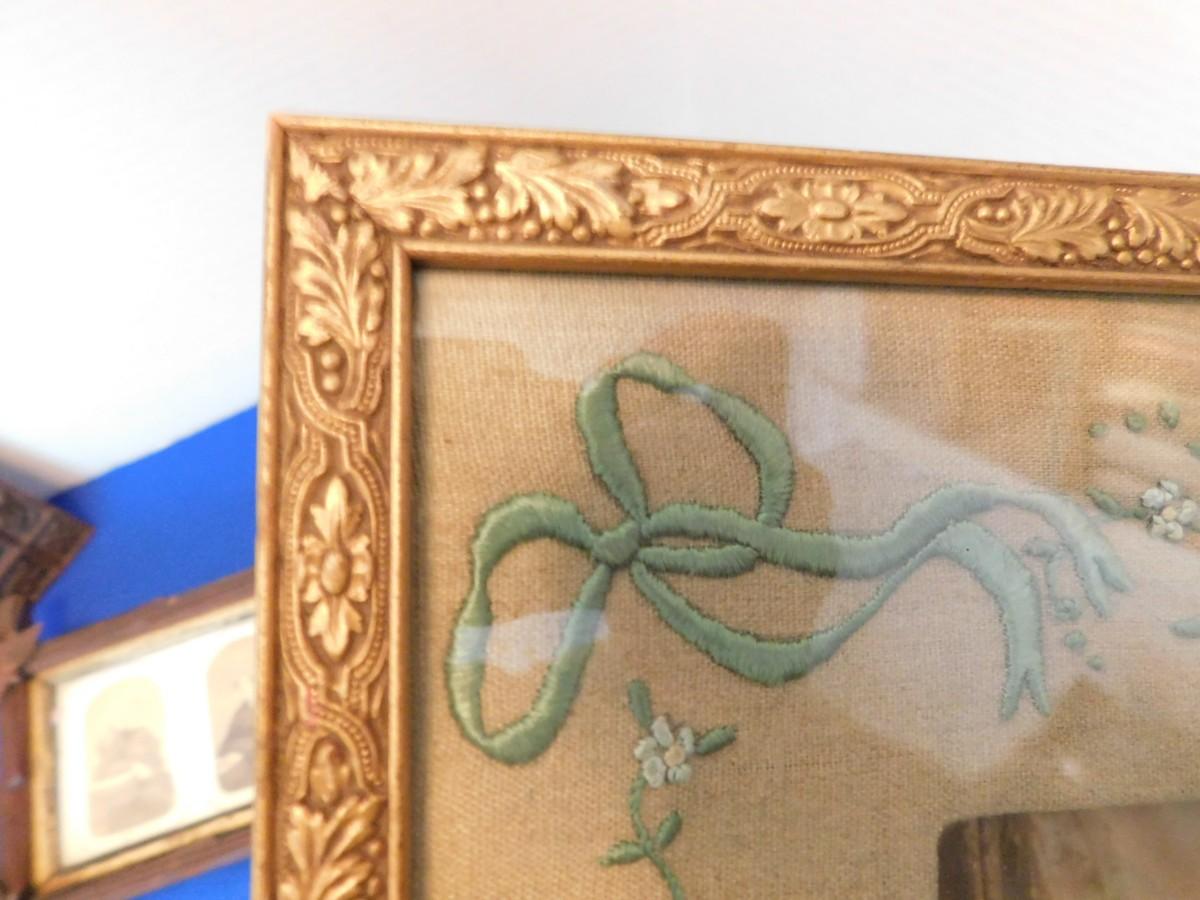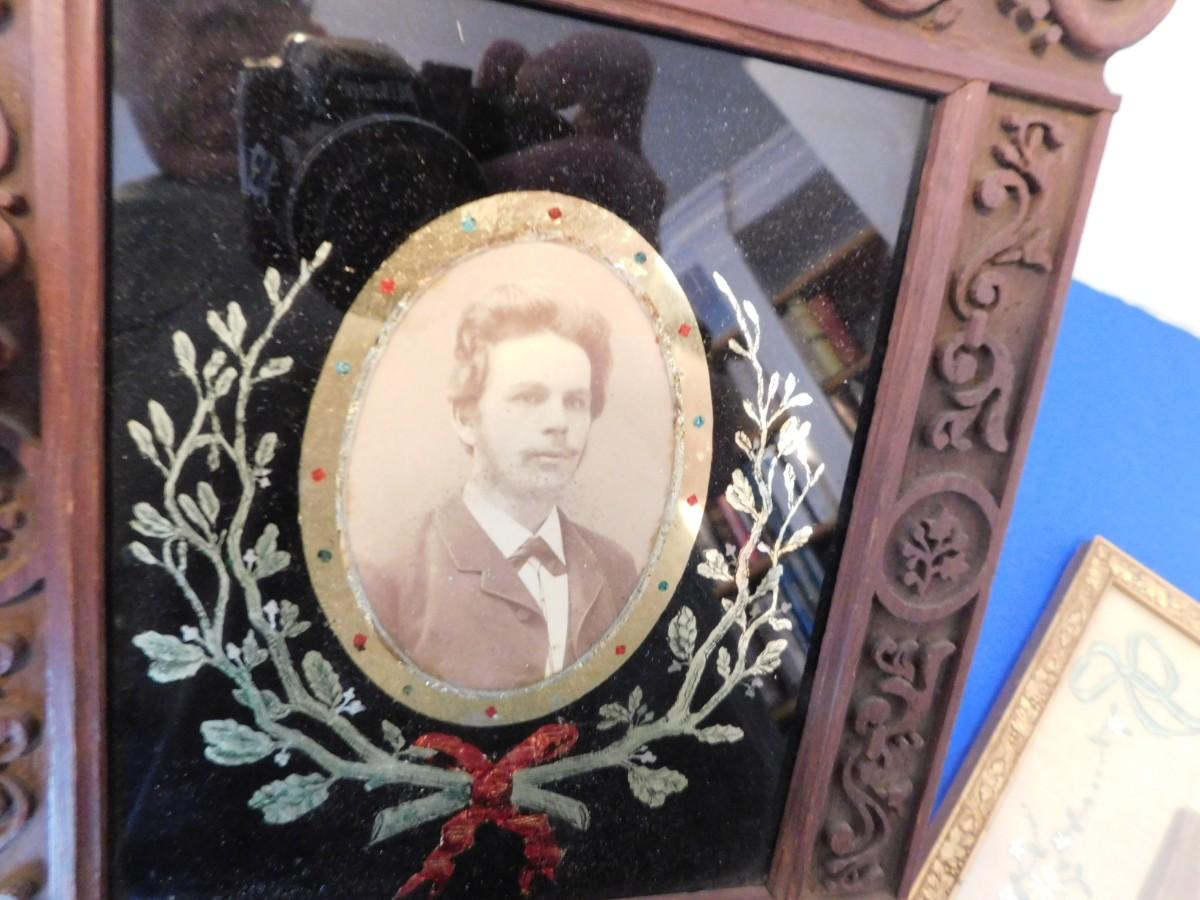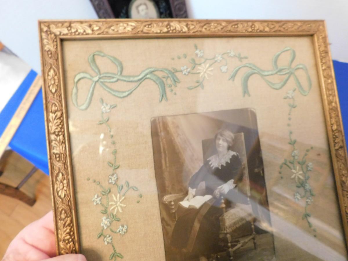 FANTASTIC Antique Picture Frames Lot Hand Stitched Glass Plate +