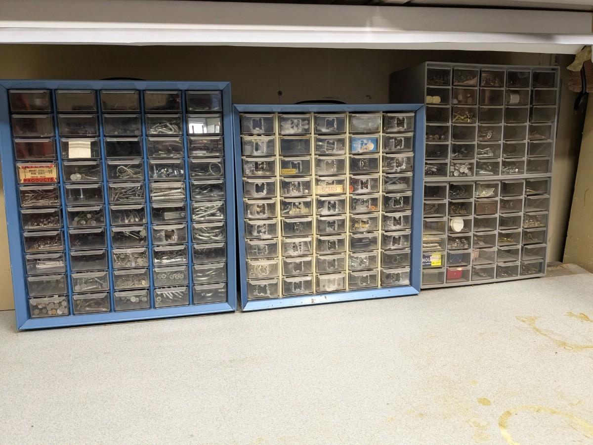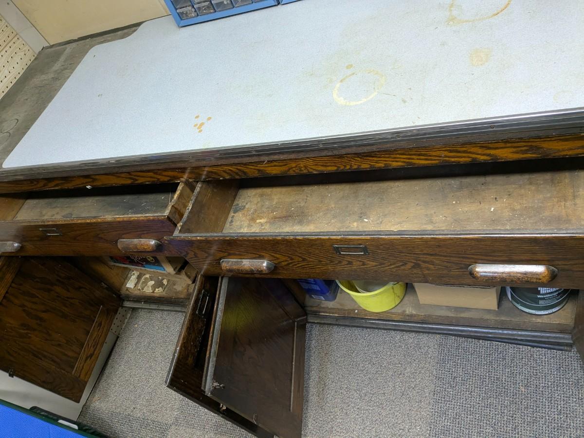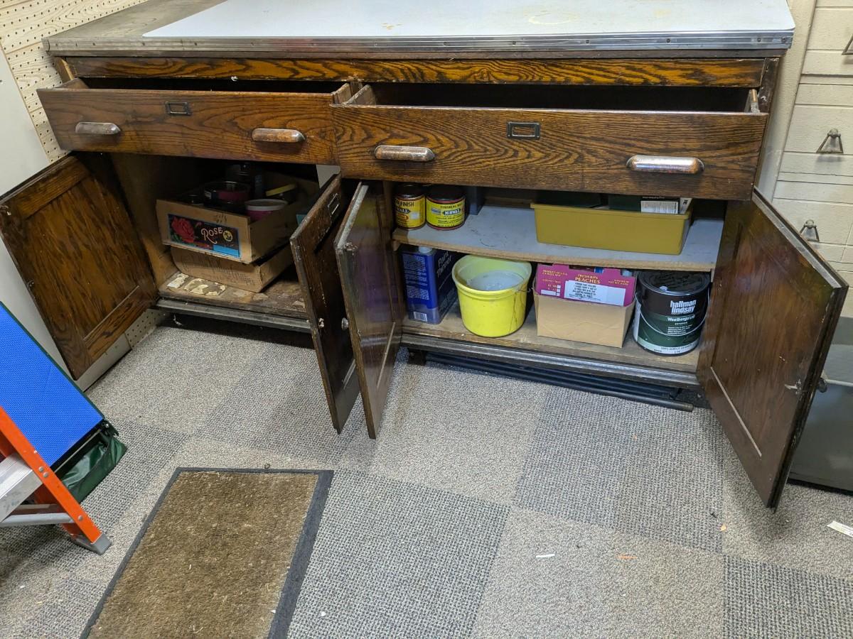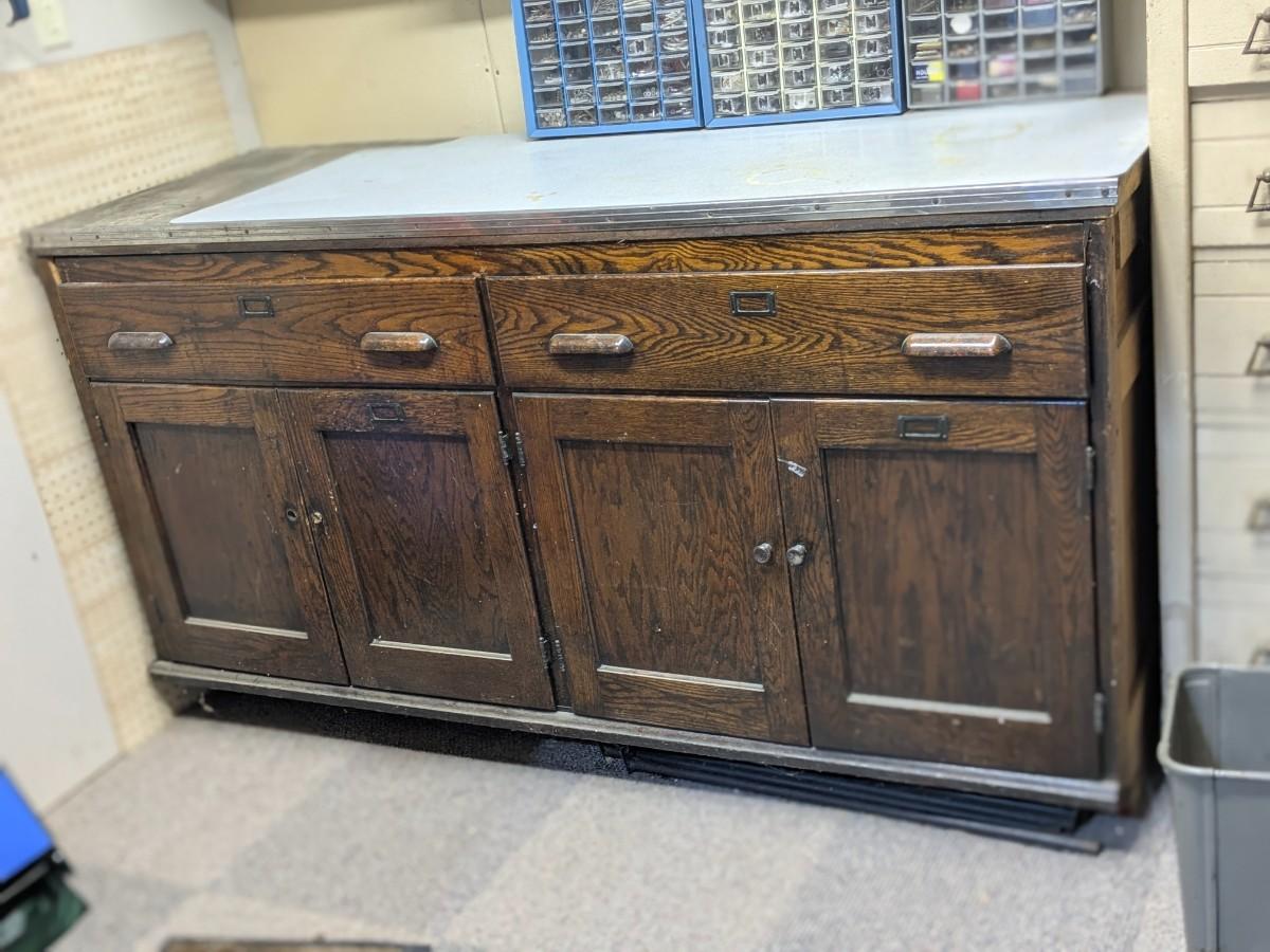 Fantastic Antique Work Bench, Incl 3 Drawer Units