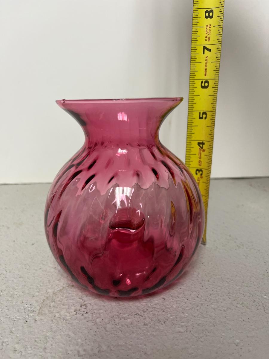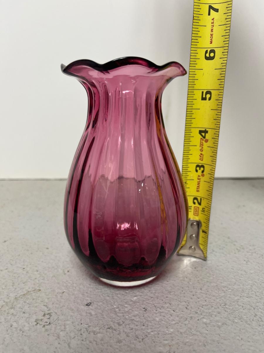 Cranberry pomegranate vase-Pilgrim and cranberry ribbed optic vase