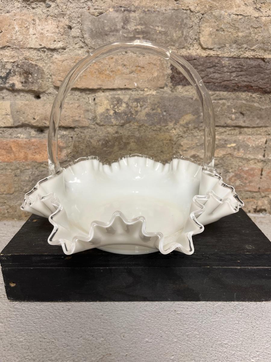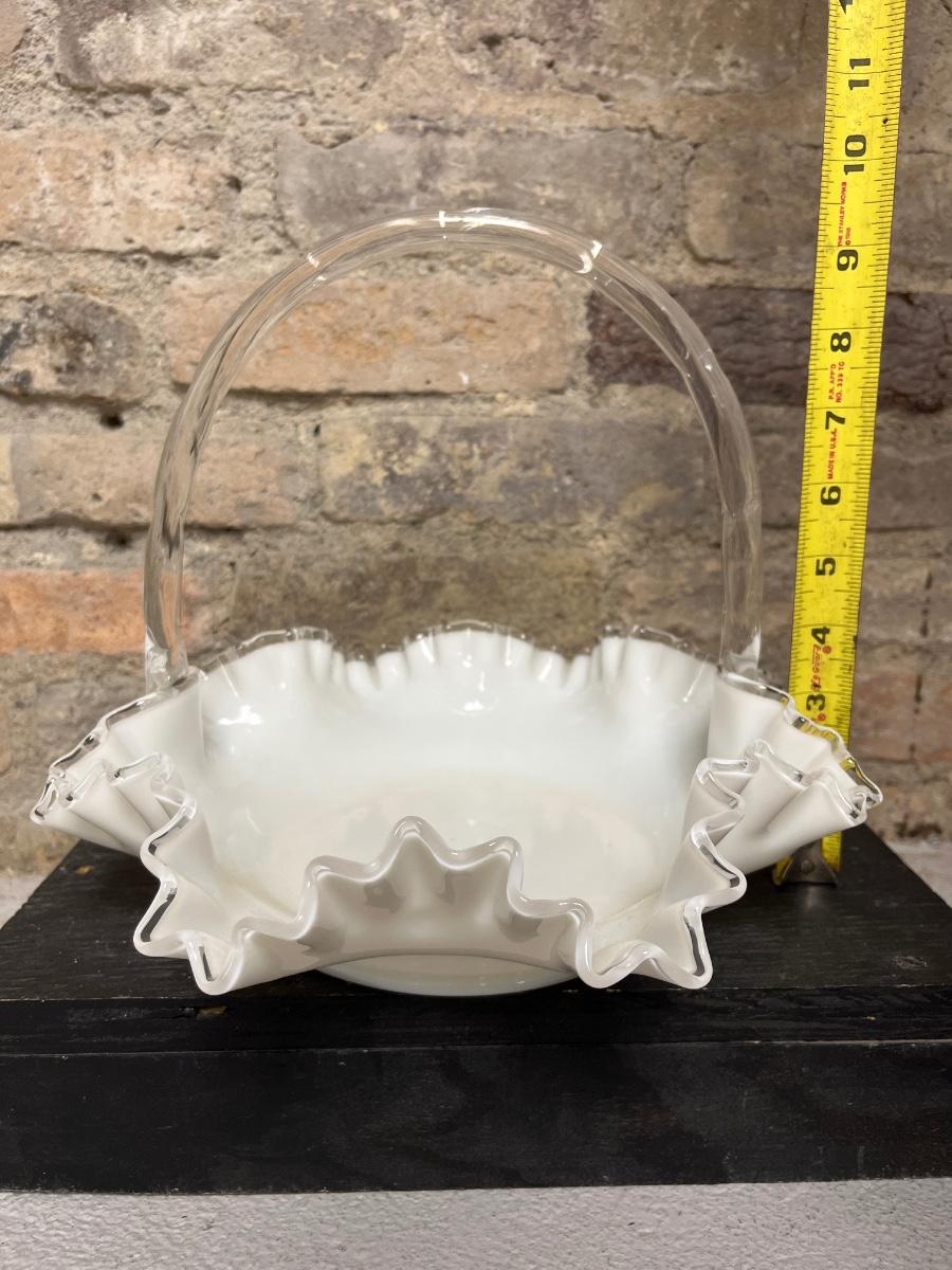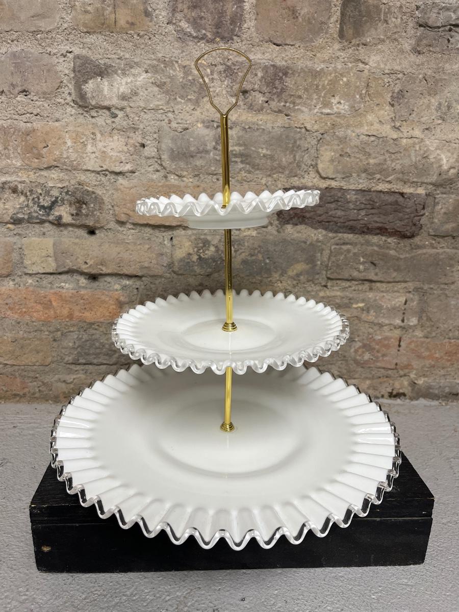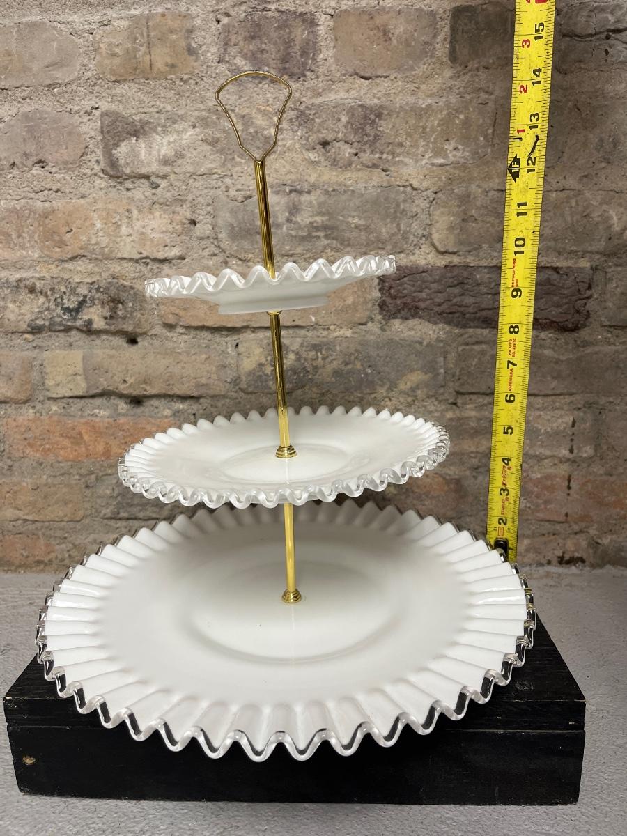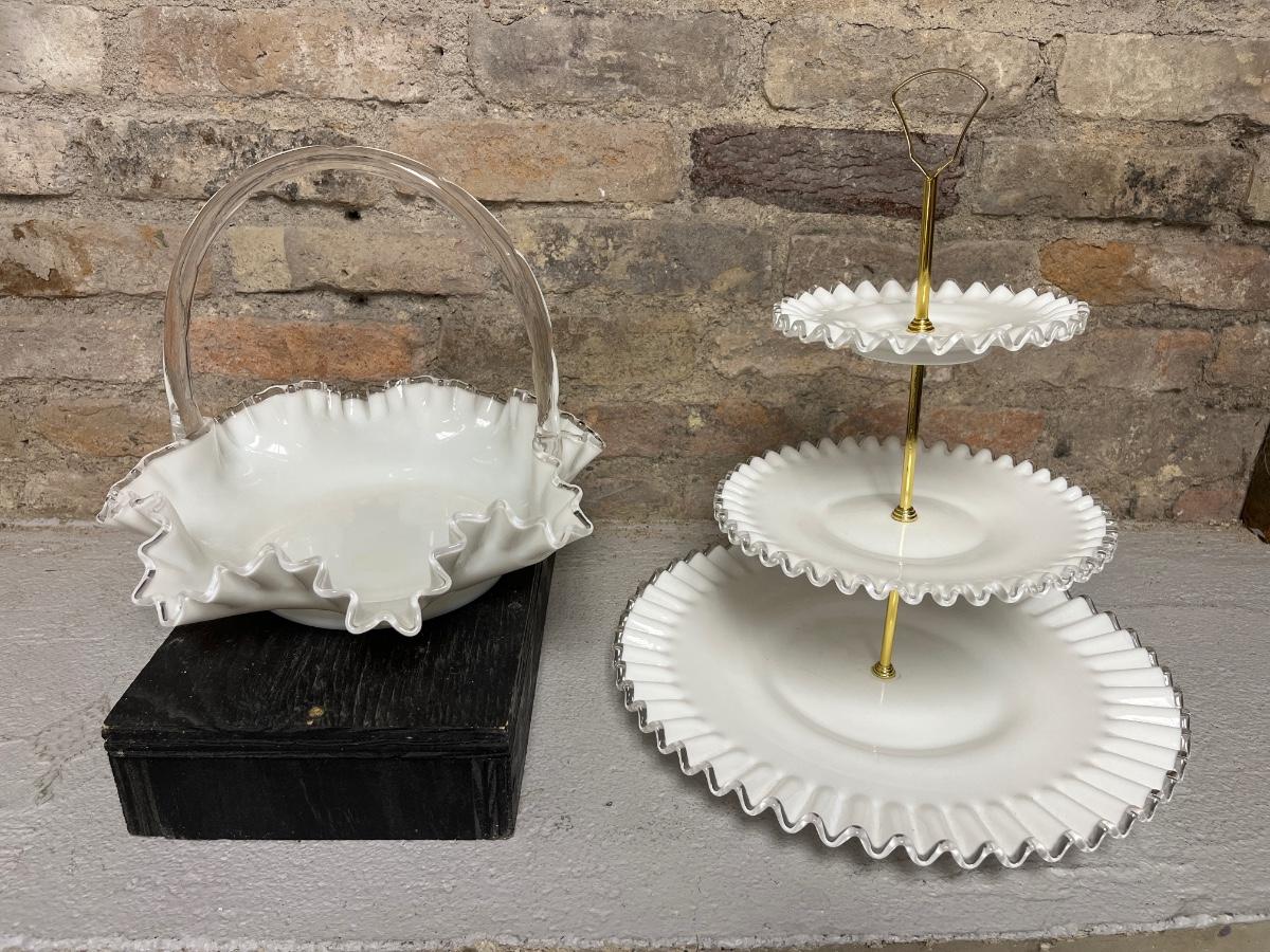 Big 12” Silvercrest basket and 3 tiered Silvercrest tidbit with gold tone posts and handle. Fenton!