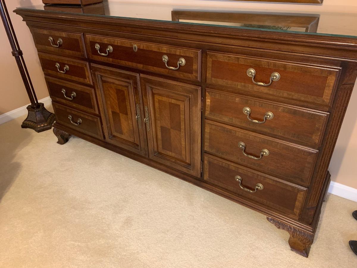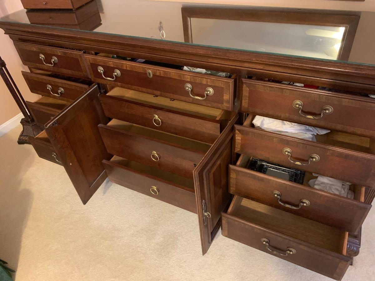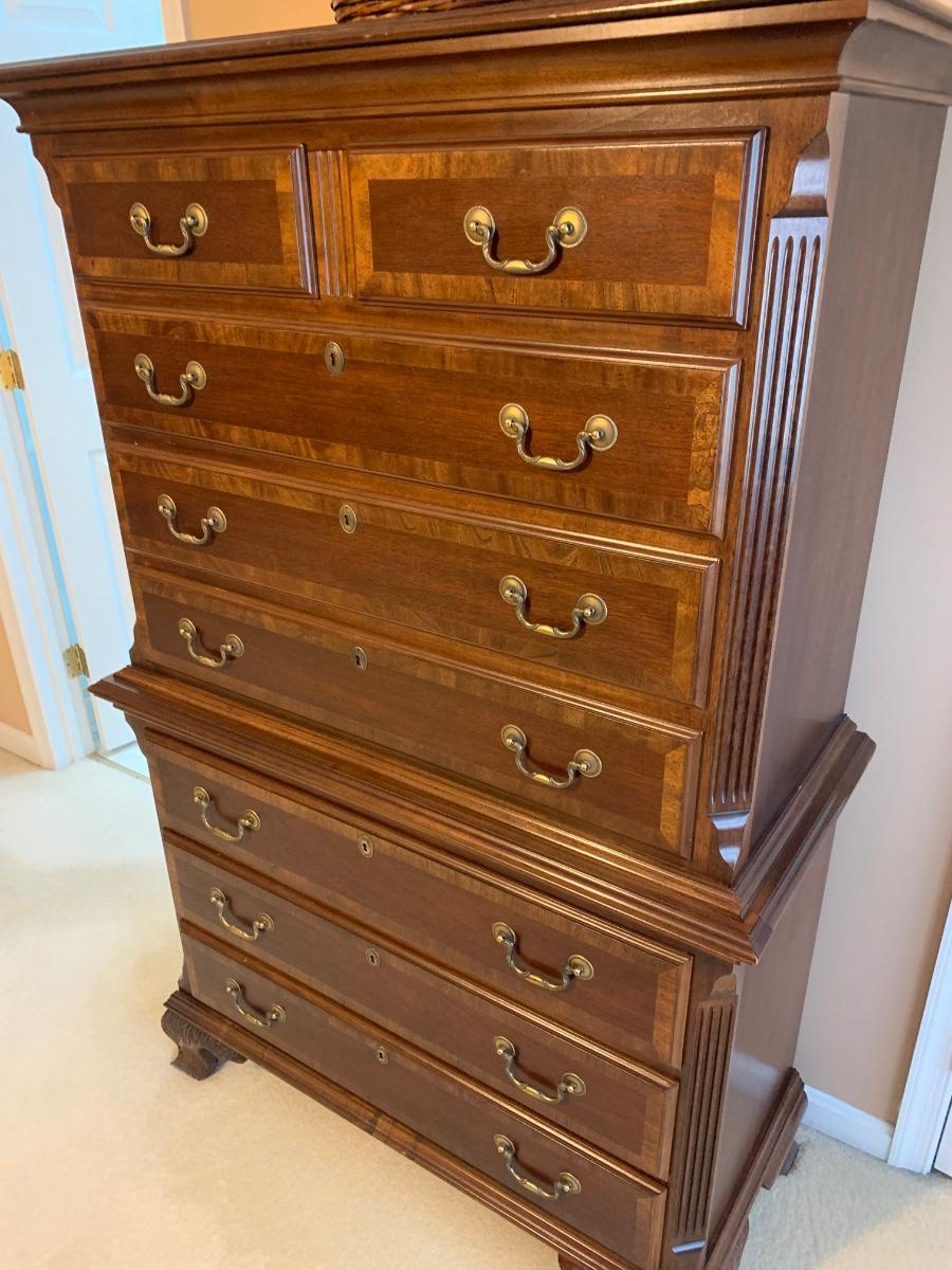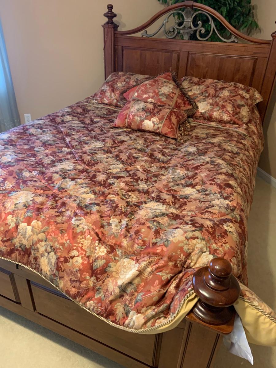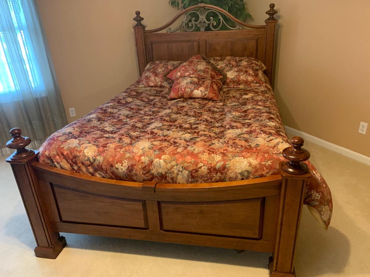 Fantastic Inlaid Bedroom Set Dresser Chest Bed Queen Mattress Bedding