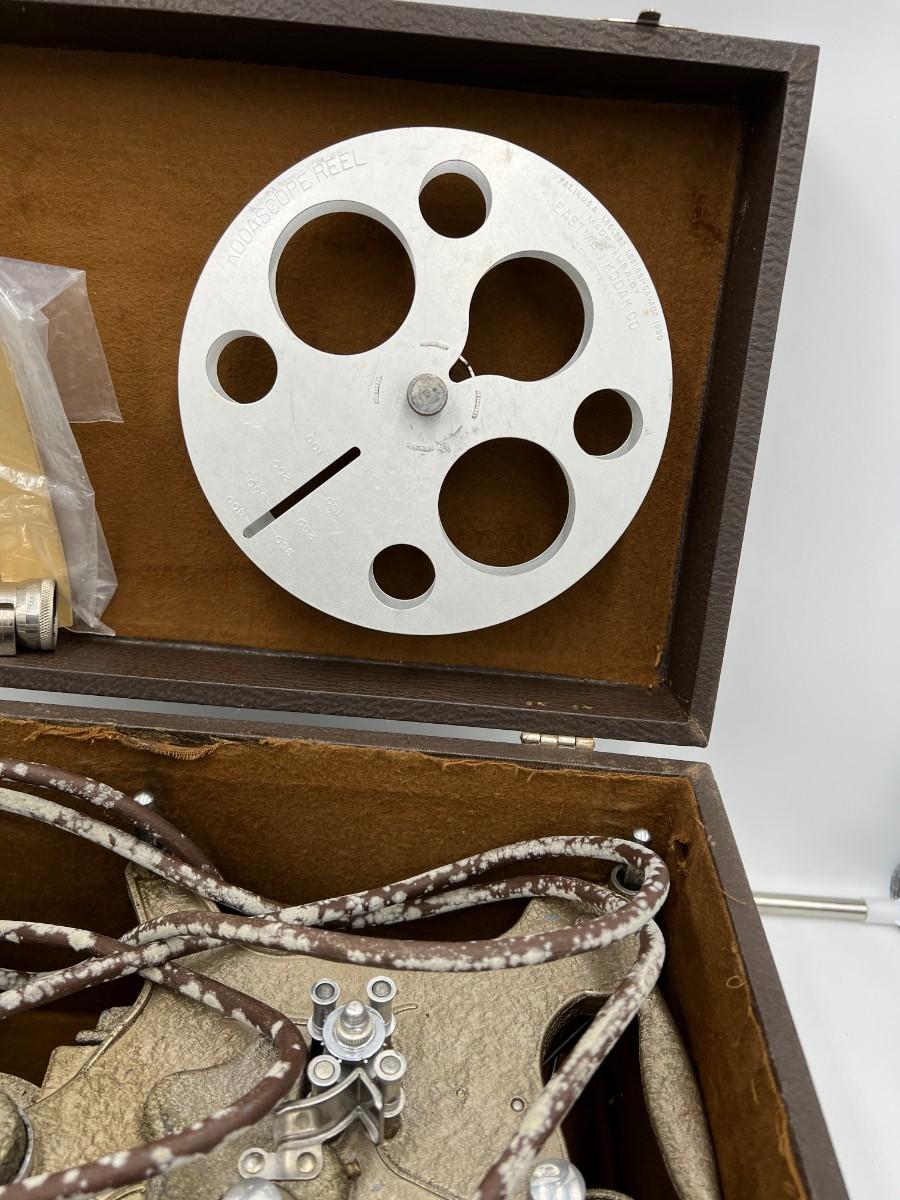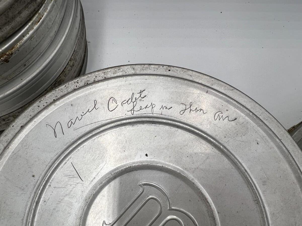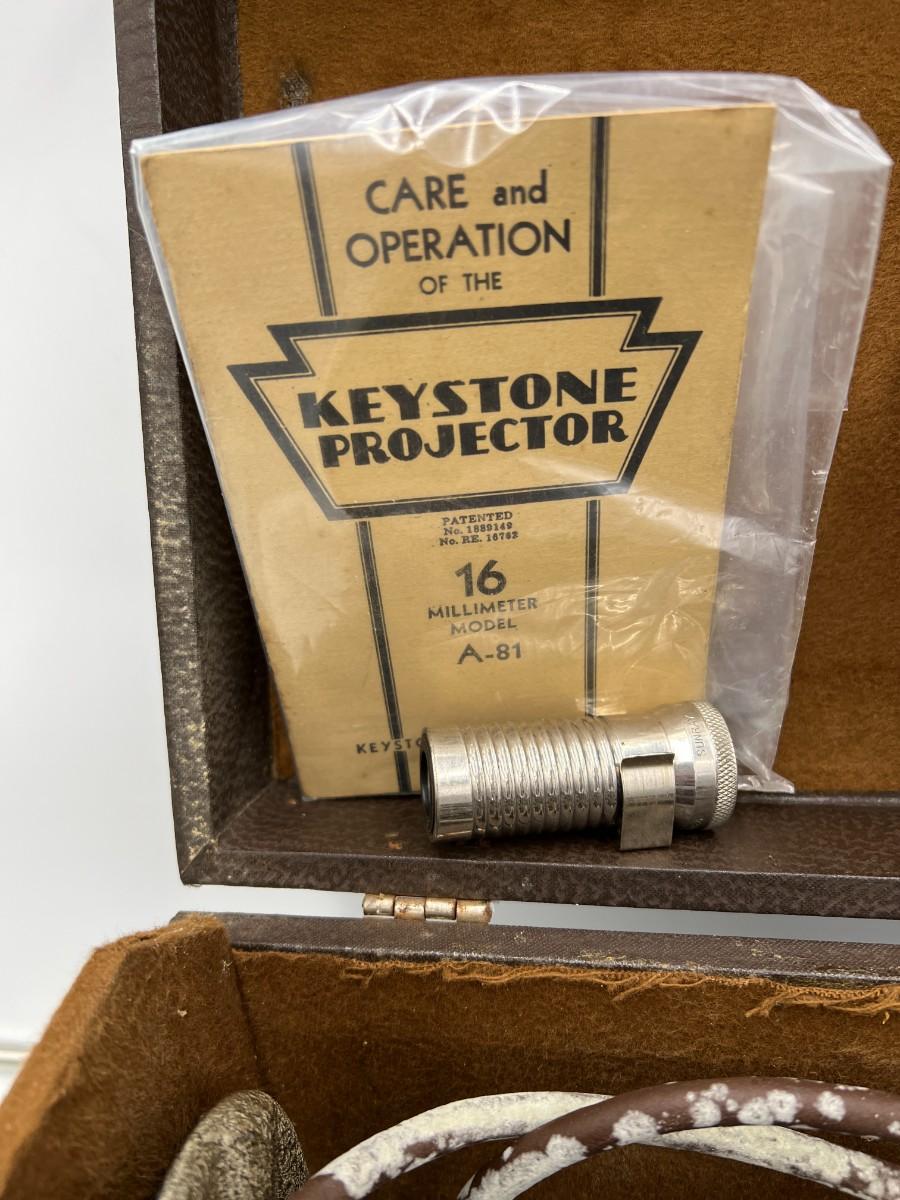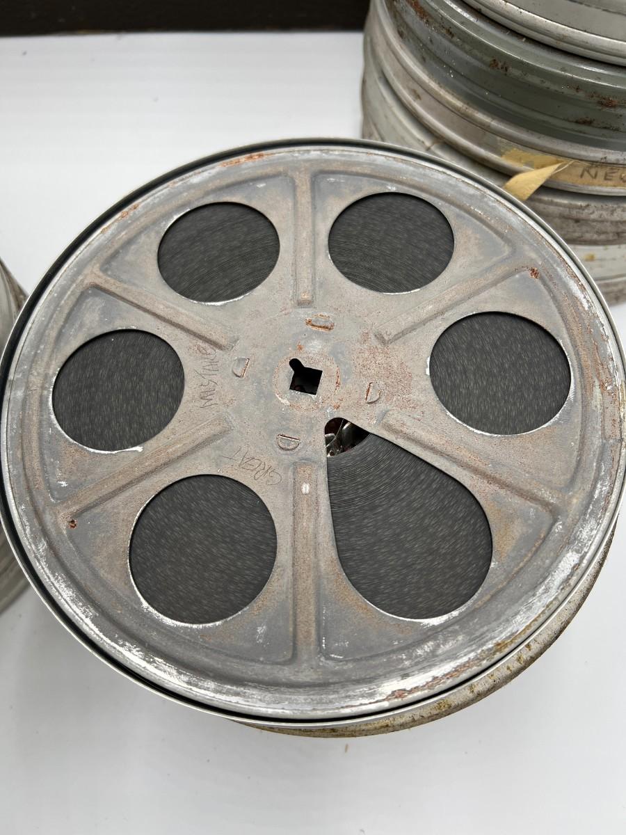 Amazing and rare lot of vintage 16 millimeter films and projector (none were tested, but condition looks good, as shown). Films are labeled on the tins, which we assume are accurate, but cannot be certain. Film cannister labels include; Tacoma Bridge Collapses on Super Thrills News, Shirley Temple and London's Quints (Quintuplets), Mickey, Naval Cadet Leap in the Air, the Great Mistake, Legion N.Y. 1937, and News of 1940.