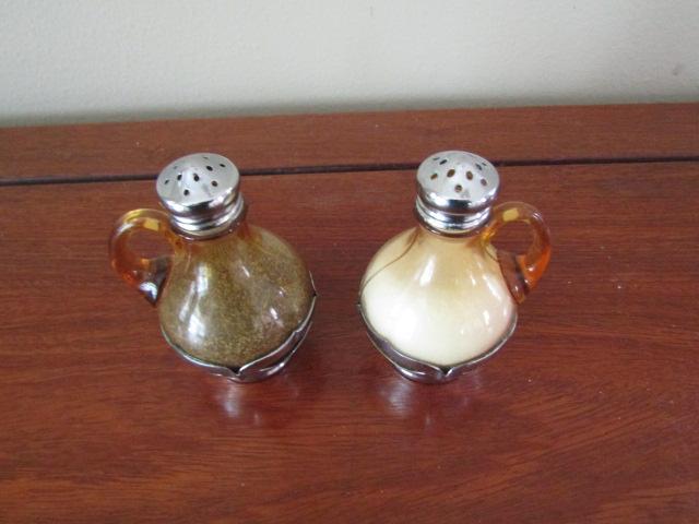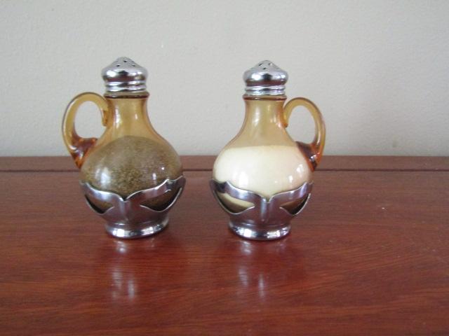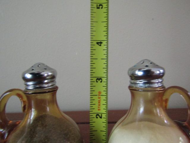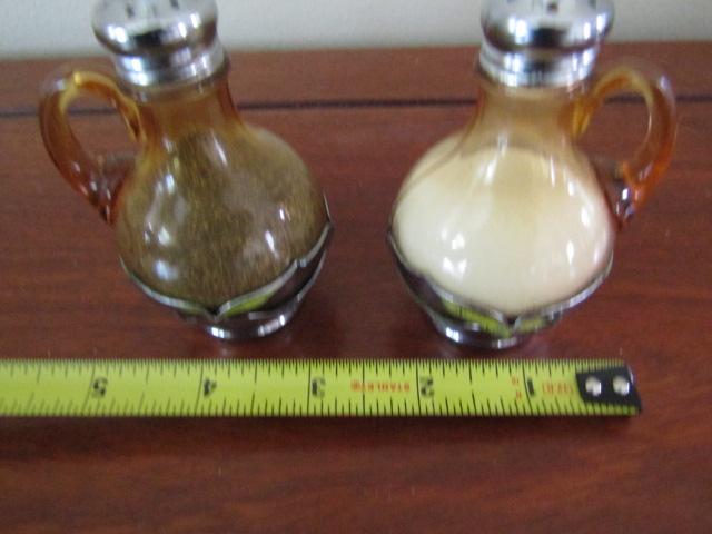 Farber Bros. New York Amber Glass Chrome Base Salt and Pepper Shakers 4"