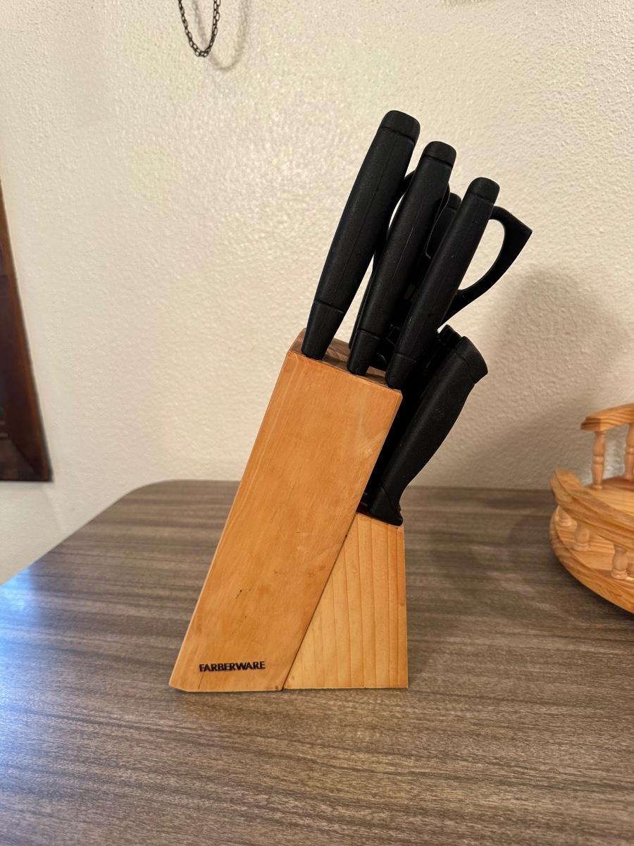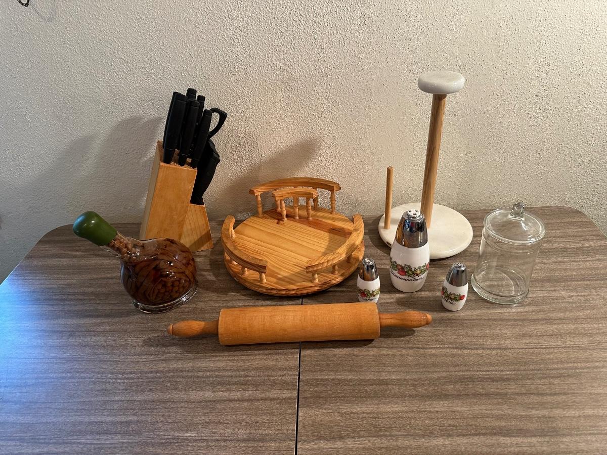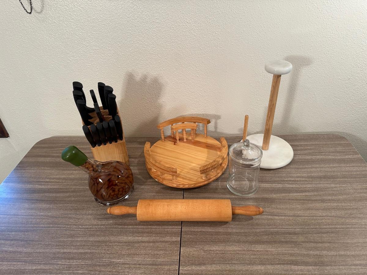 FARBERWARE CUTLERY IN A BLOCK, LAZY SUSAN, PAPER TOWEL HOLDER AND MORE