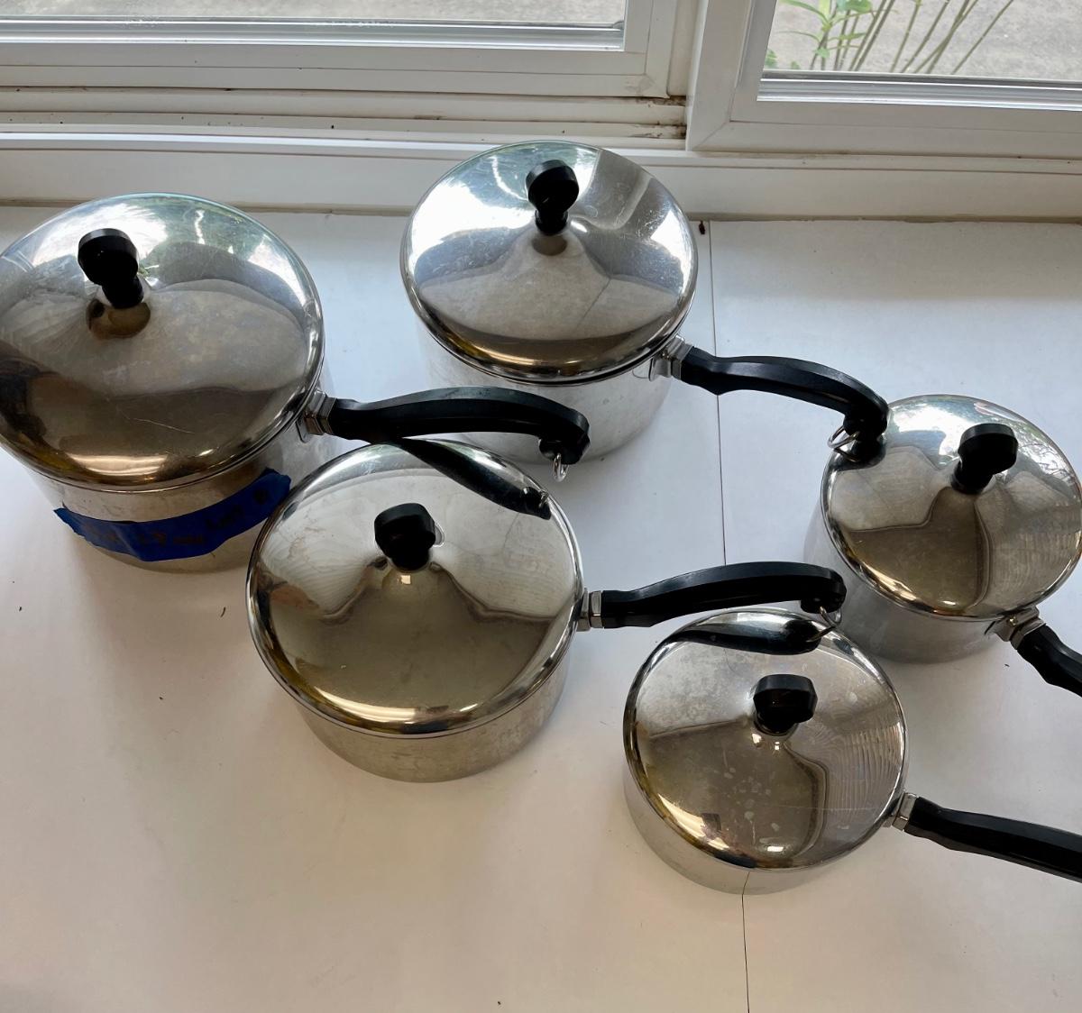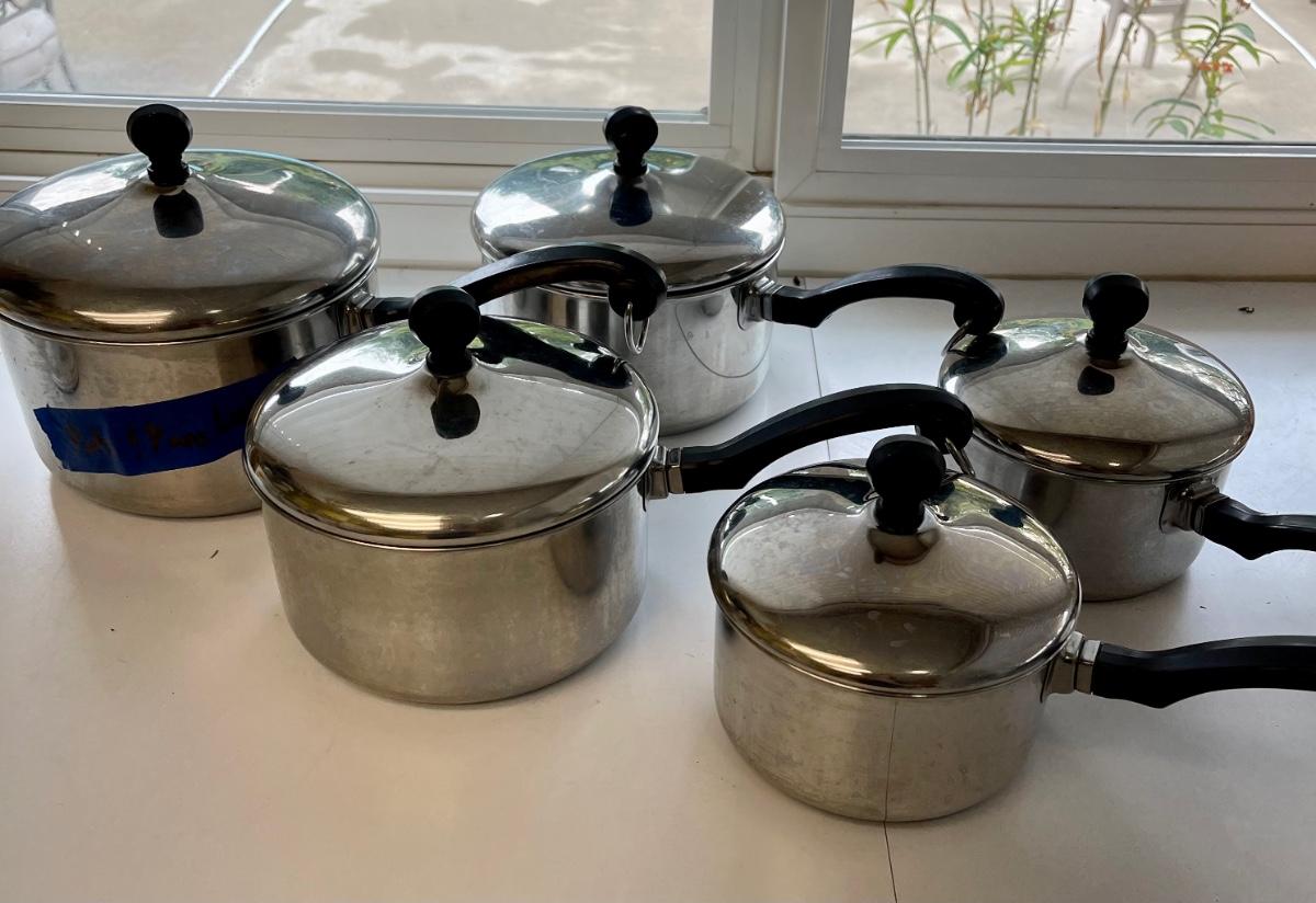 Farberware pots with lids three sizes, four pots - pots and pans lot B
