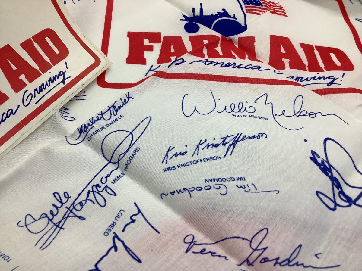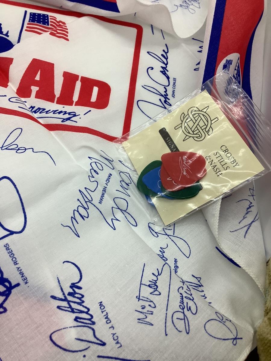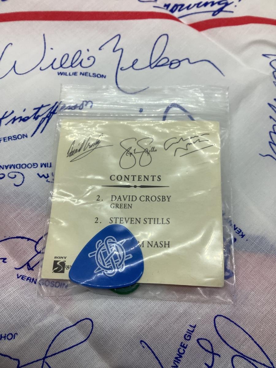 Farm Aid bandana, sticker, Crosby, Stills, Nash guitar picks